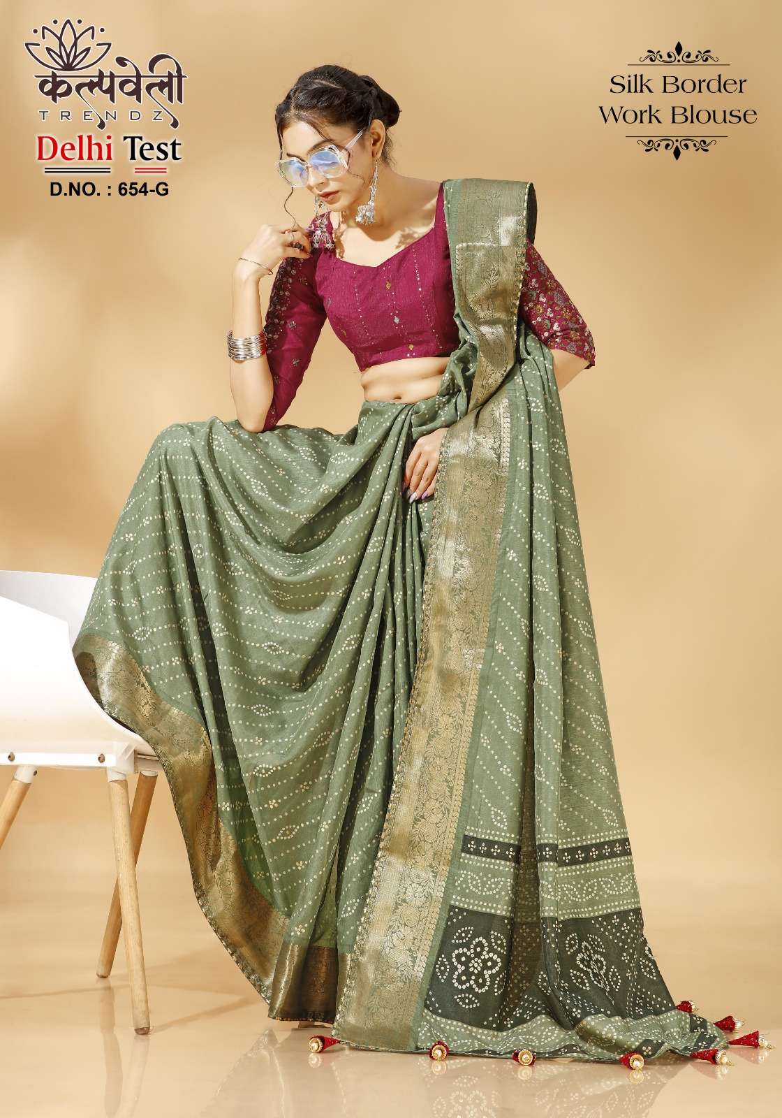 Delhi test 654 no. -950/- Fabric: silk border Concept: Fancy bandhani print Blouse: work blouse |