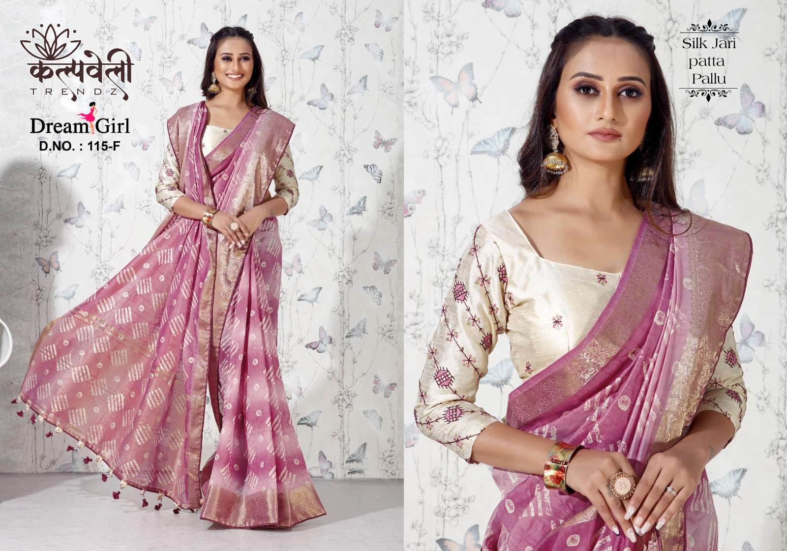 kalpavelly trendz dream girl 115 silk zari patta fancy sarees catalog