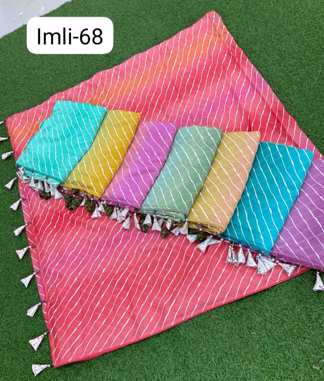 Imli 68 no. -799/- Fabric: Spun cotton Concept: Leheriya print design with light🎨 colors Blouse: contrast matching work blouse Packing : 29.08.2023📌 |