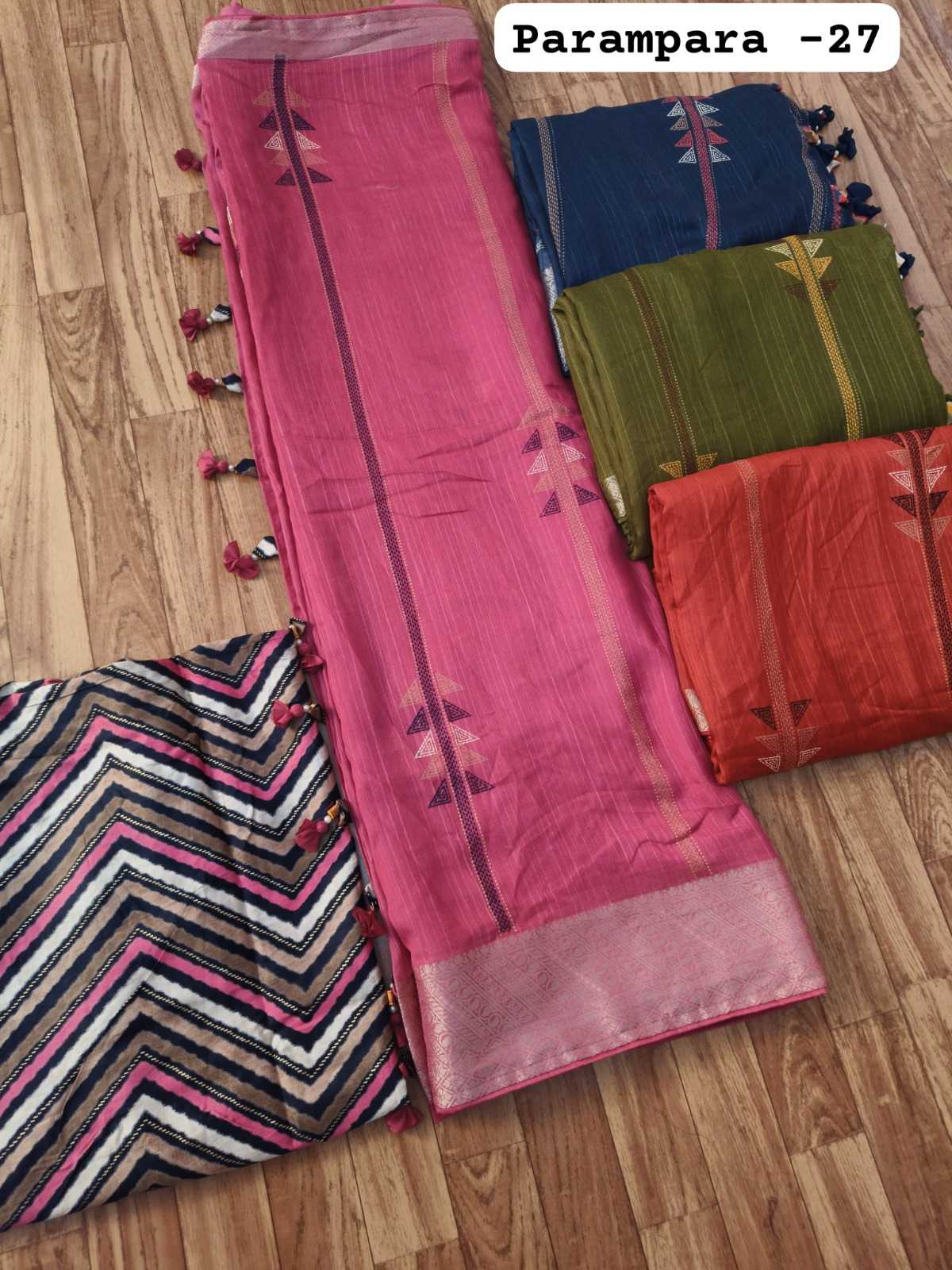 Parampara 27 no. -965/- Fabric: Conika silk Concept: Beautiful design in lining concept Blouse: Leheriya print blouse |