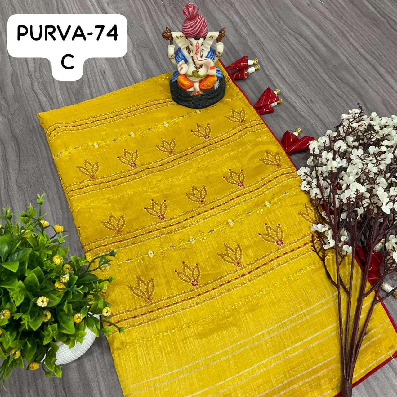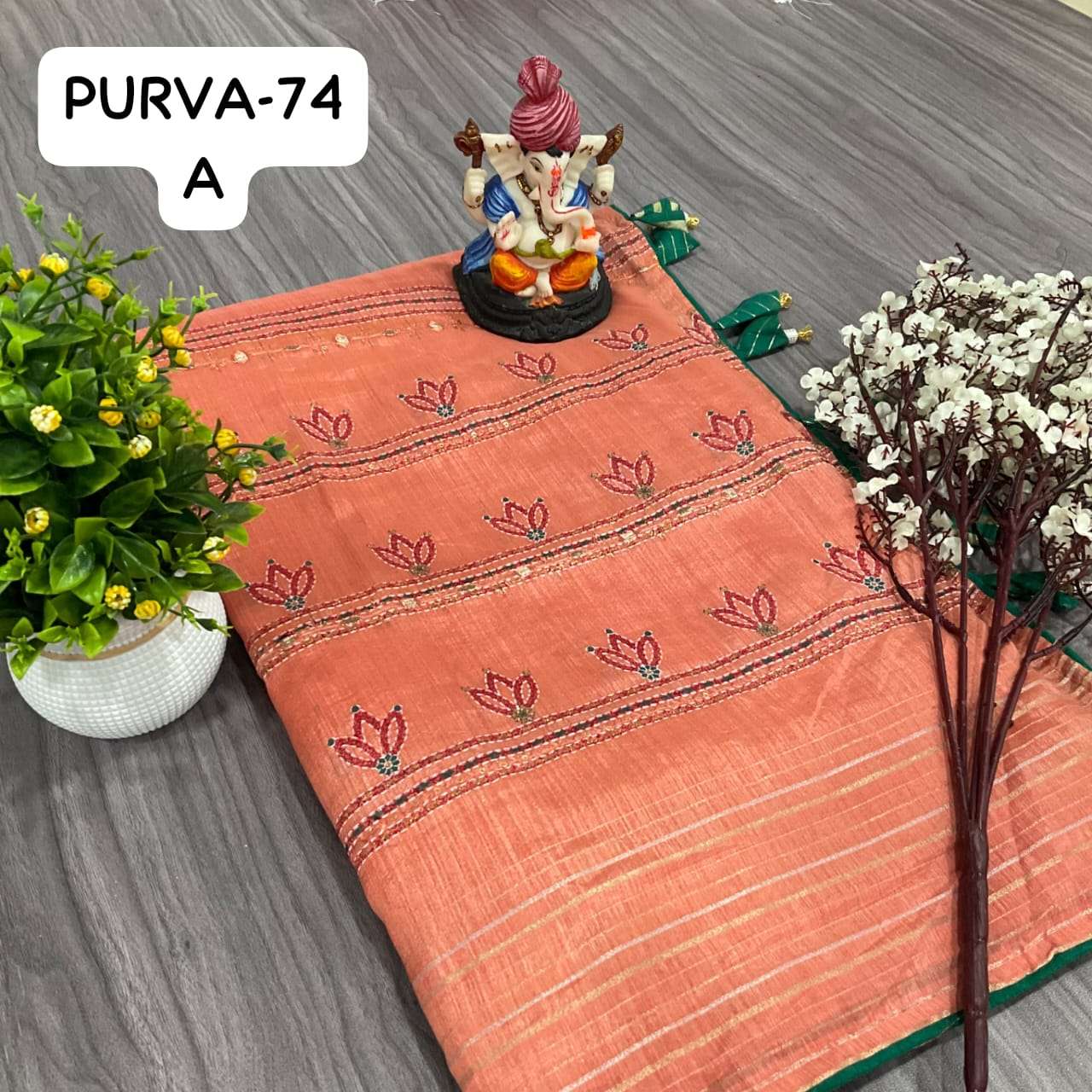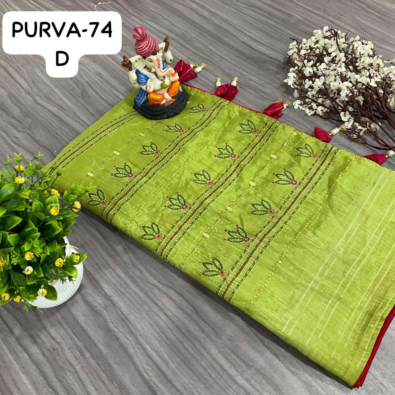 Purva 74 no. -999/- Fabric: Dolla silk Concept: Fancy thread🧵 work in dolla saree Blouse:Contrast matching blouse Packing : 08/09/2023 📌 |
