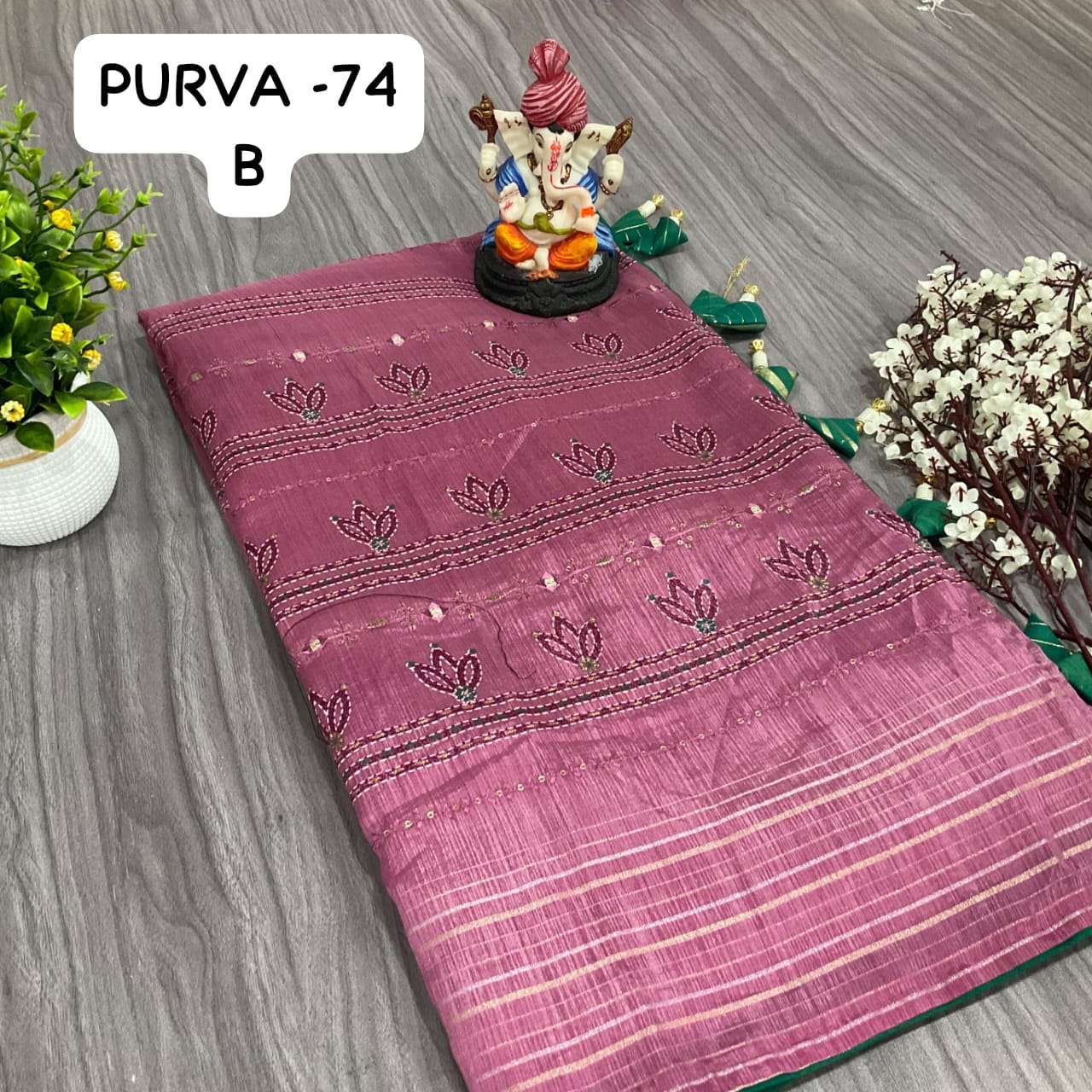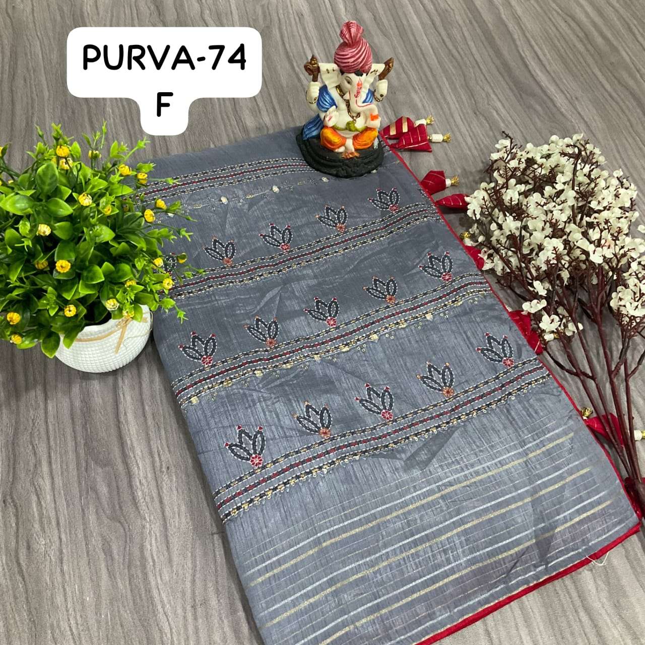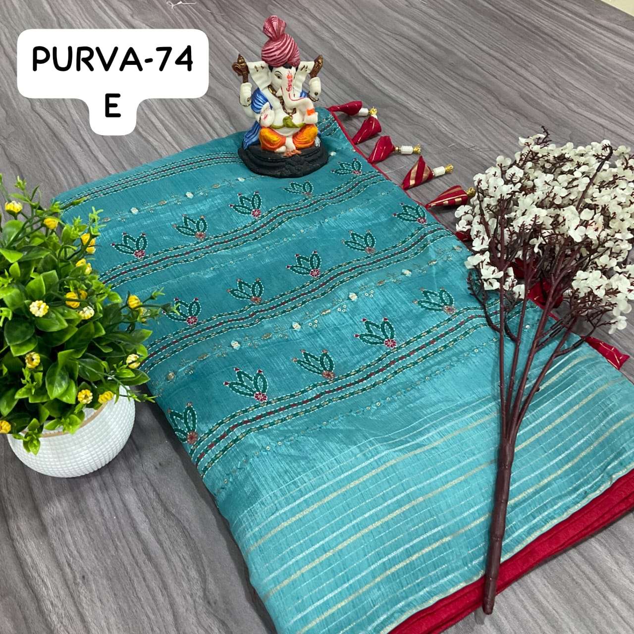Purva 74 no. -999/- Fabric: Dolla silk Concept: Fancy thread🧵 work in dolla saree Blouse:Contrast matching blouse Packing : 08/09/2023 📌 |
