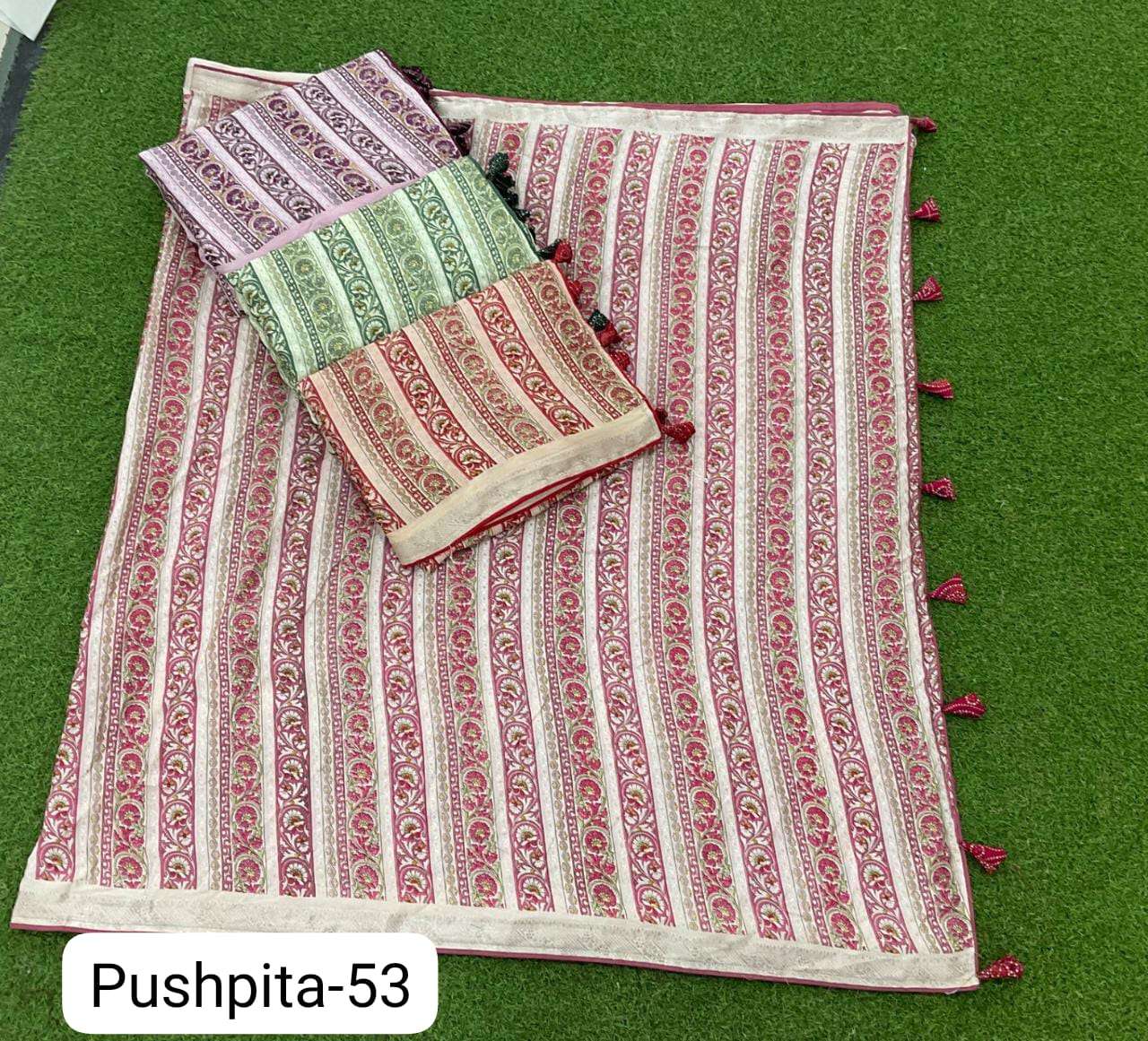 Pushpita 53 no. -851/- Fabric: silk saree Concept: silk saree with jari patta Blouse: Matching work blouse Packing : 29.08.2023📌 |