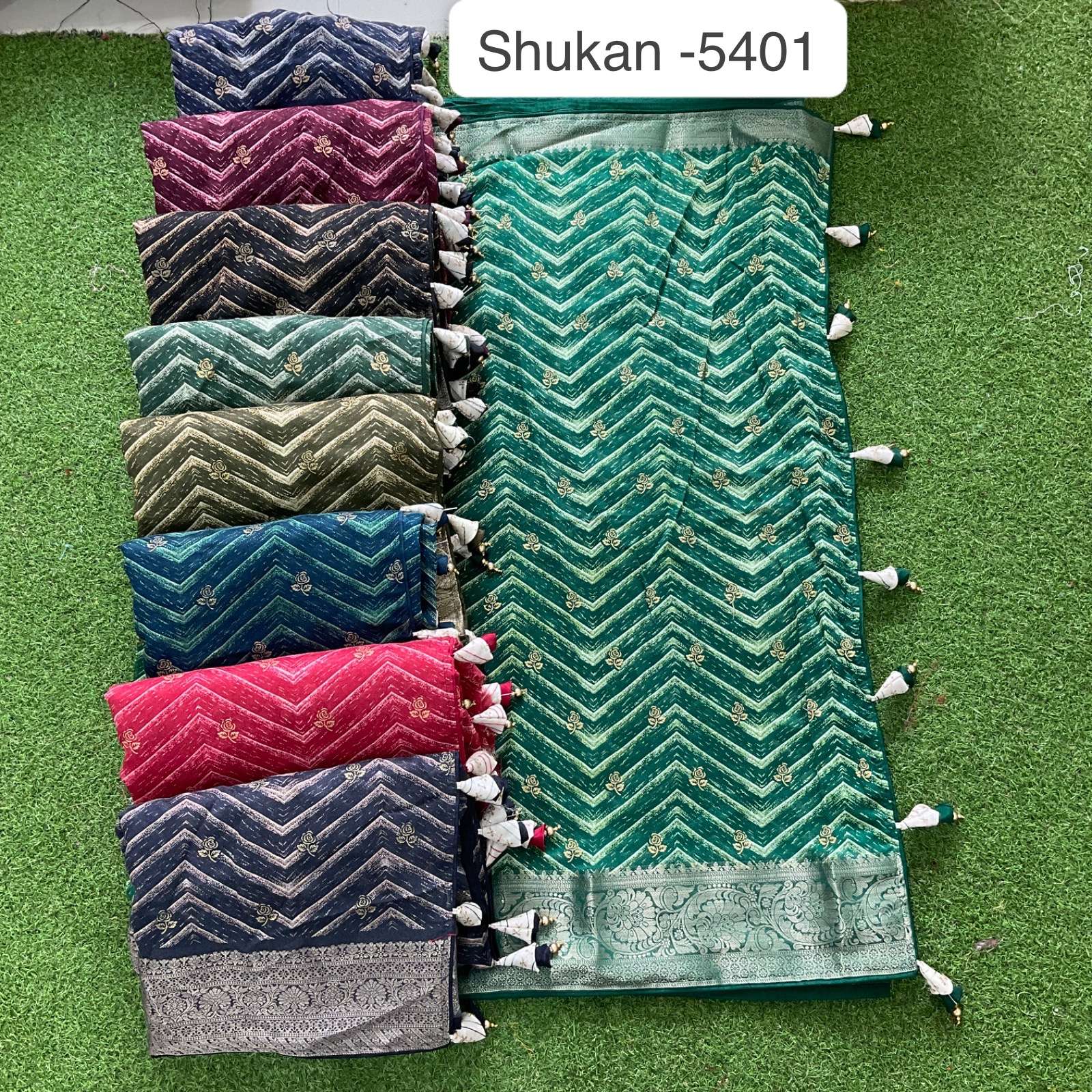 Shukan 5401 no. -785/- Fabric: spun cotton Concept: Beautiful foil print with jacquard border Blouse:work blouse Packing : After 15 days📌 |