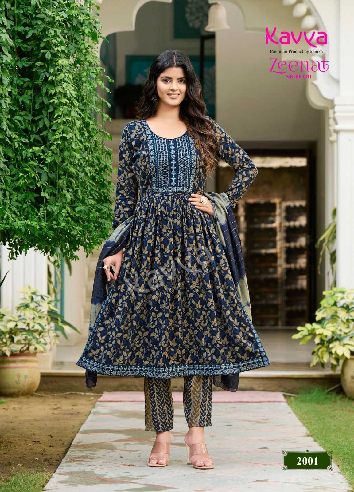 kavya zeenat vol 2 readymade nayra cut beautiful festive wear 3 pcs set