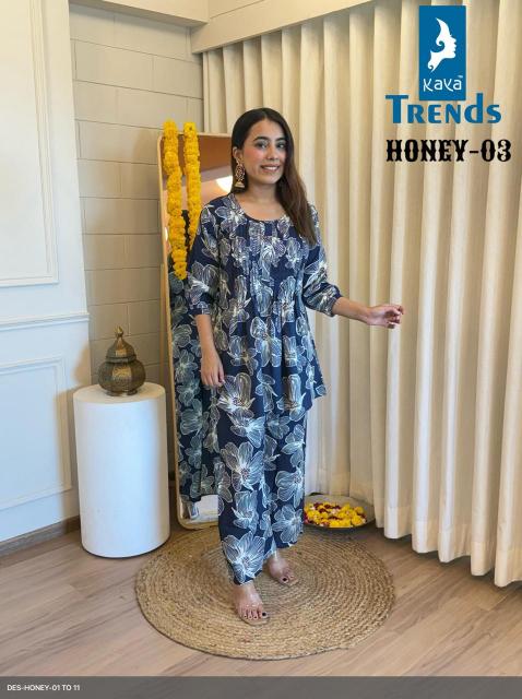 kaya launch honey 1 to 11 rayon readymade stylish combo co-ord online