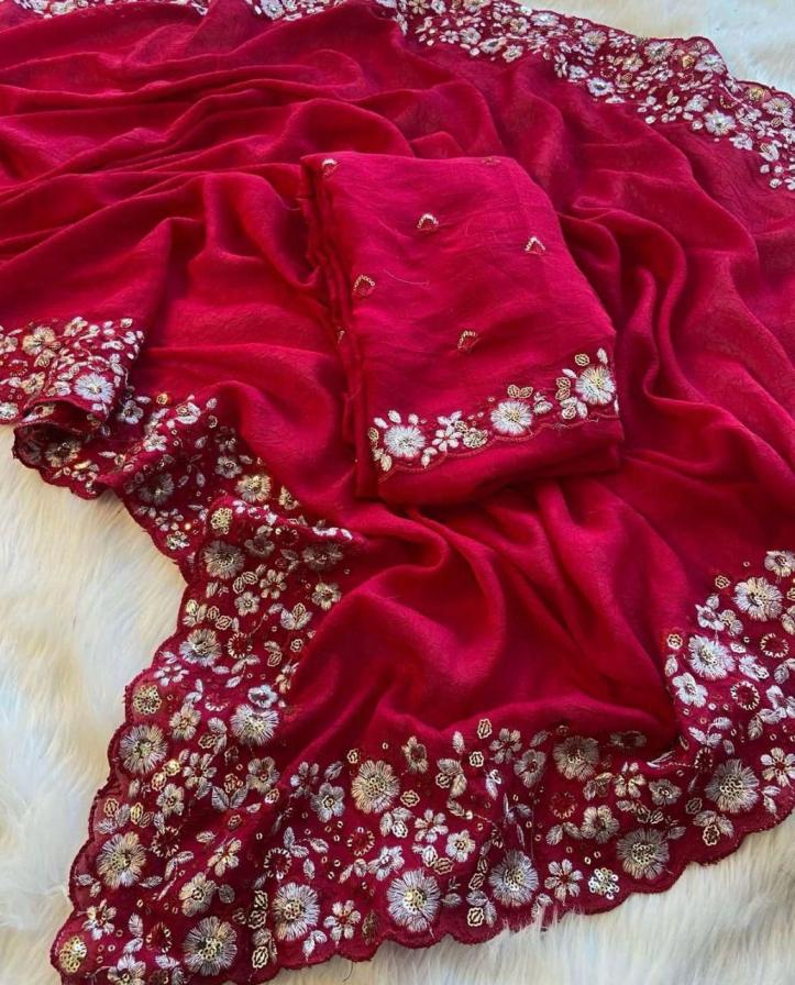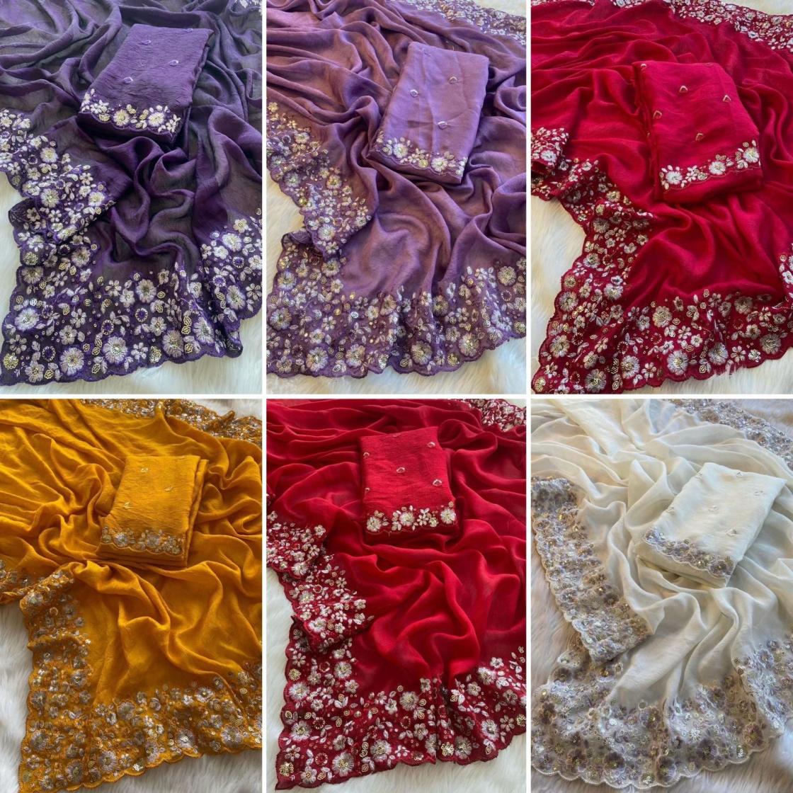 LAUNCHING A NEW SUPER HIT DESIGNERS EMBRODERY C-PALLU WORK SAREE KC-174 FABRICS : HEAVY SOFT CRUSH SILK FABRIC ON EMBRODIERY C-PALLU MULTI THREAD AND SEQUENCE WORK WITH CUT WORK BORDER ON SAREE BLOUSE : HEAVY SOFT CRUSH SILK FABRIC ON EMBRODIERY MULTI THREAD AND SEQUENCE WORK ON BLOUSE NOTE : UNSTITCHED BLOUSE NEW Price : 1499/-* |