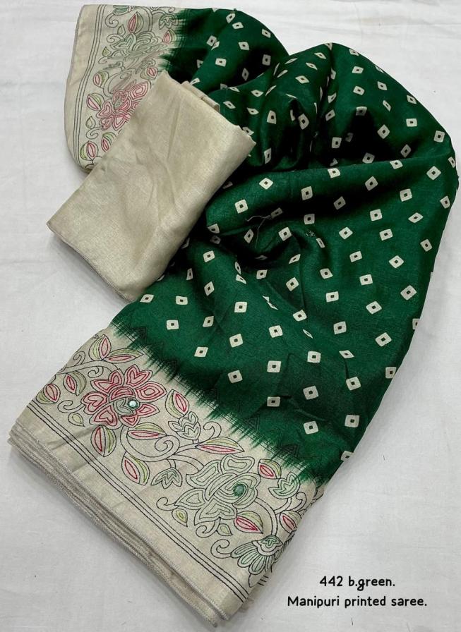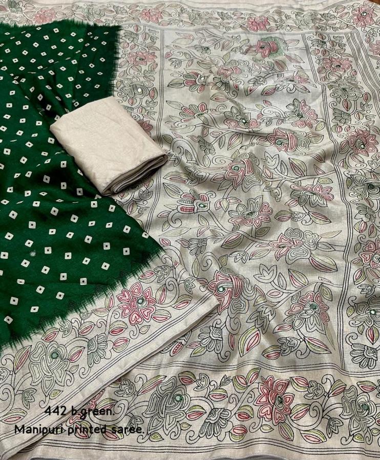 new arrivals New lightweight Manipuri saree from ak. KC - 442 Manipuri kalamkari. Soft manipuri saree with bhandej and kalamkari prints. Aari mirror work. Running manipuri kalamkari blouse. Rate - 499+ship. Top trusted quality |