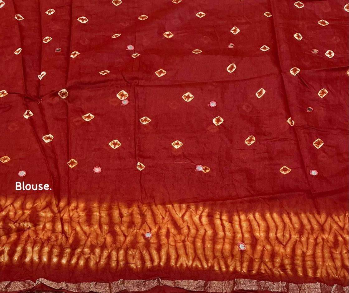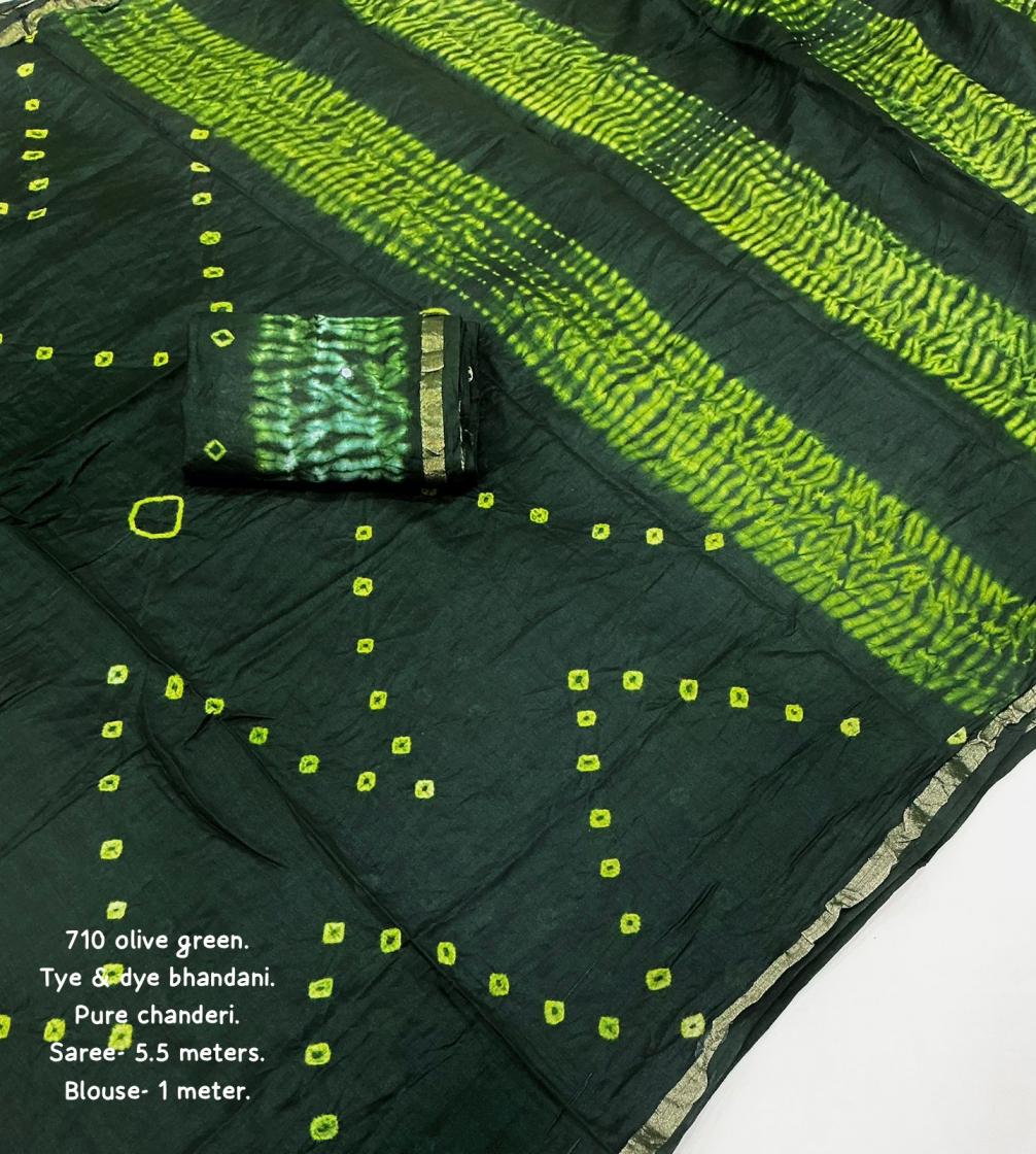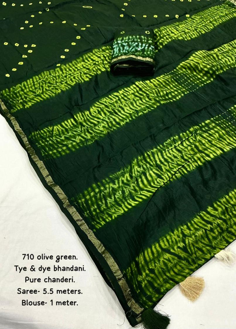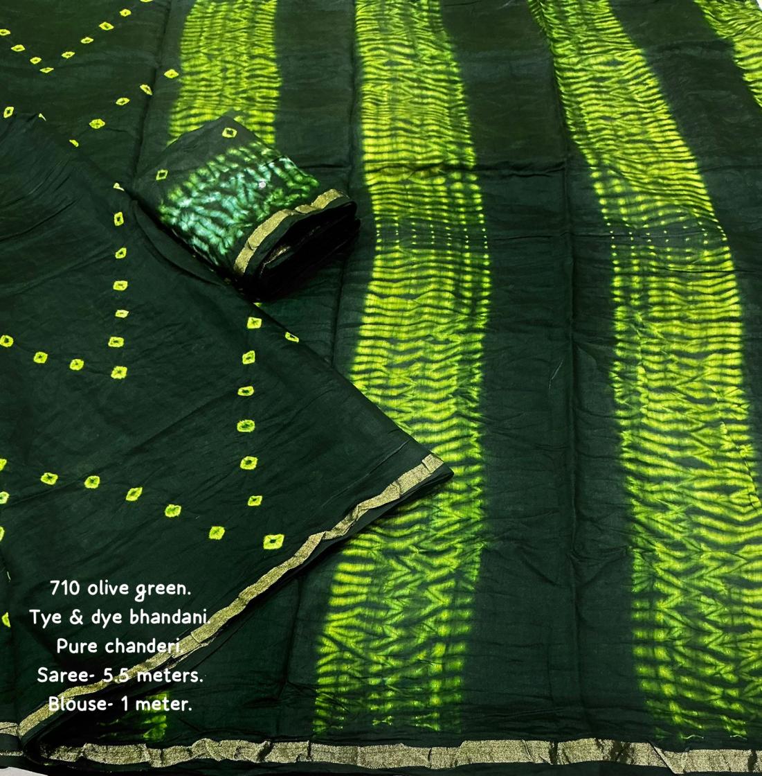 new arrivals New pure chanderi hand tye & dye bhandani saree. kc - 710 magic bhandani. Pure chanderi saree with zari pattu border. Hand tye. & dye bhandani style designs. Cotton tassels on pallu. Running pure chanderi blouse with bhanani designs and aari mirror. Rate - 1250+ship. Top trusted quality |
