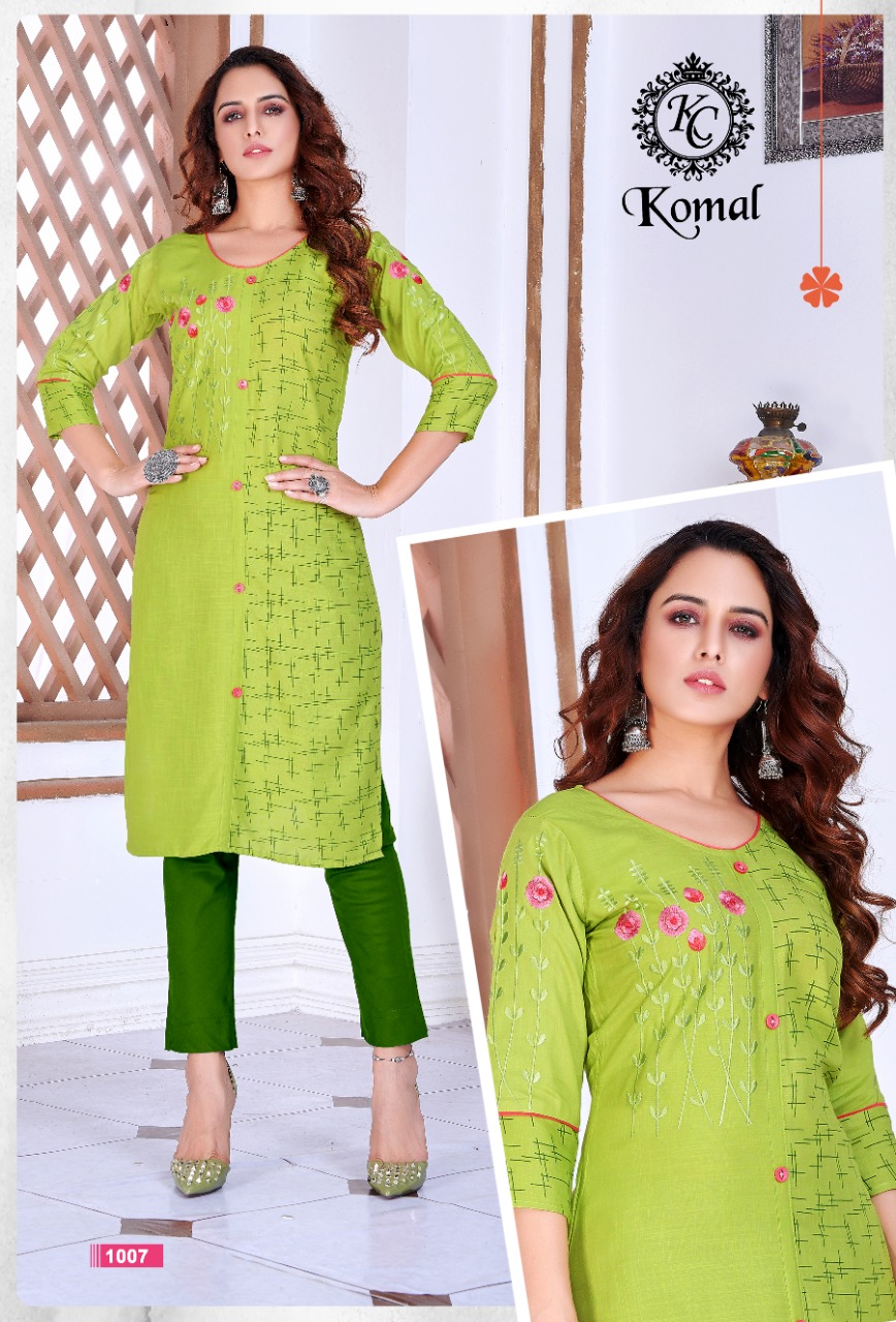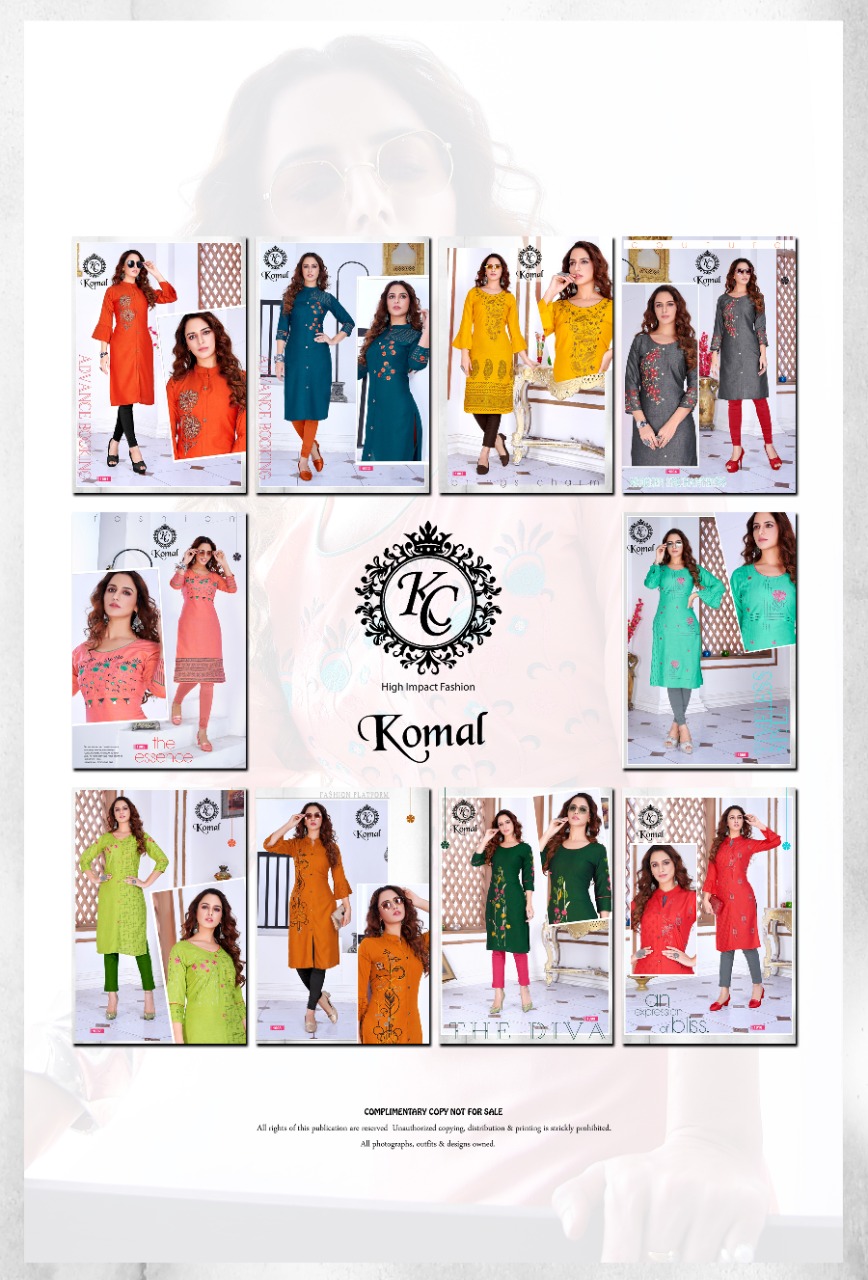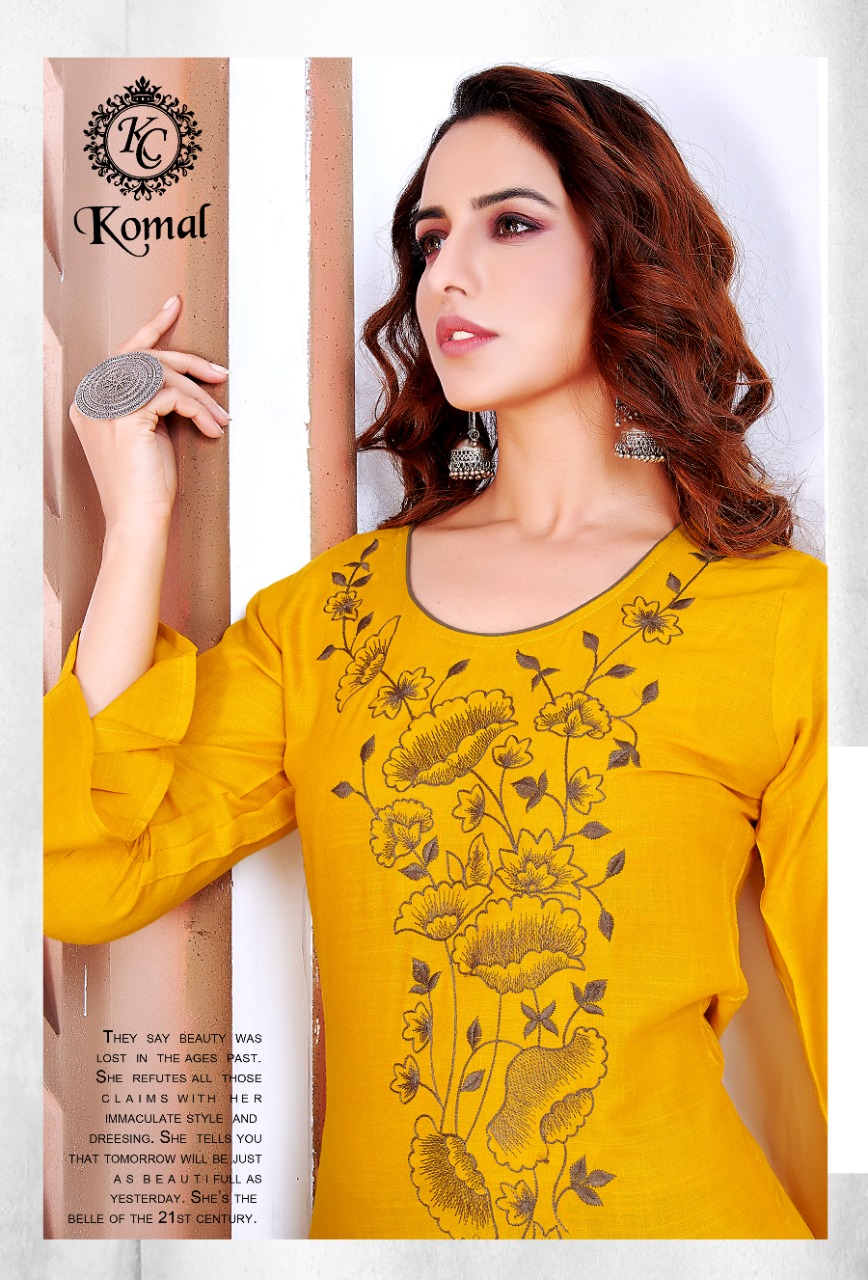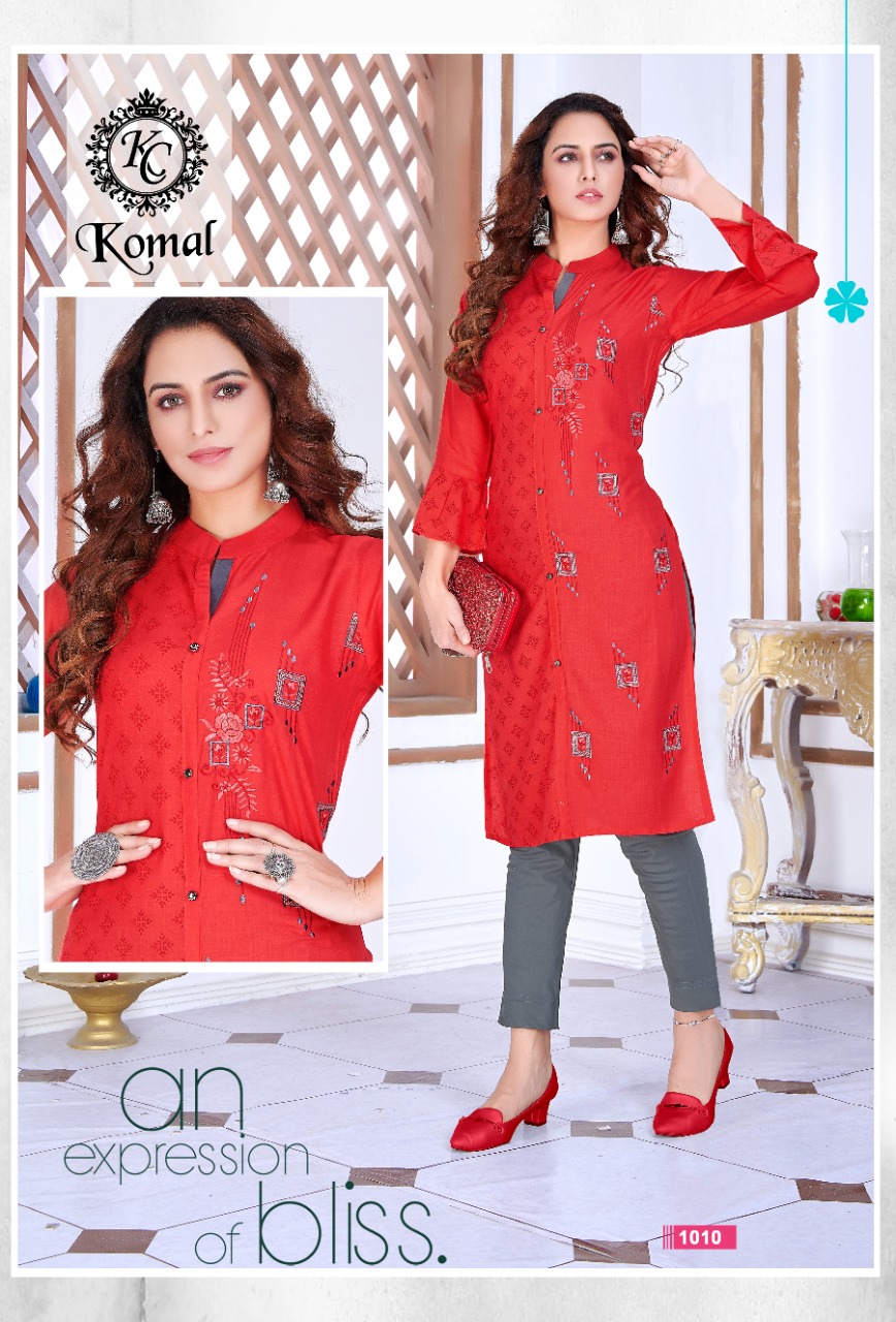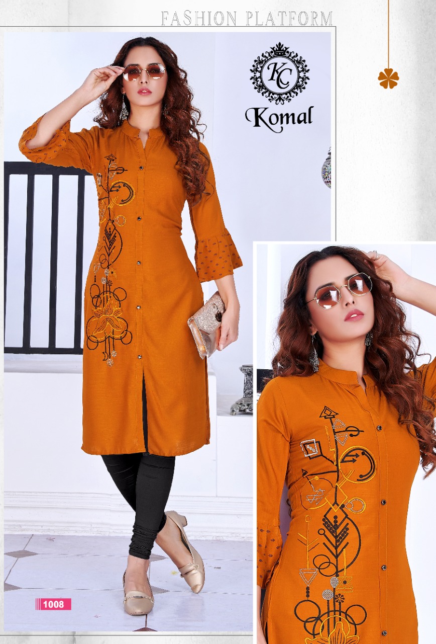 Kc Presenting Komal Rayon Slub Daily Wear Stylish Kurti Comfort Wear Catalogs