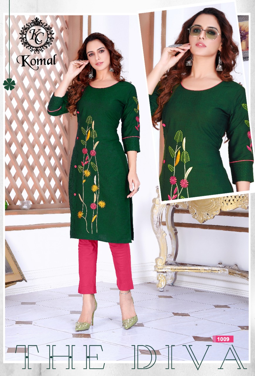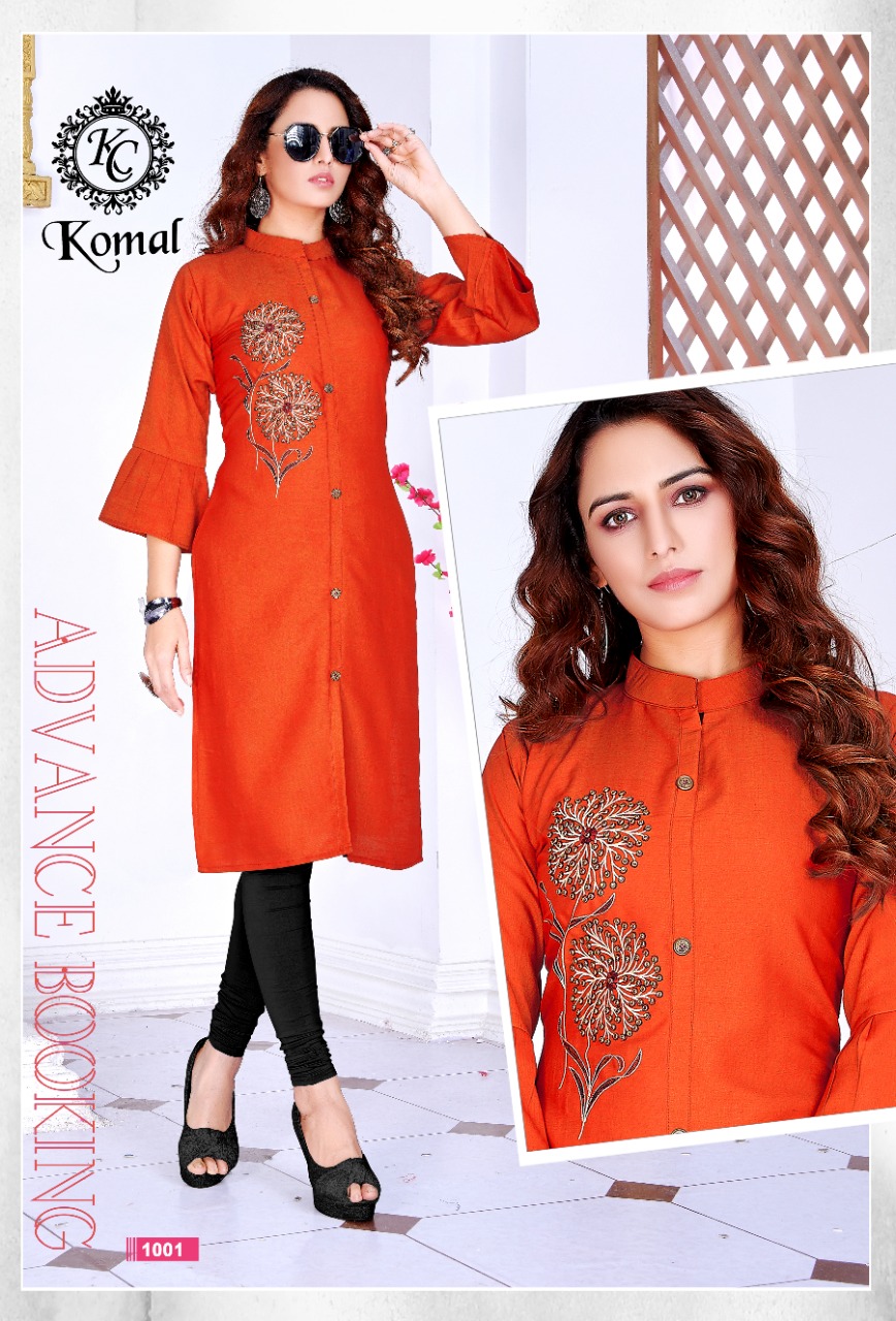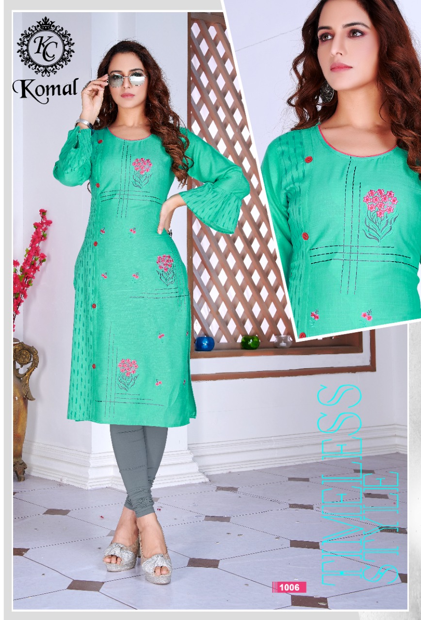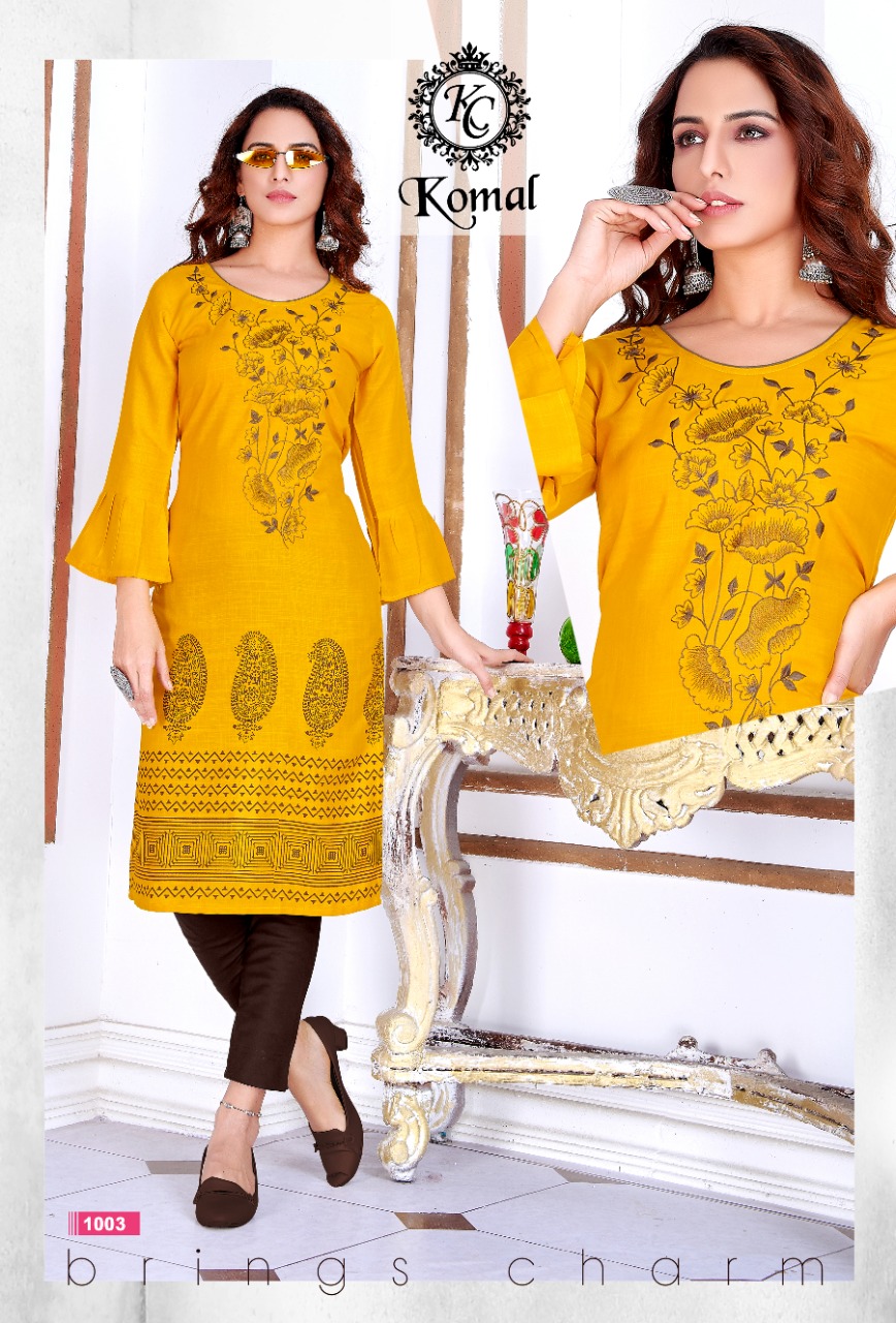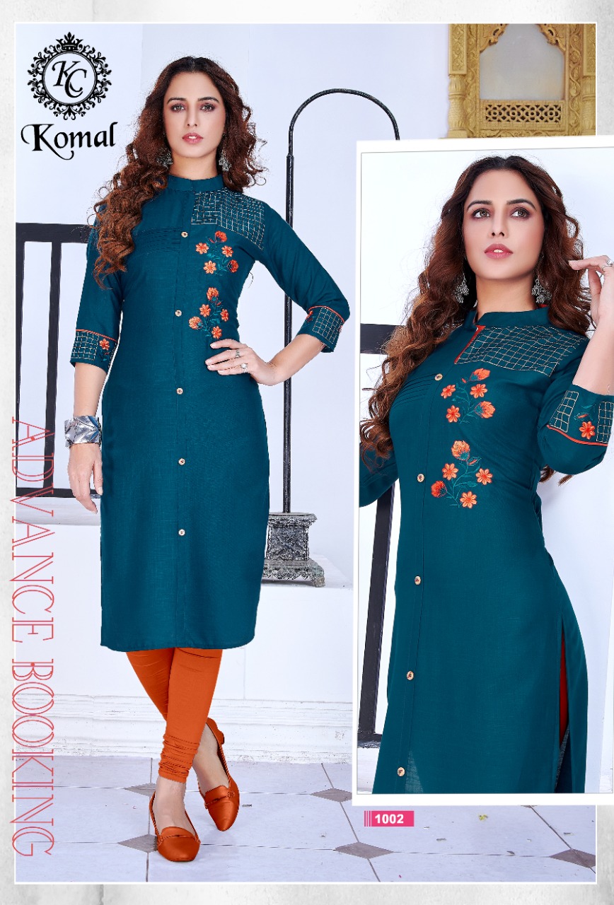 Kc Presenting Komal Rayon Slub Daily Wear Stylish Kurti Comfort Wear Catalogs