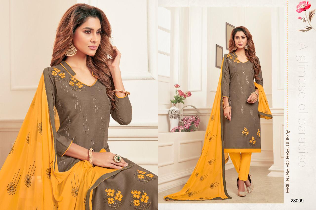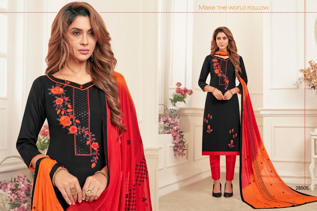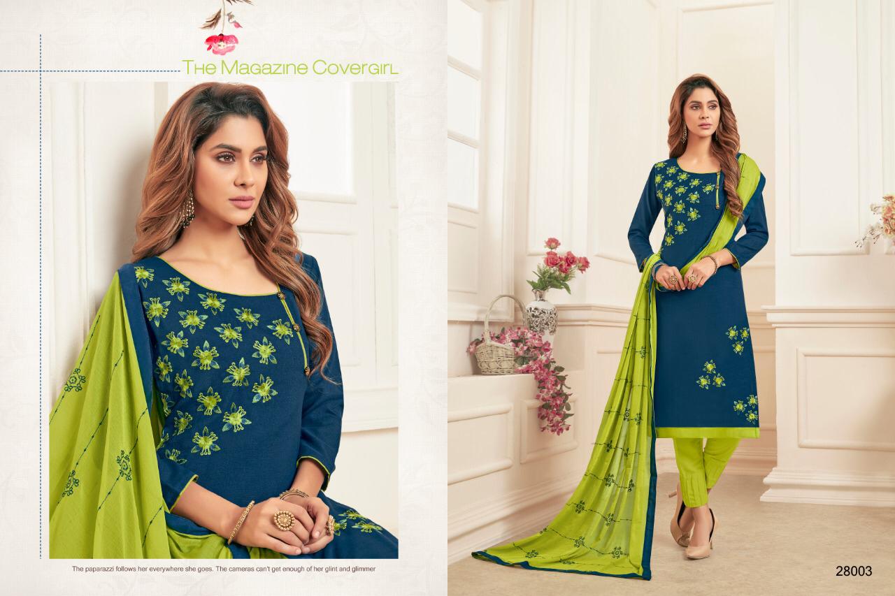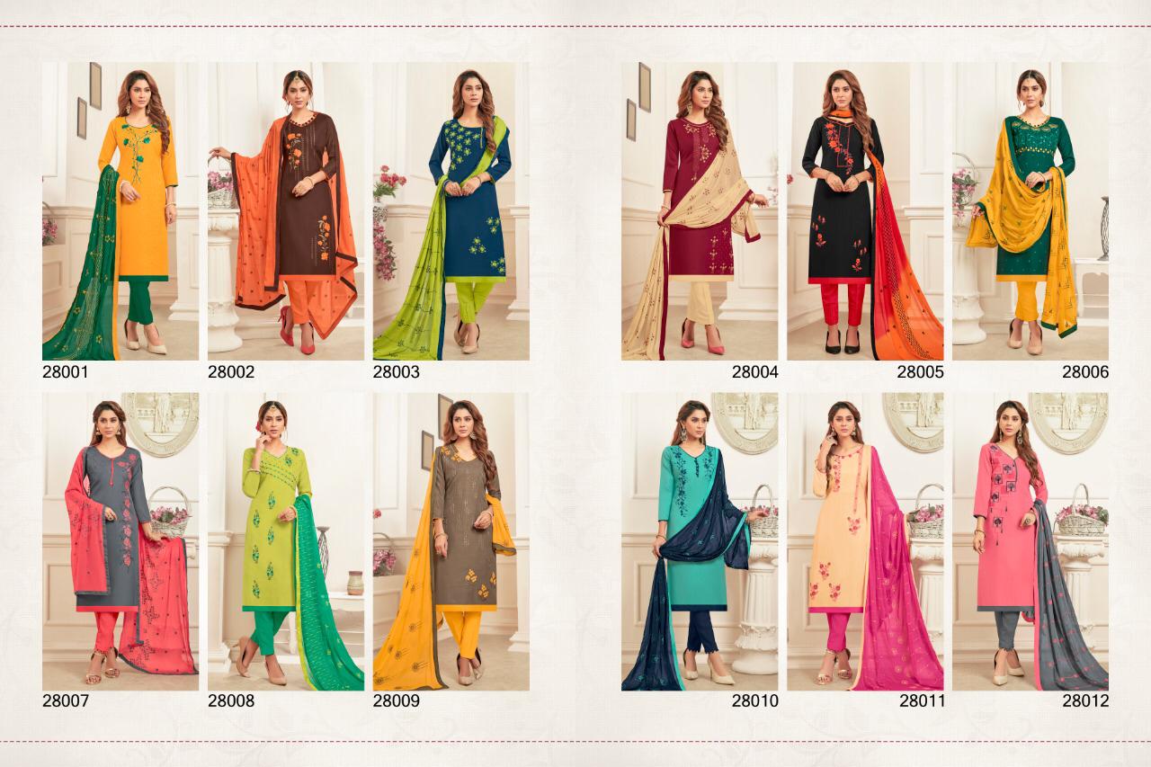 KESARI-2 by Raghav -A fancy top-dupatta work edition. Top: Soft Cotton Slub with fancy work Dupatta: Najnin embroidery work Bottom: Cotton @575/- Total 12 Pcs in set . Set to set. GST 5 Percent Extra . Delivery 2 days |
