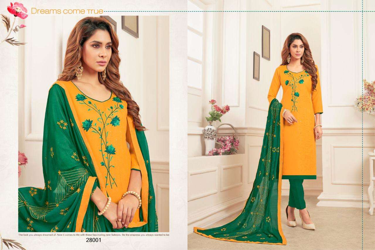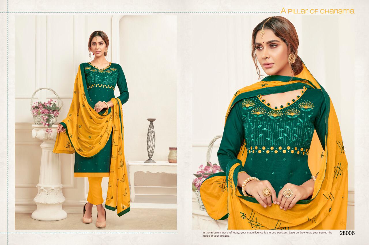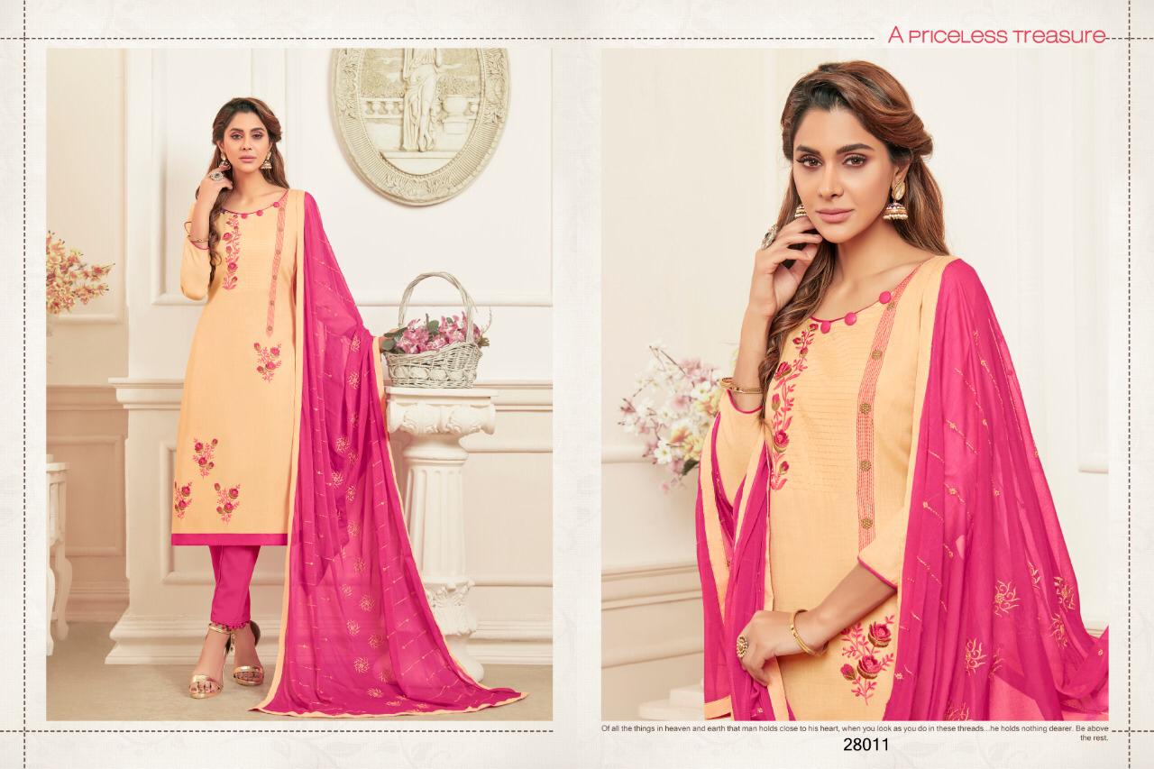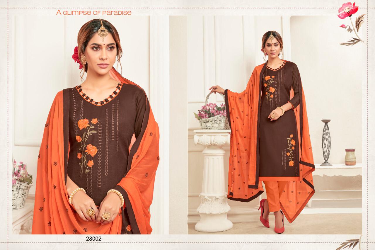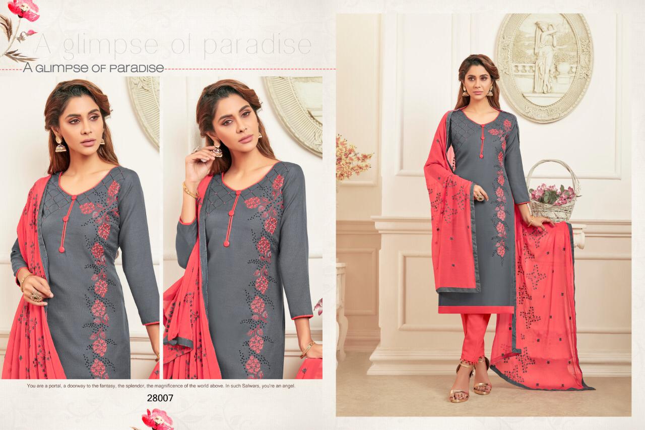 KESARI-2 by Raghav -A fancy top-dupatta work edition. Top: Soft Cotton Slub with fancy work Dupatta: Najnin embroidery work Bottom: Cotton @575/- Total 12 Pcs in set . Set to set. GST 5 Percent Extra . Delivery 2 days |