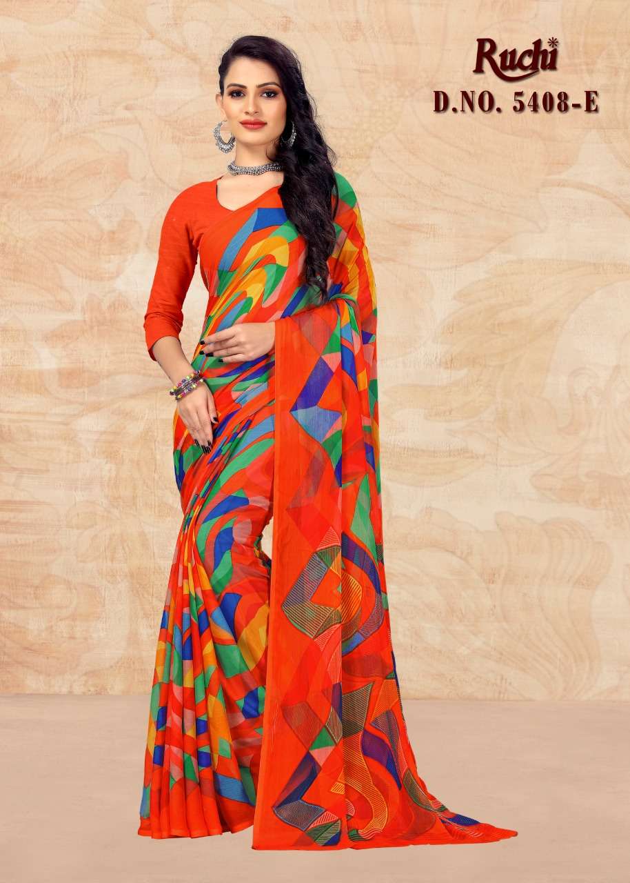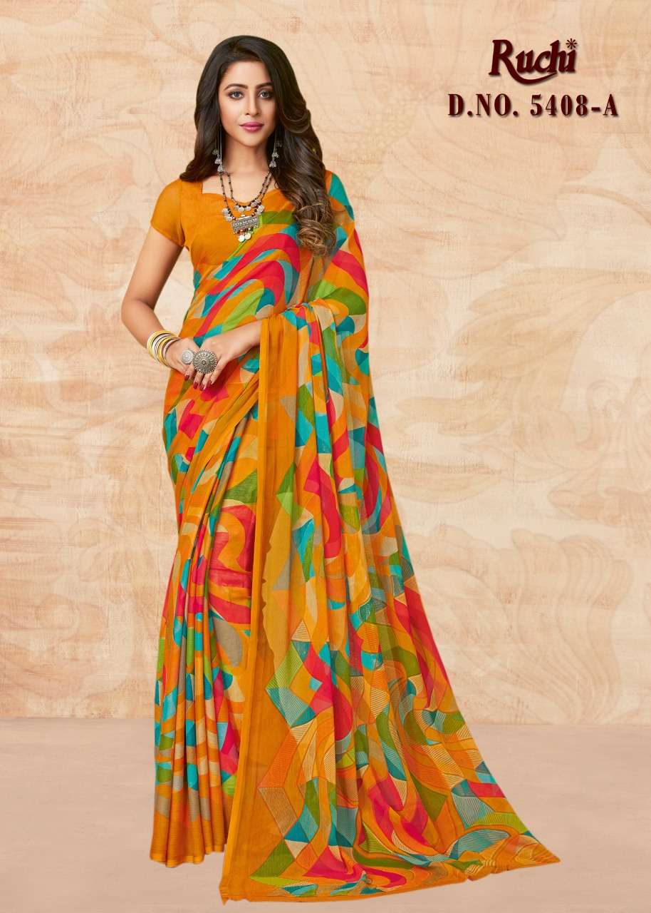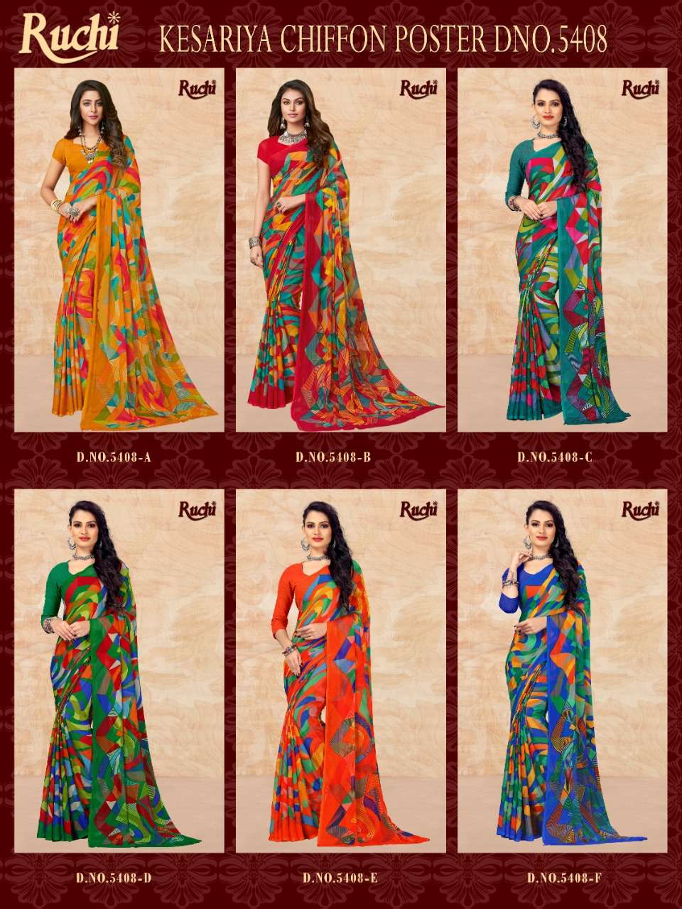 kesariya chiffon 5408 by ruchi chiffon printed casual wear saree