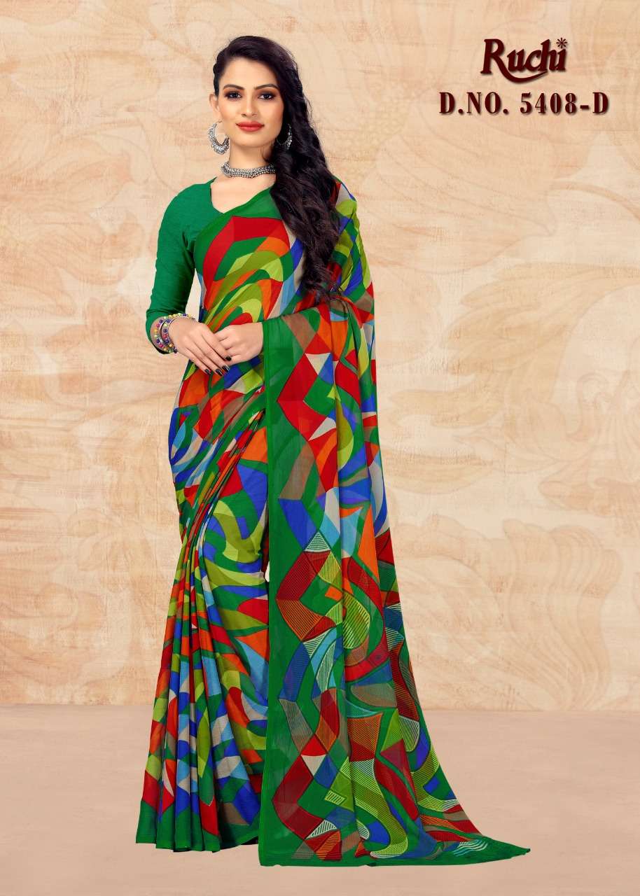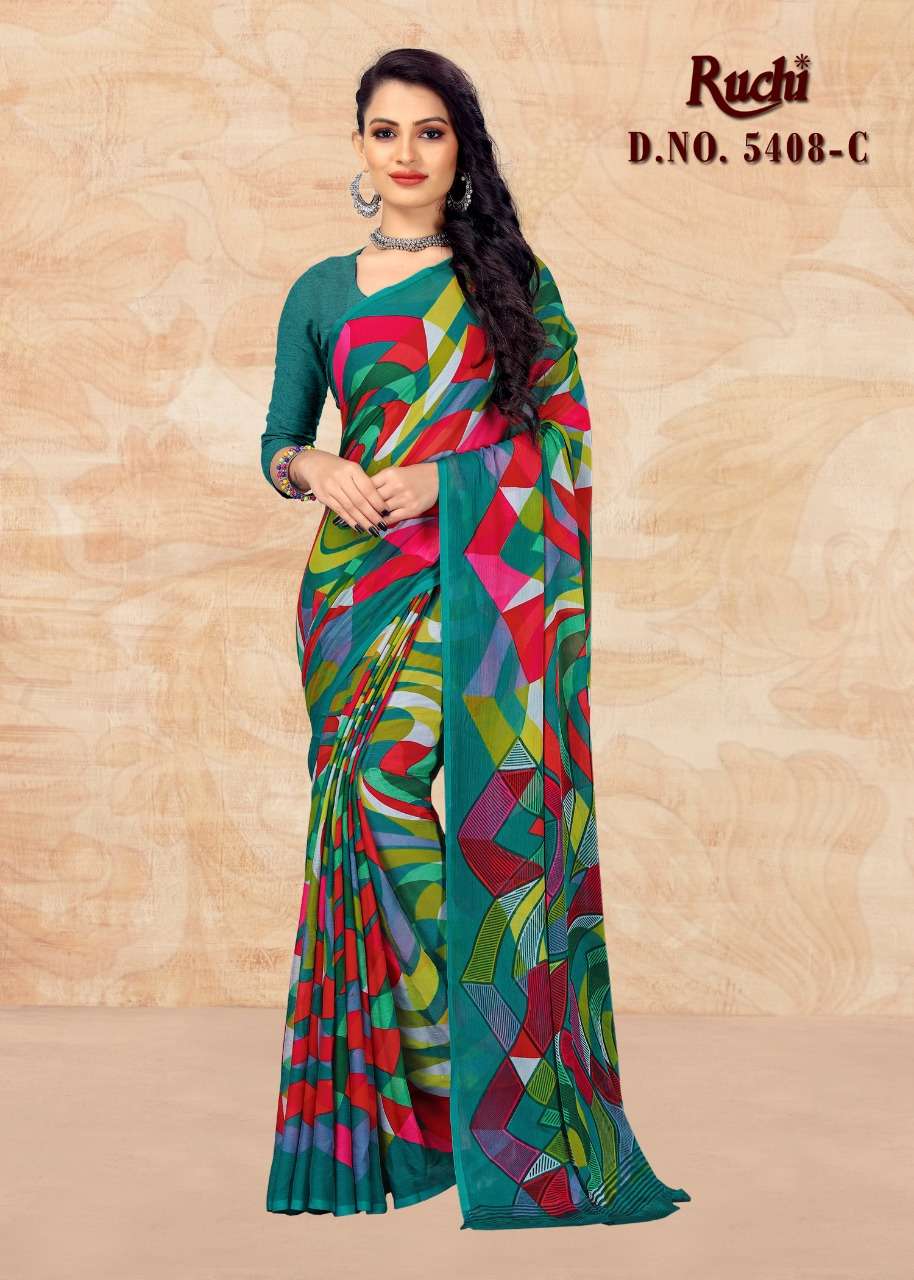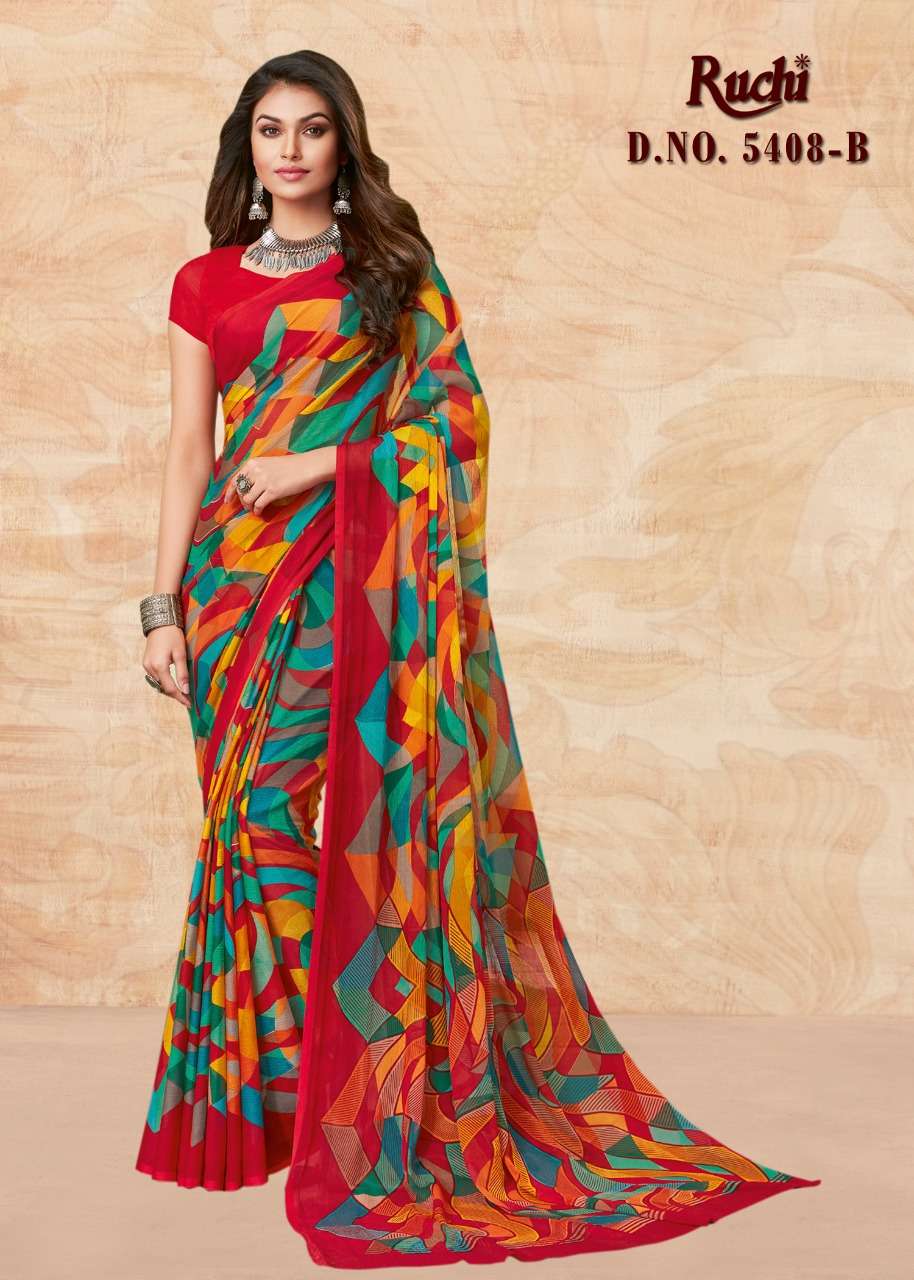 kesariya chiffon 5408 by ruchi chiffon printed casual wear saree