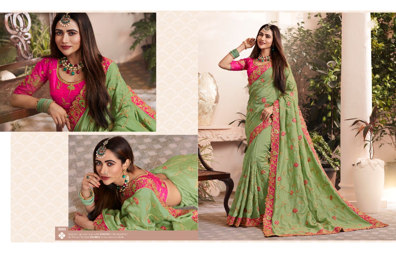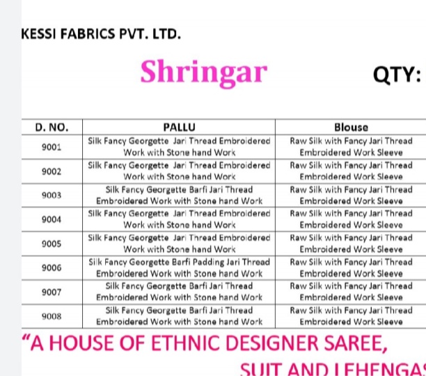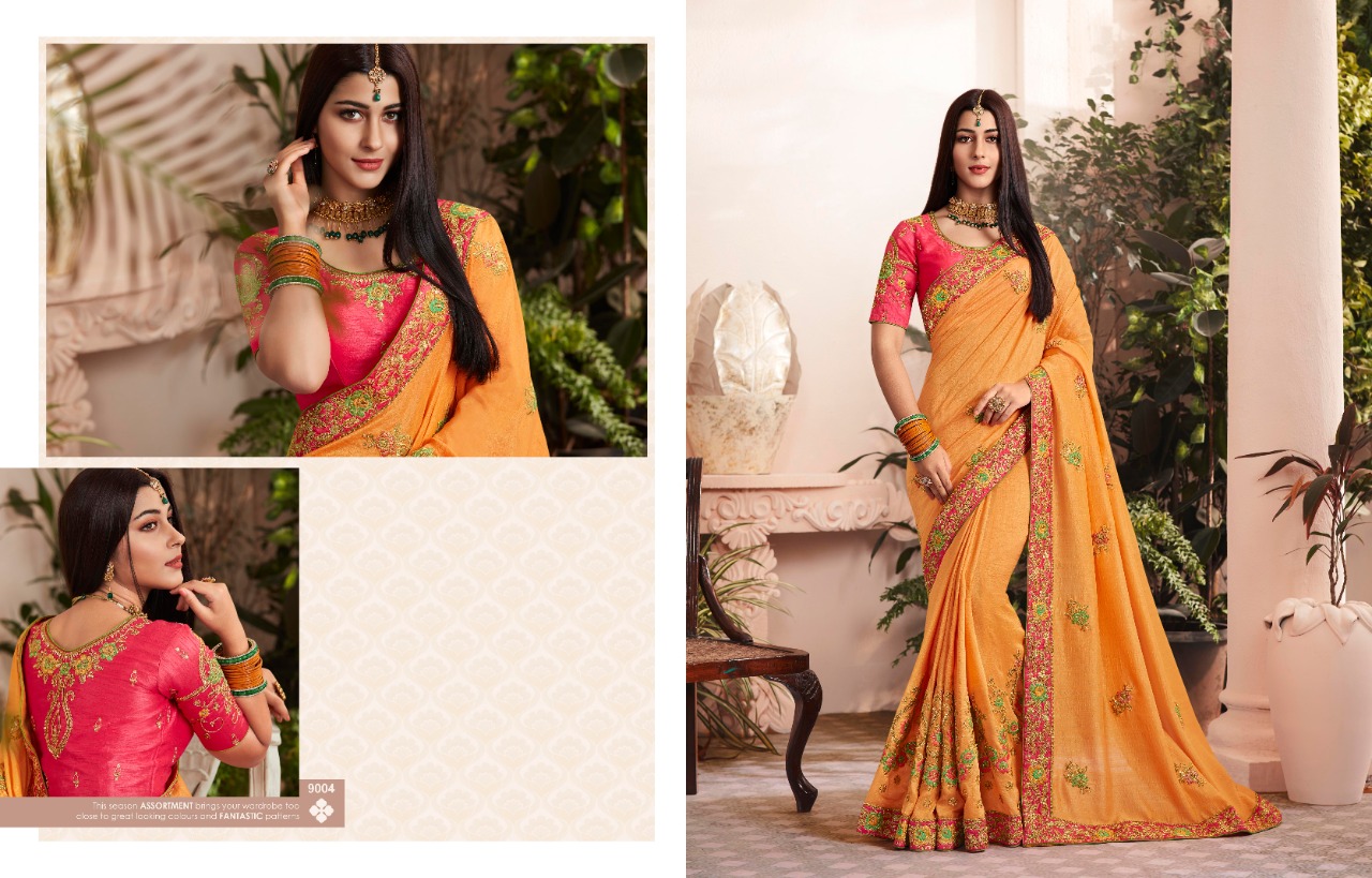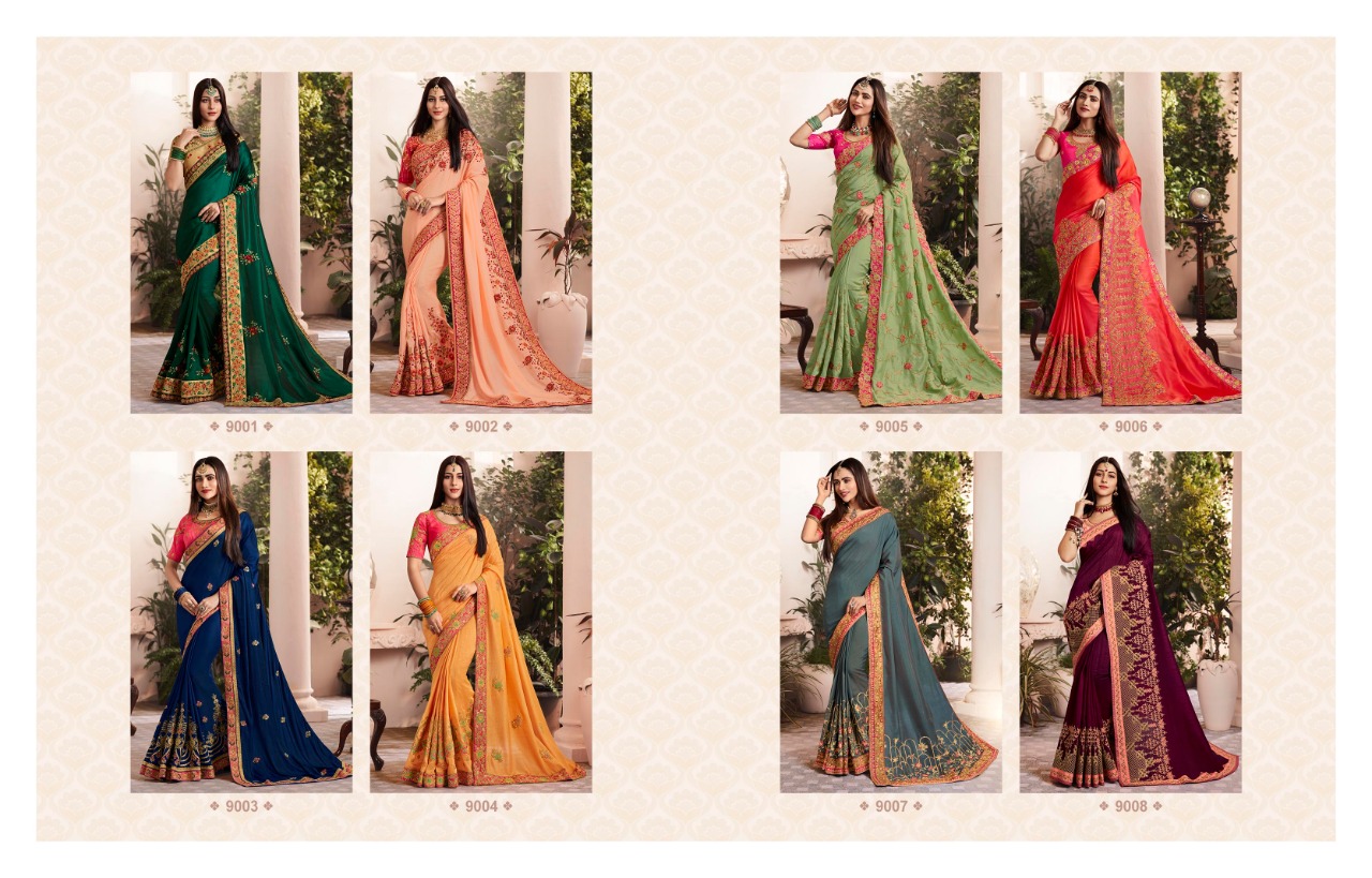 Kessi Fabrics Shringar 9001-9008 Series Heavy Embroidery Saris With Designer Blouse Concept