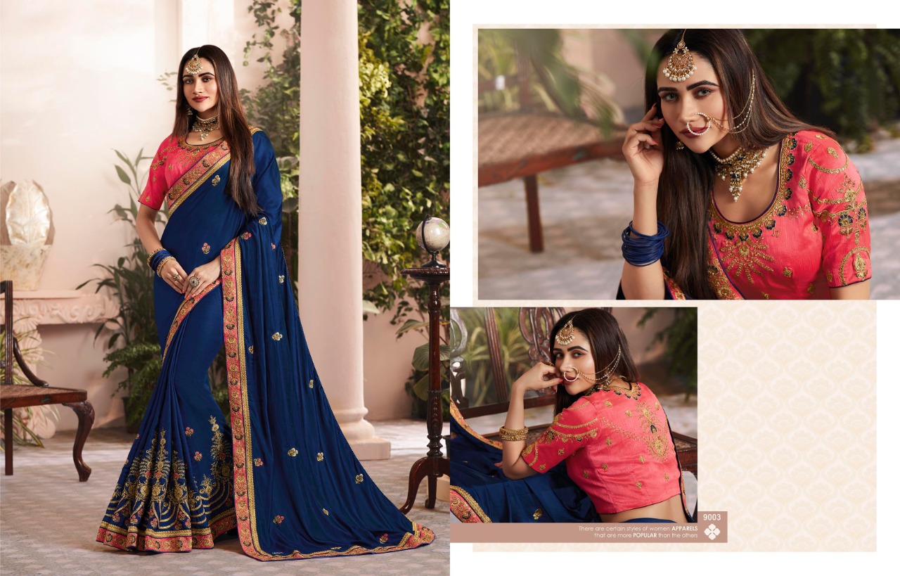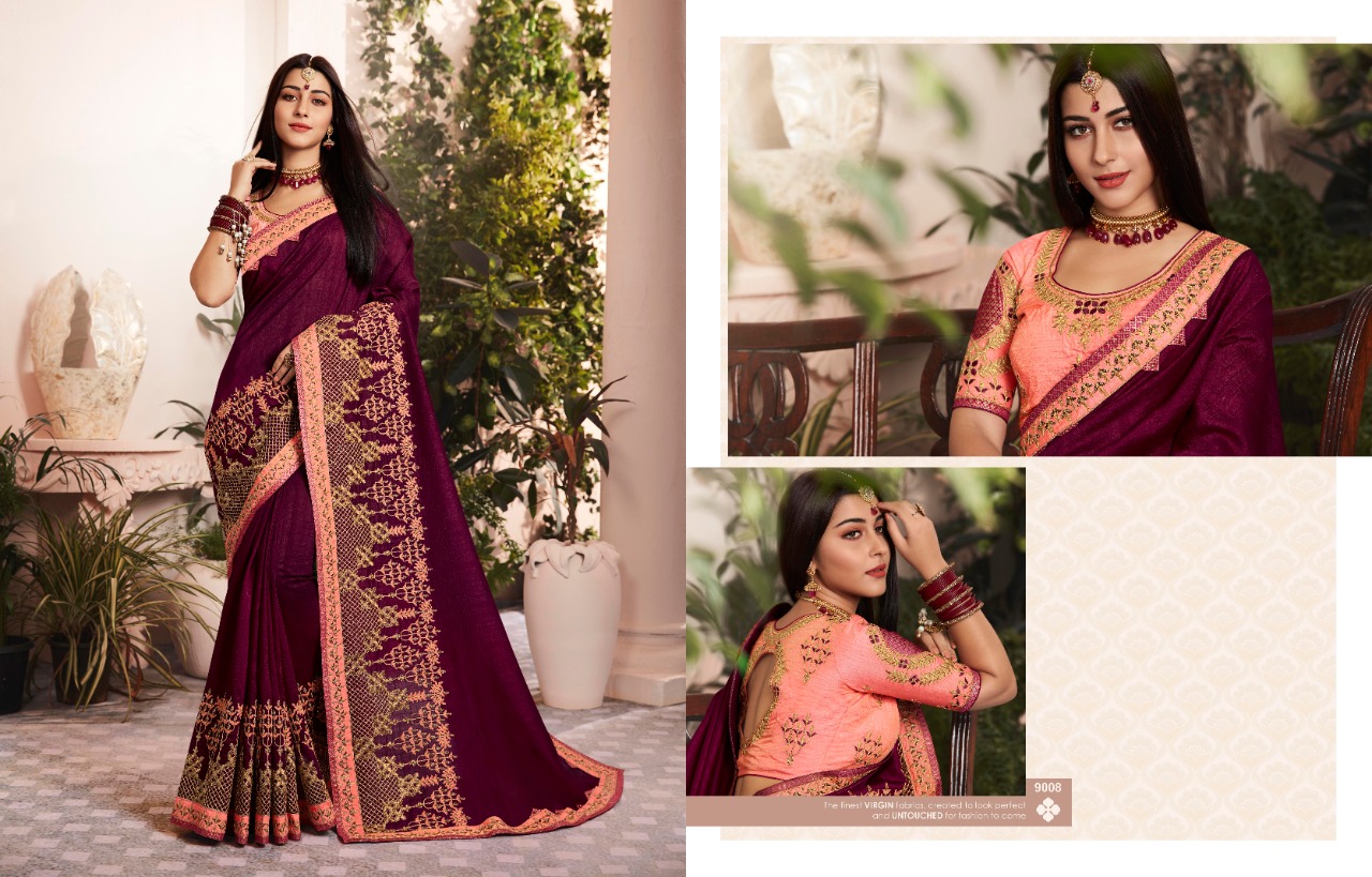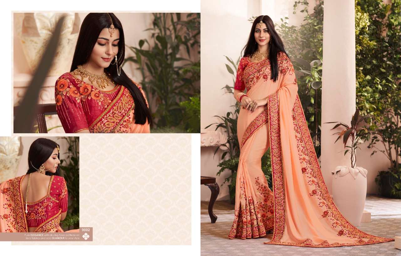 Kessi Fabrics Shringar 9001-9008 Series Heavy Embroidery Saris With Designer Blouse Concept