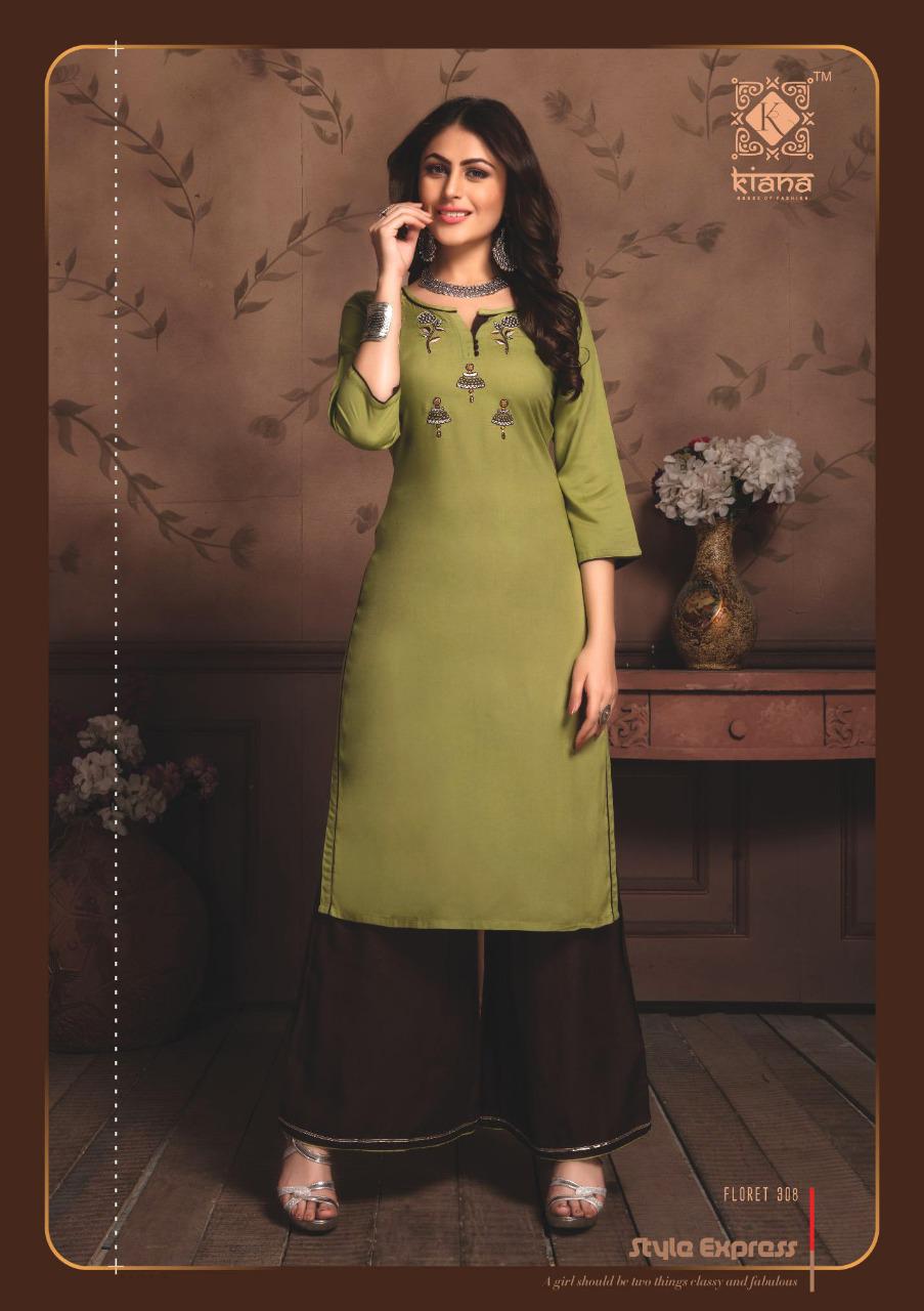 Kiana Launch Floret Vol 3 Special Designer Rayon Kurti With Plazzo Wholesaler