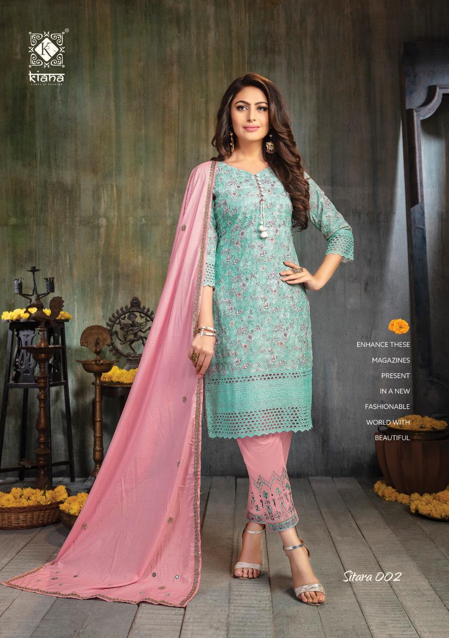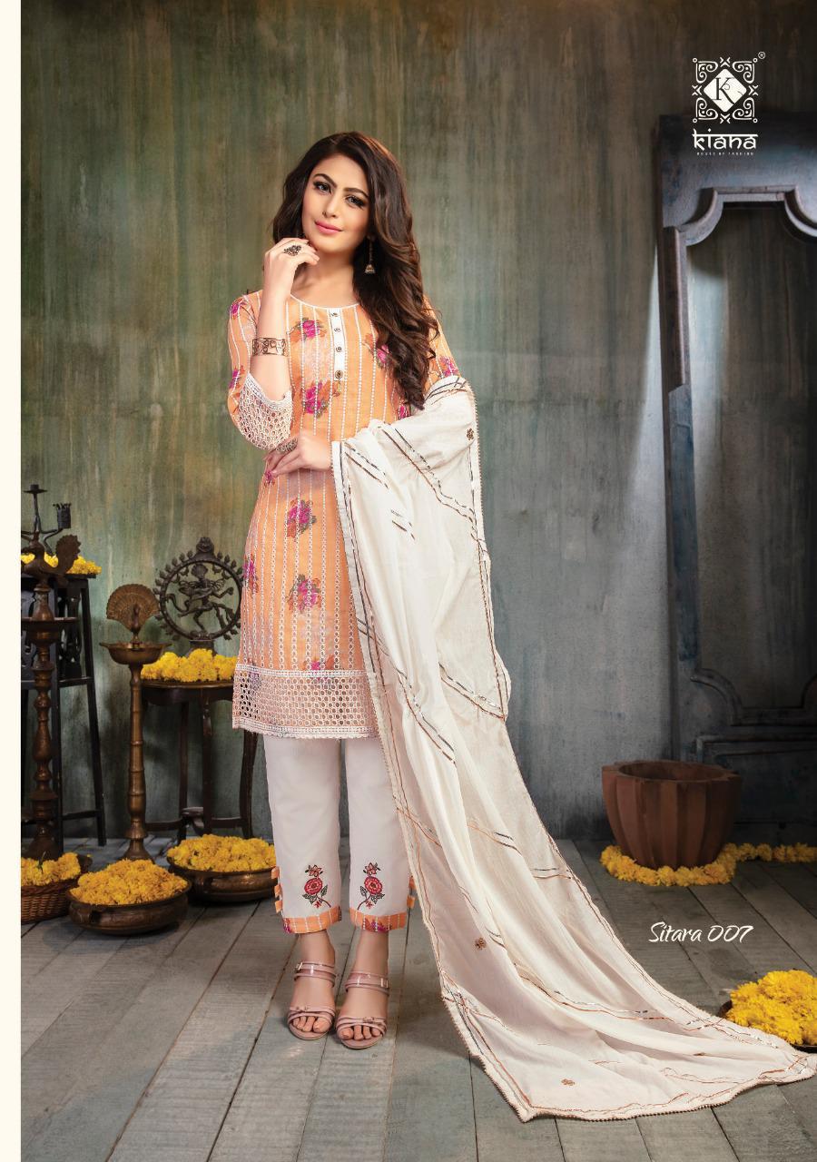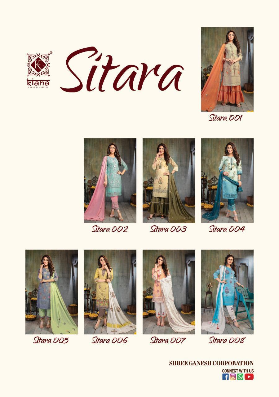 👑Kiana ®️👑 *House of fashion * 👗Catalogue Name- New series 💫 SITARA 💫 👗Fabrics :-Schiffli top with digital print with stylish flex pant / sharara with stylish work accessories dupatta 🎗Size :- M ,L, XL, XXL, 3XL, ☣Designs :- 8 pcs Rate- 1140 per pcs . Set to set . Delivery 4-5 days Note:-colors may be very slightly due to light effect during photography |