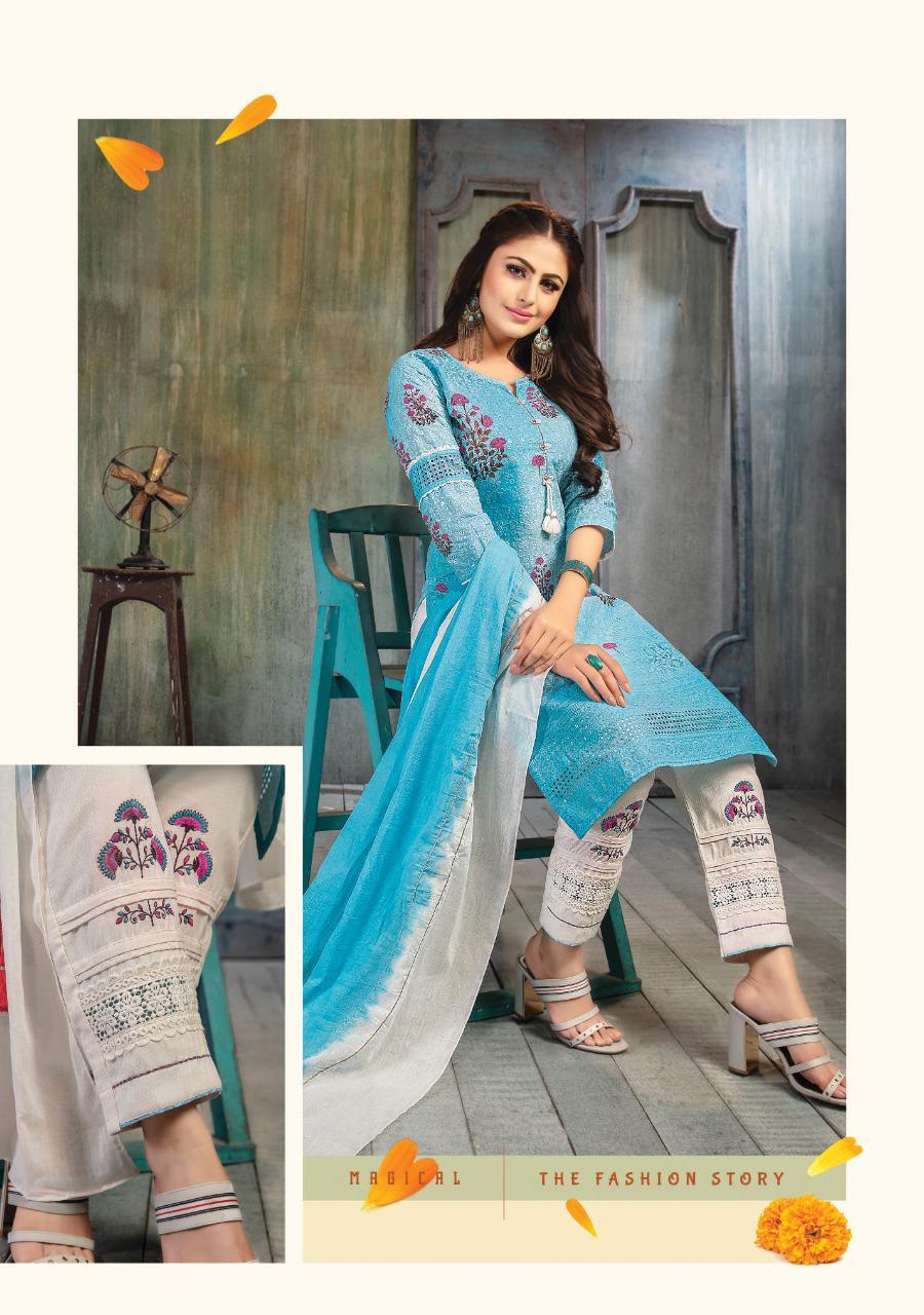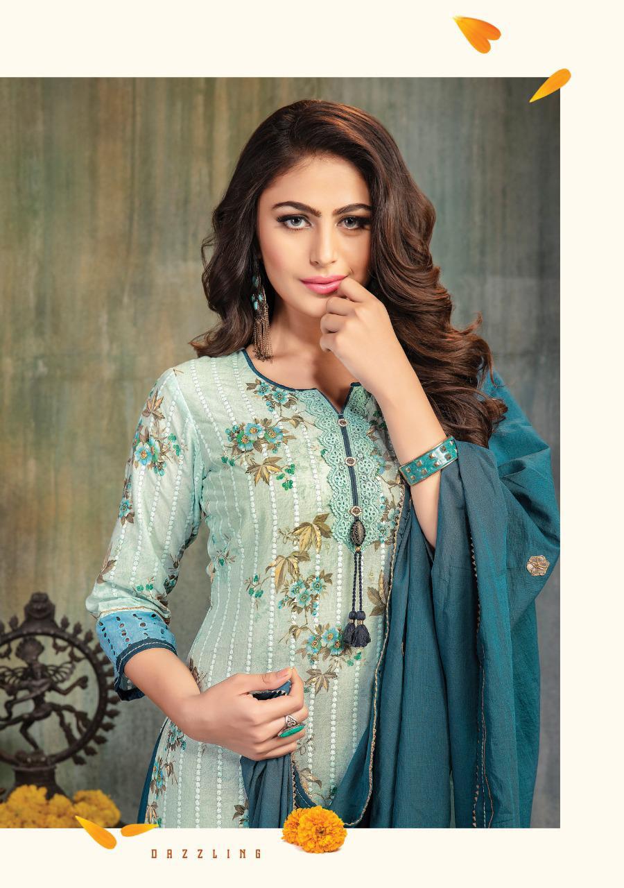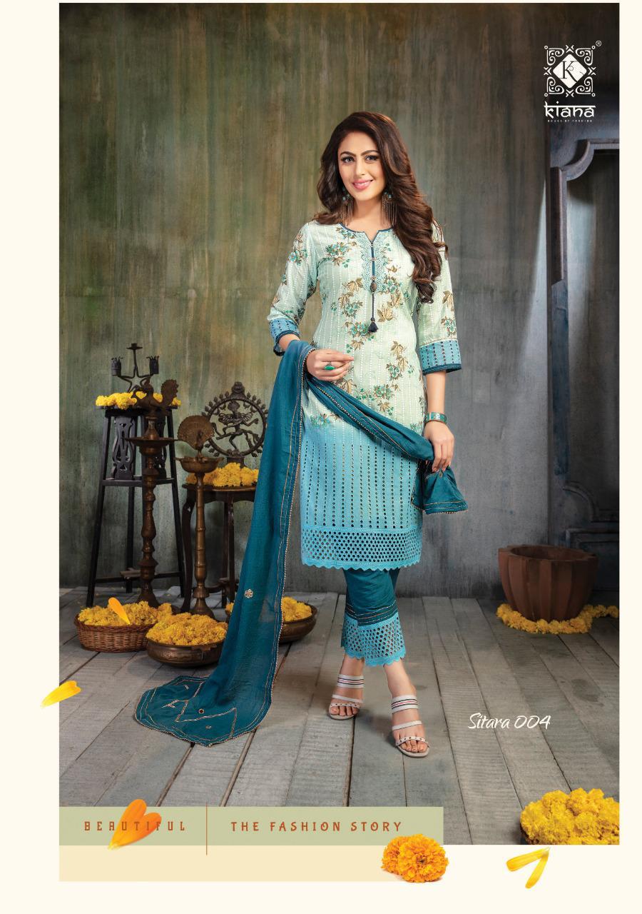 👑Kiana ®️👑 *House of fashion * 👗Catalogue Name- New series 💫 SITARA 💫 👗Fabrics :-Schiffli top with digital print with stylish flex pant / sharara with stylish work accessories dupatta 🎗Size :- M ,L, XL, XXL, 3XL, ☣Designs :- 8 pcs Rate- 1140 per pcs . Set to set . Delivery 4-5 days Note:-colors may be very slightly due to light effect during photography |