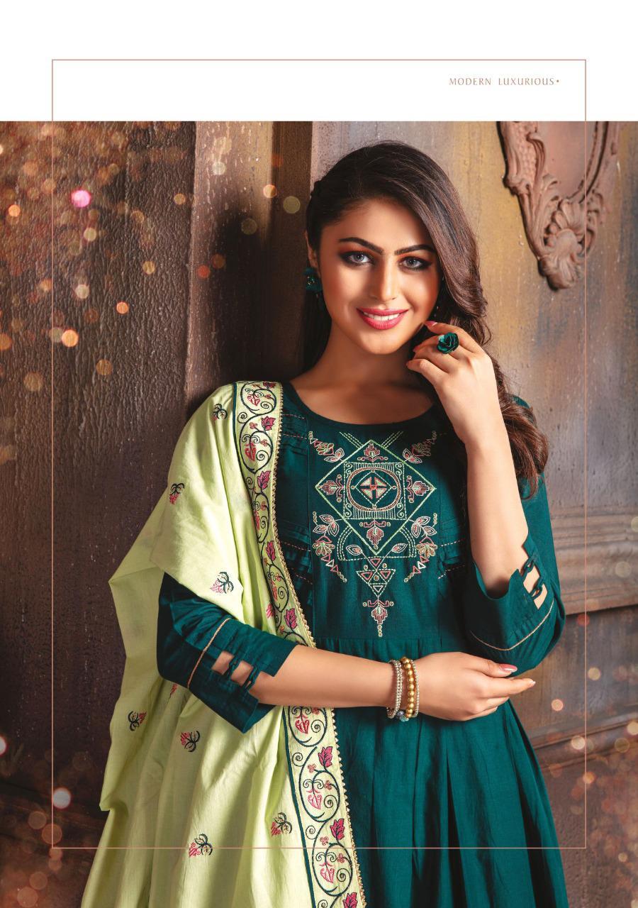 Kiana Presents Chunari Cotton With Embroidery Work Long Kurti With Dupatta