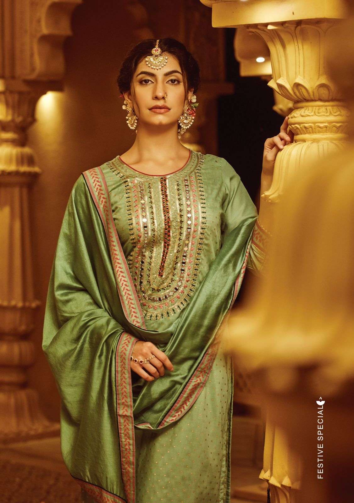 👑Kiana ®️👑 Catalogue Name- 👗Top :- Maslin Slub, Original Mirror work, Khatli work, Handwork, embroidery work, Printed Bottom:- Maslin Slub, Printed less work, pents style Dupatta:- Chanderi Four side printed less patti work and extra Accessories 🎗Size :- M(19) L(20) XL(21) XXL(22) ☣Designs :- 6 pcs Rate :- 1190/- |
