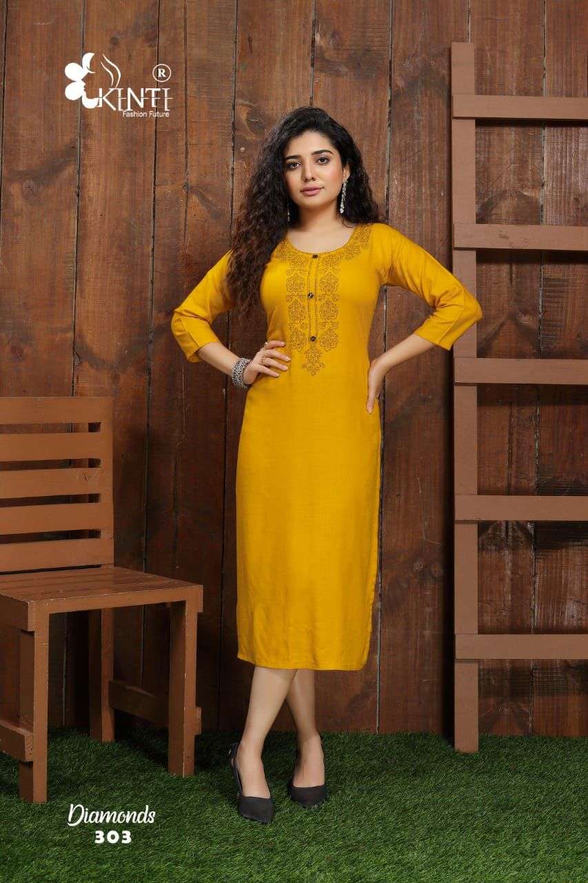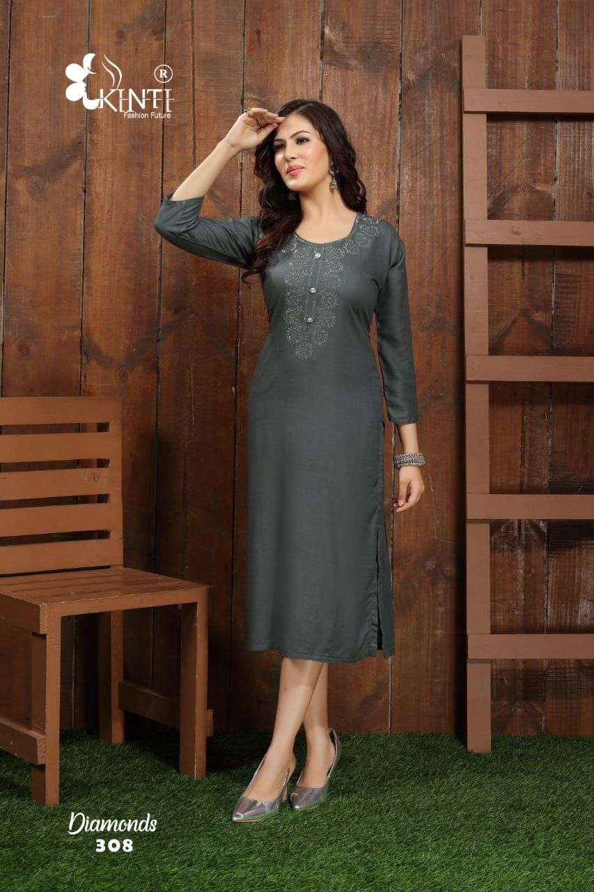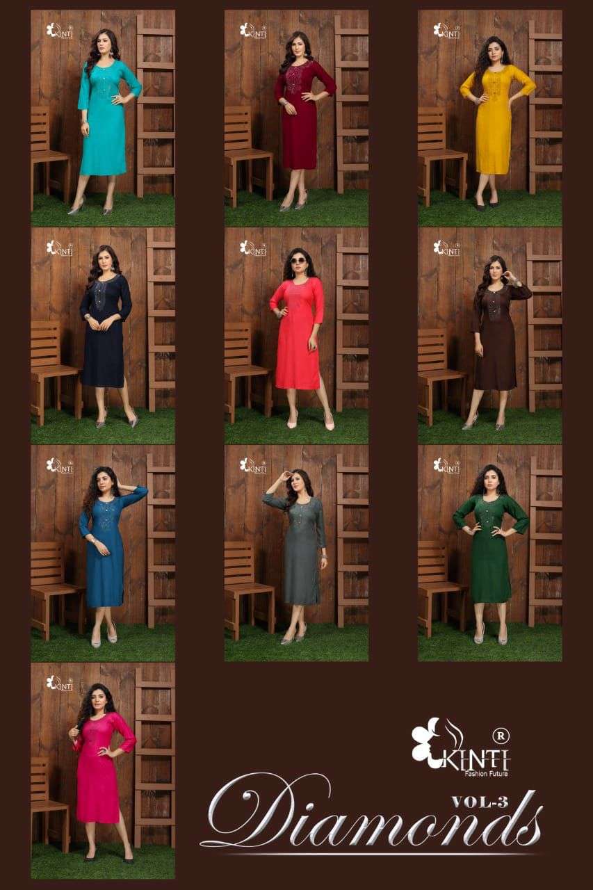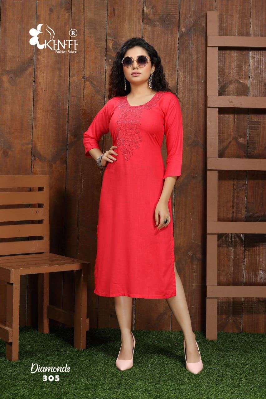Diamonds 3 💎💎 by KINTI ®️ Fabric. : Rayon slub Style. : Straight Lenght. 45 approx Sizes : M L XL XXL Designs : 10 rate :- 310/- + GST |