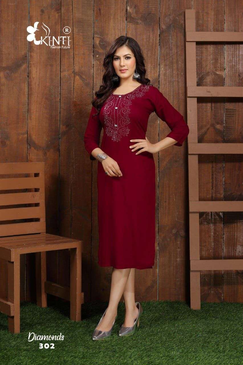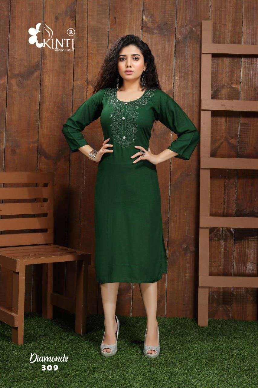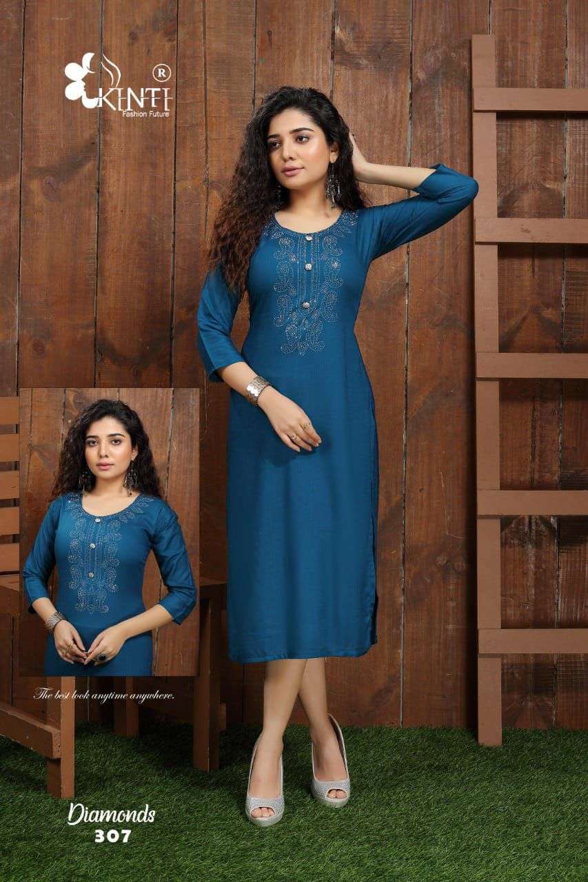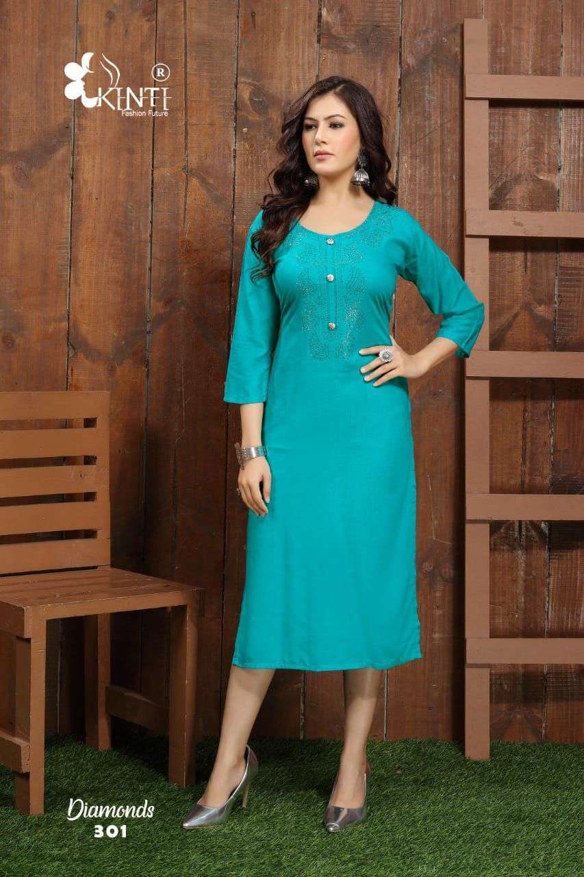 Diamonds 3 💎💎 by KINTI ®️ Fabric. : Rayon slub Style. : Straight Lenght. 45 approx Sizes : M L XL XXL Designs : 10 rate :- 310/- + GST |