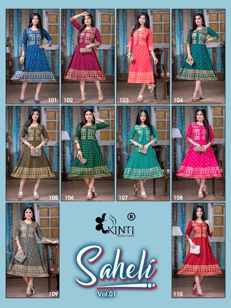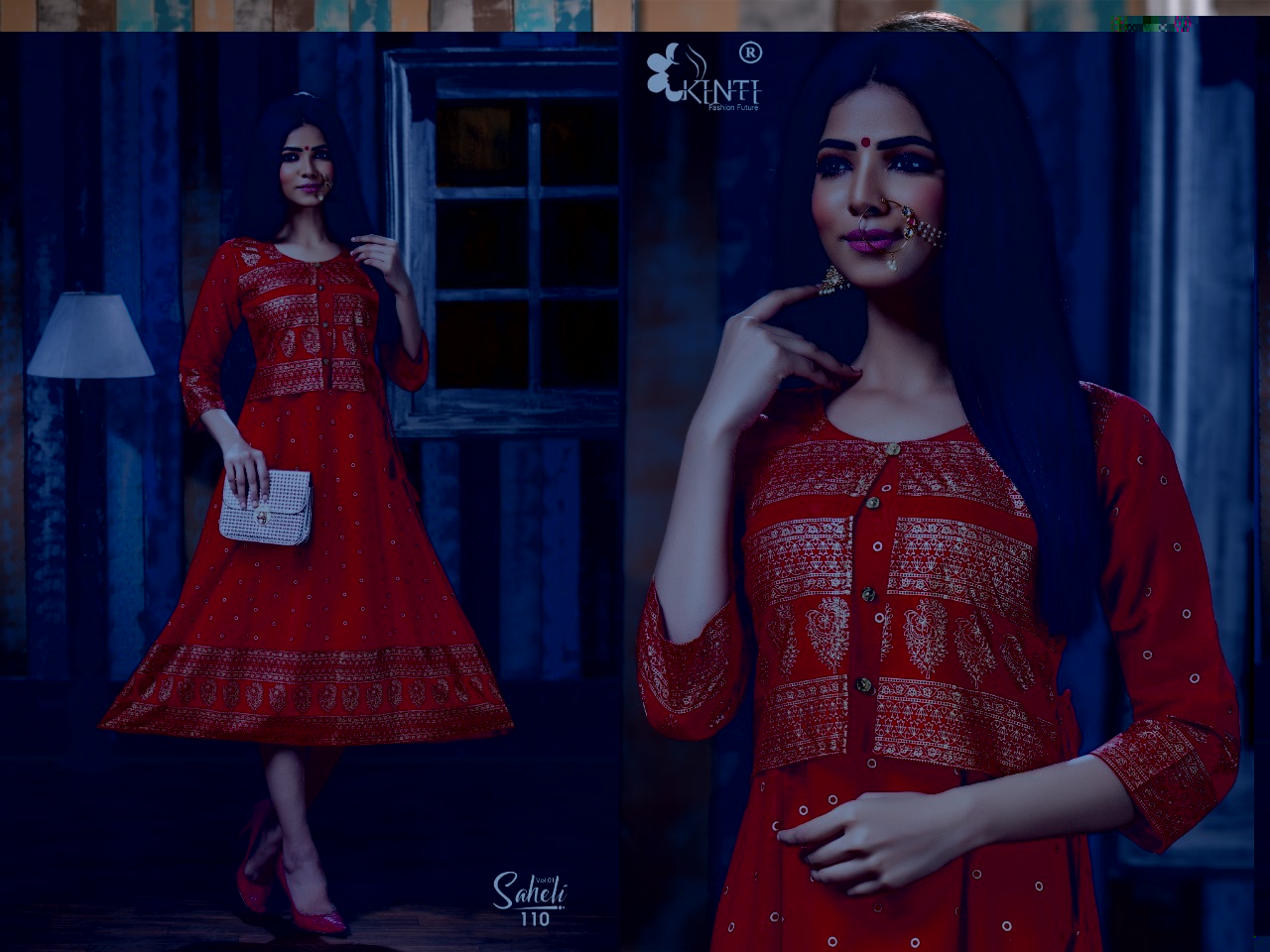 Kinti Launch Saheli Rayon Anarkali Style Kurti With Attached Jacket Pattern
