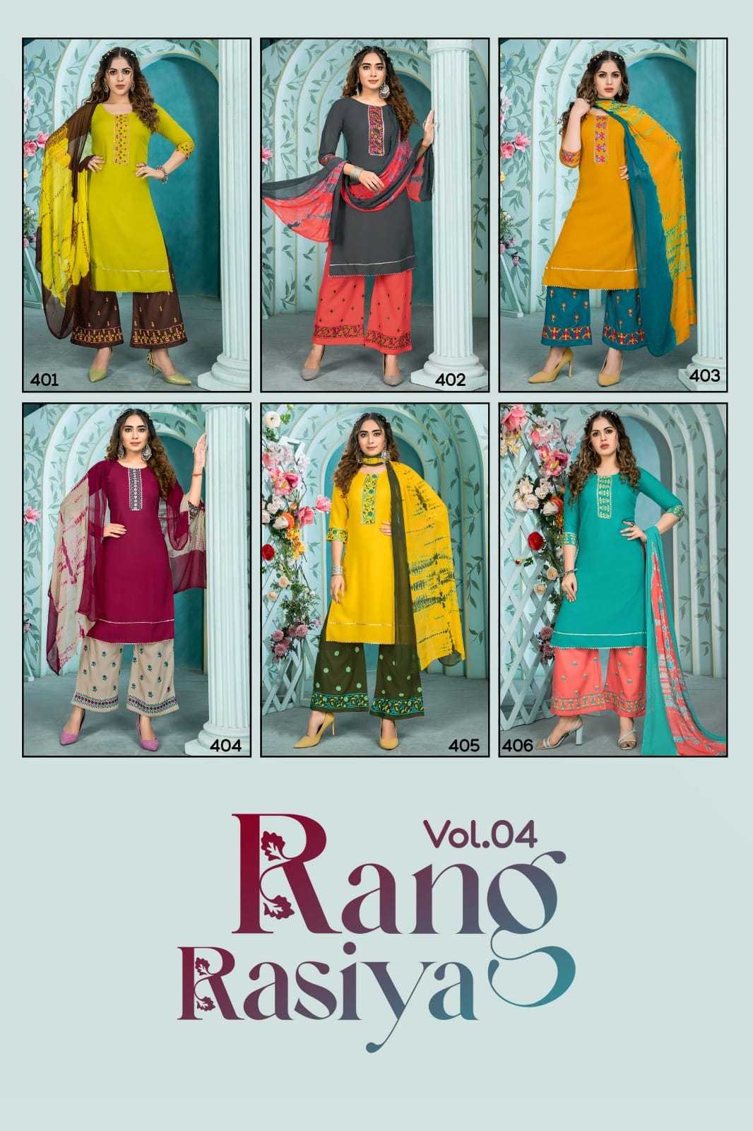 kinti rang rasiya vol 4 beautiful fullstitch fancy kurti plazzo dupatta set