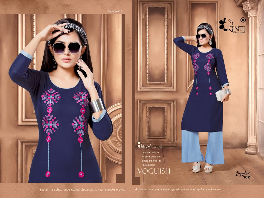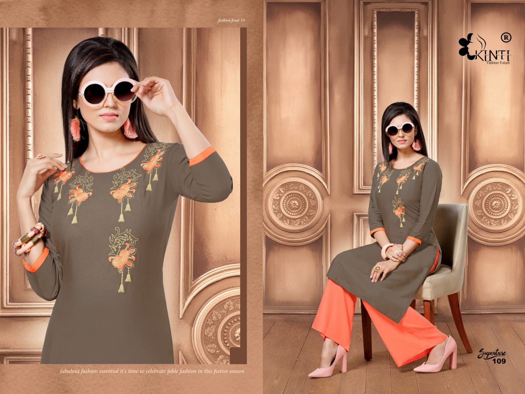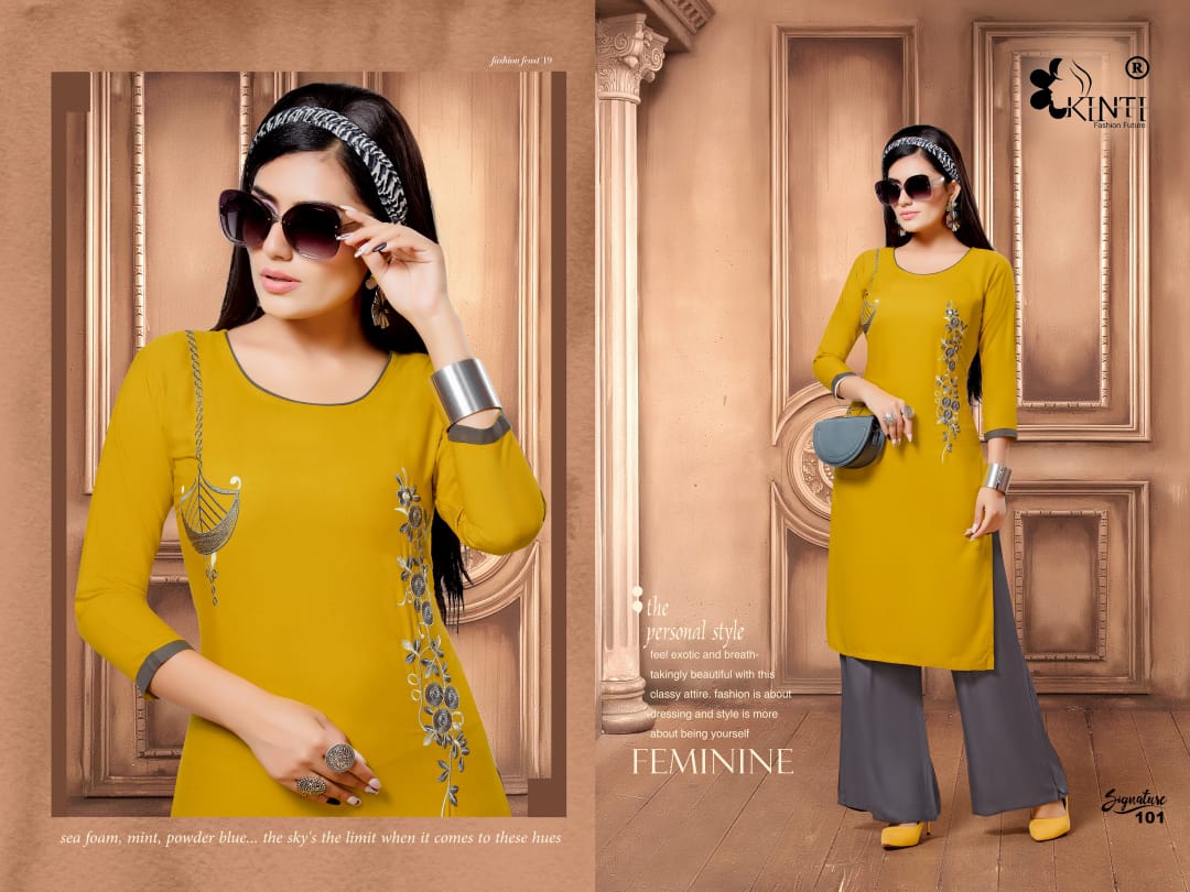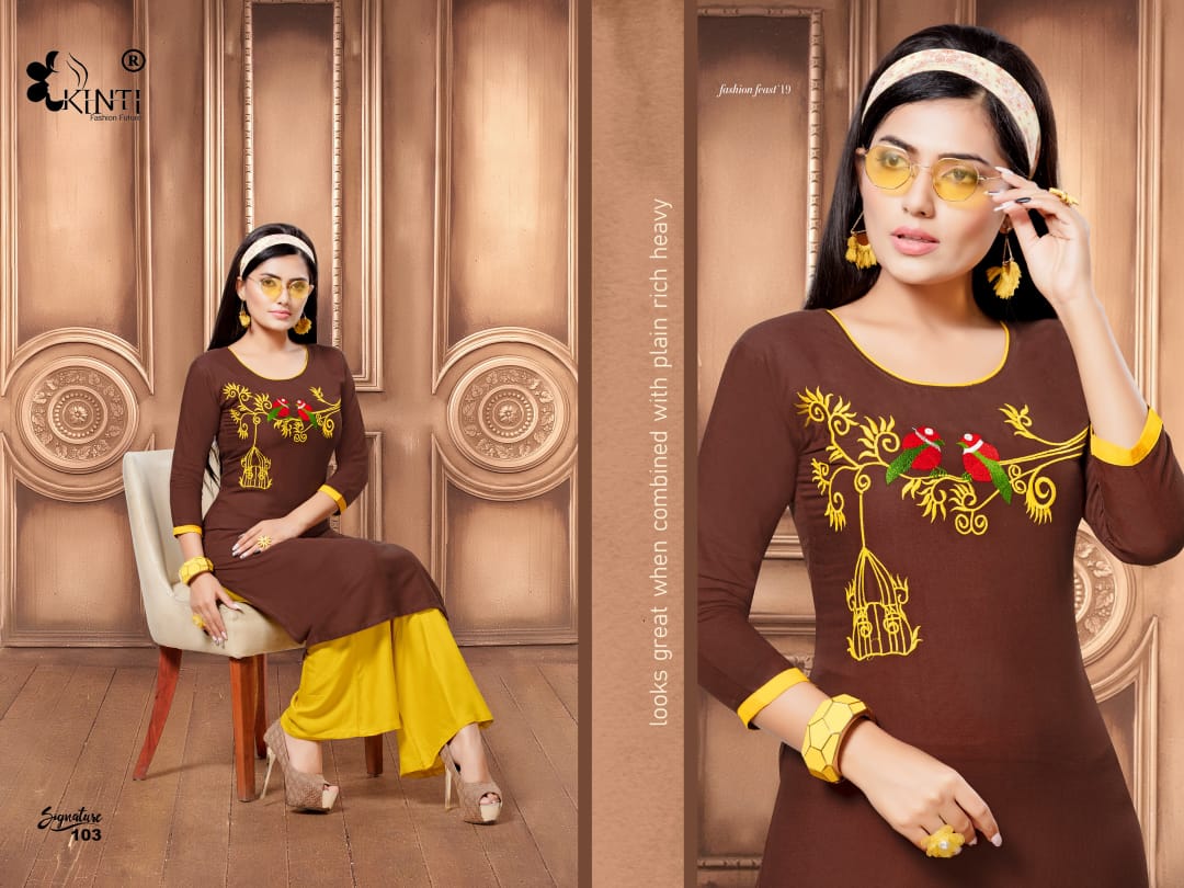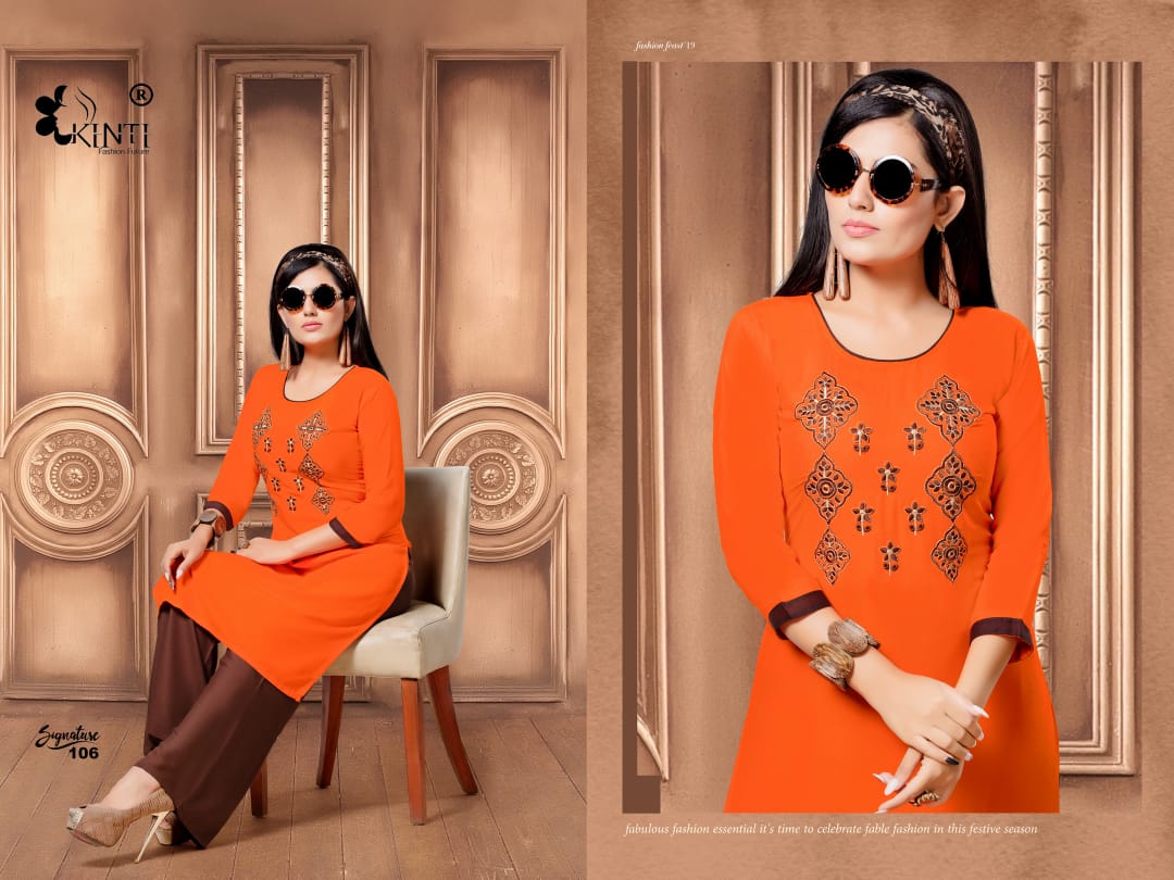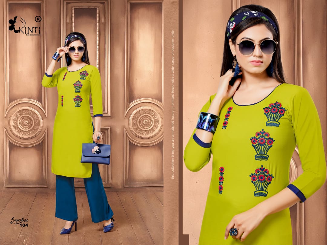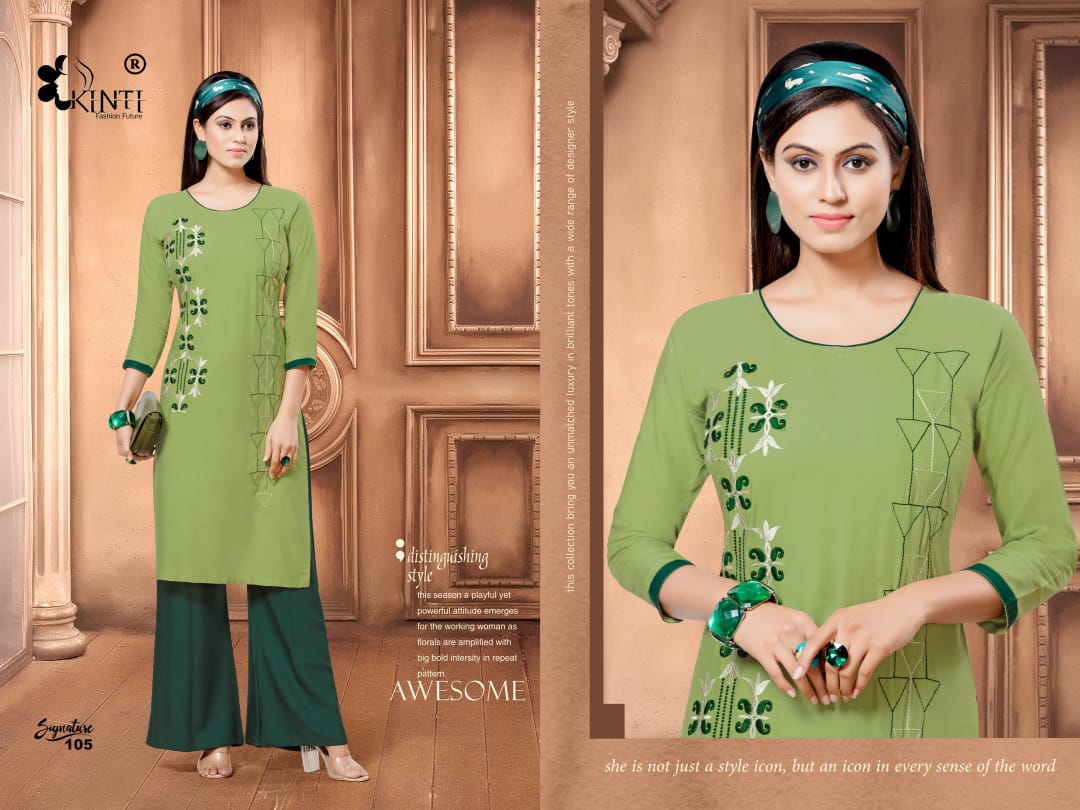 Kinti Signature Rayon Fancy Embroidery Work Top And Plazzo Catlog