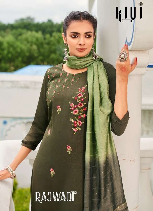 📌 KIVI by Kajree has launched Catalog name: RAJWADI 🔸 Fabric Details 🔸 ▪Top:- Silk With Embroidery Work. ◼️Pant:- Parampara Silk With Embroidery Work. ◼️Dupatta:- Fancy Silk Dupatta.