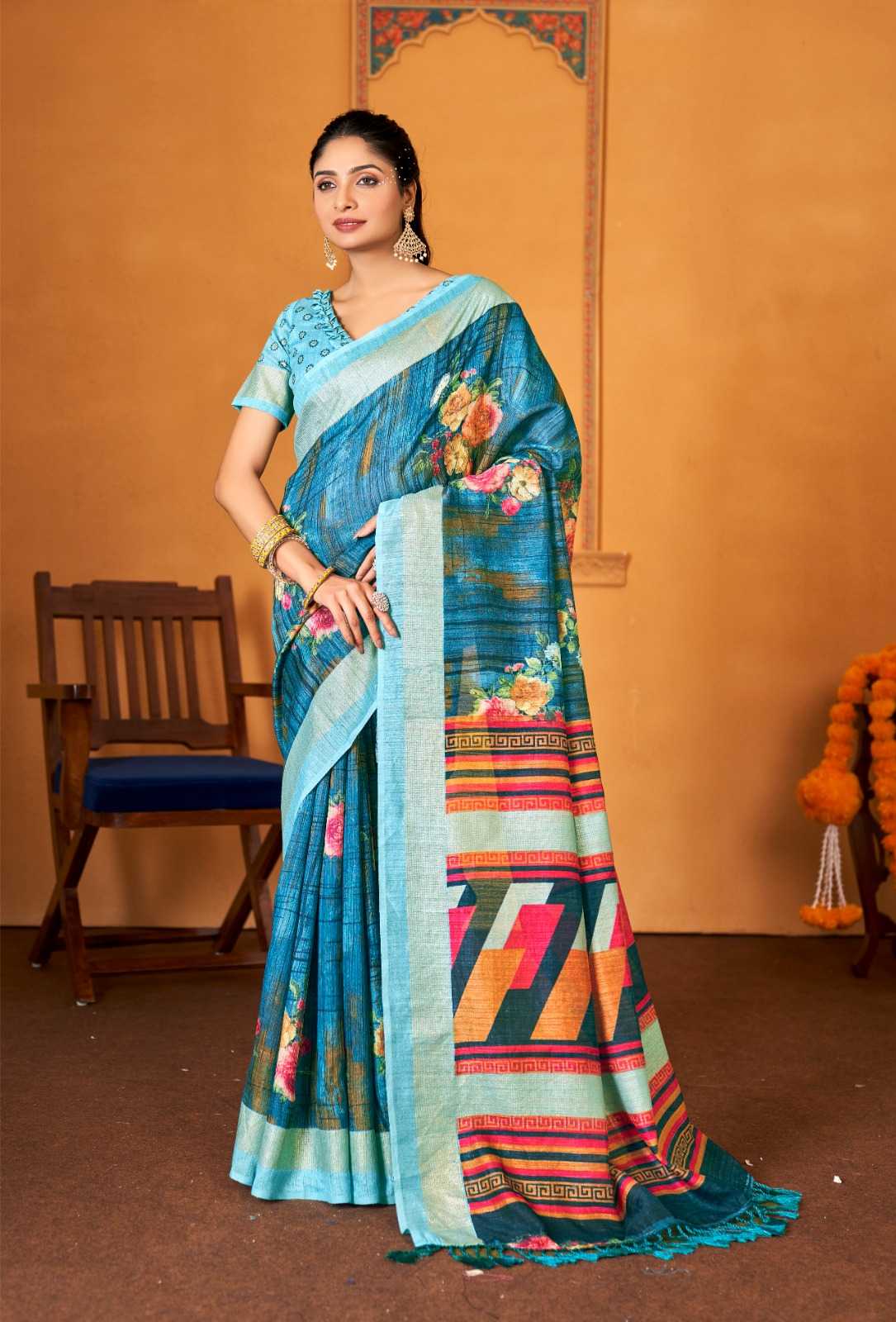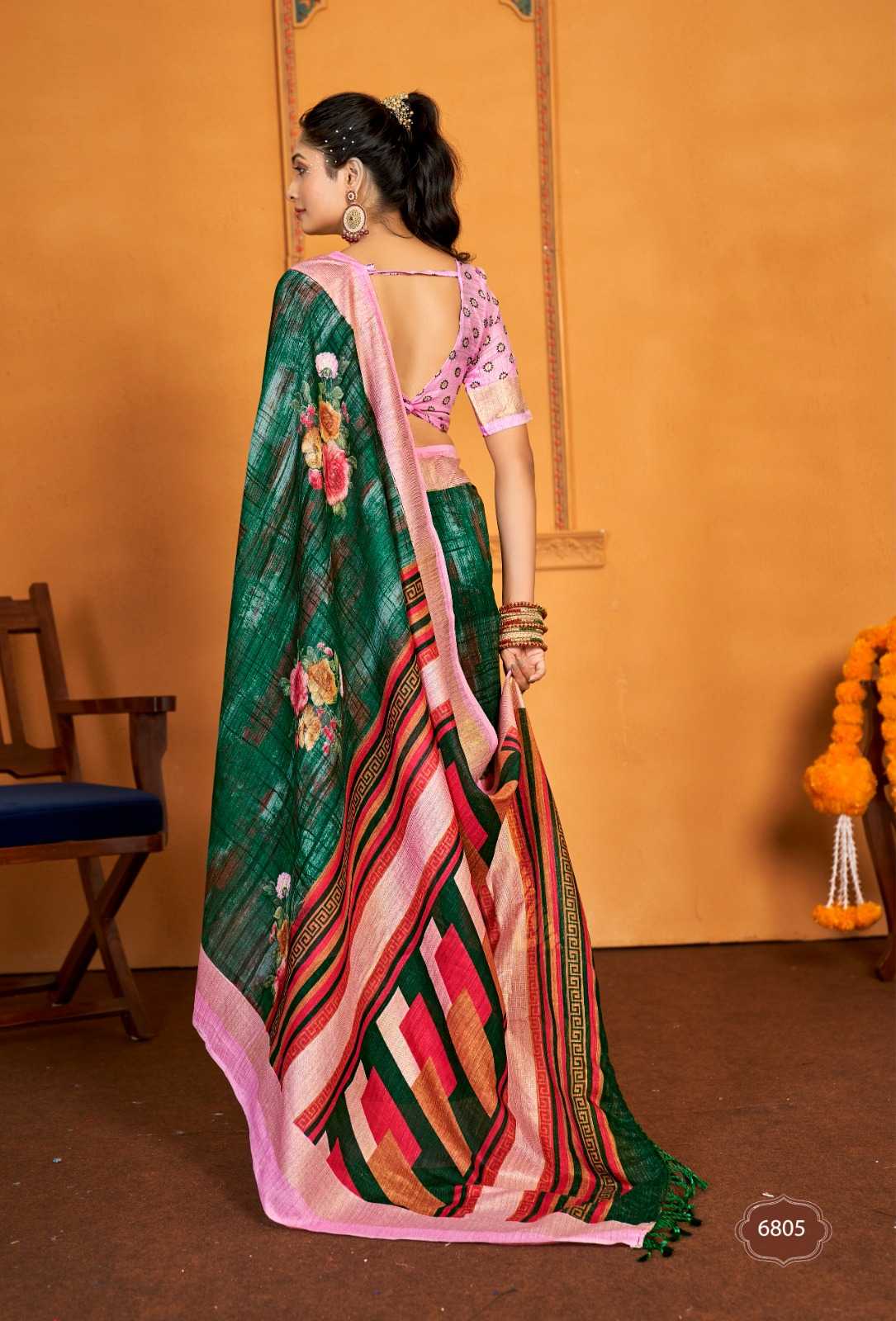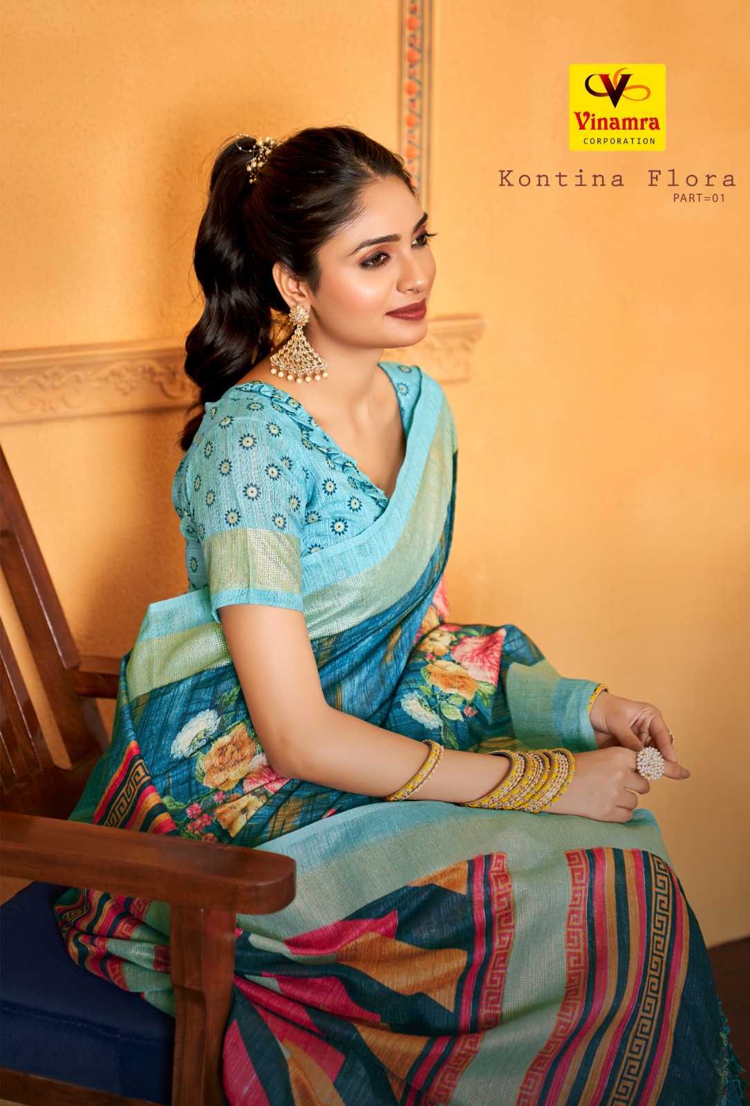 kontina flora vol 1 by vinamra stylish green silk foii prints saree exports