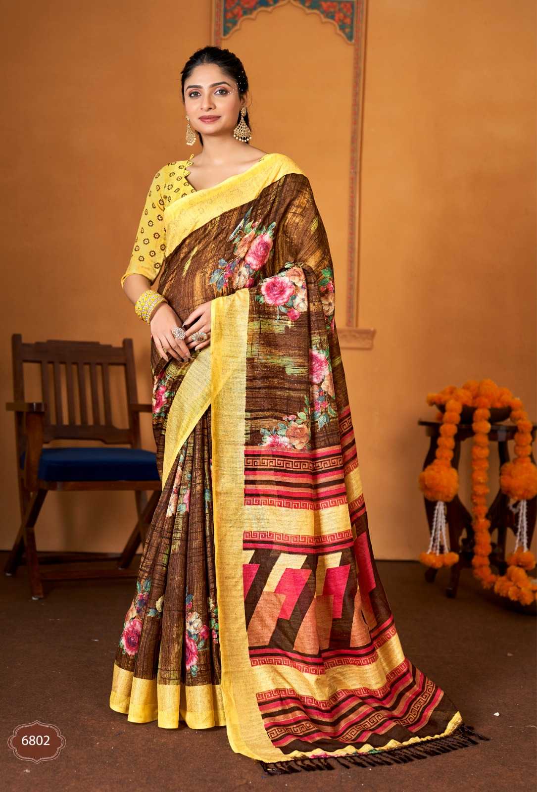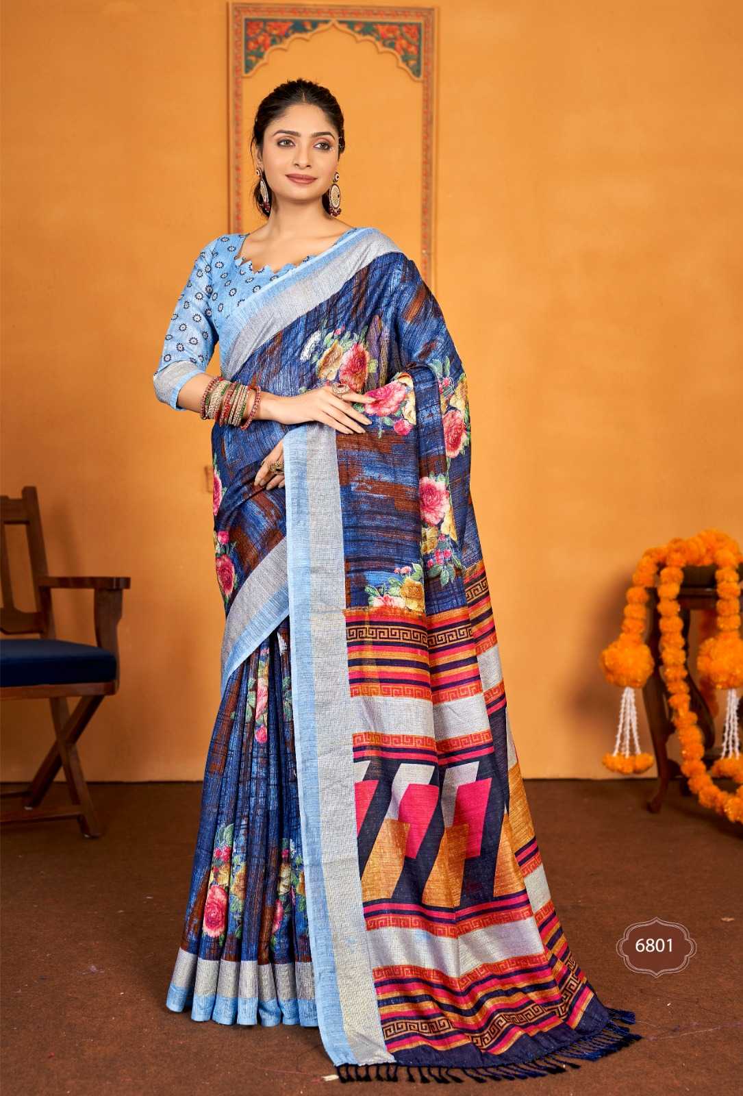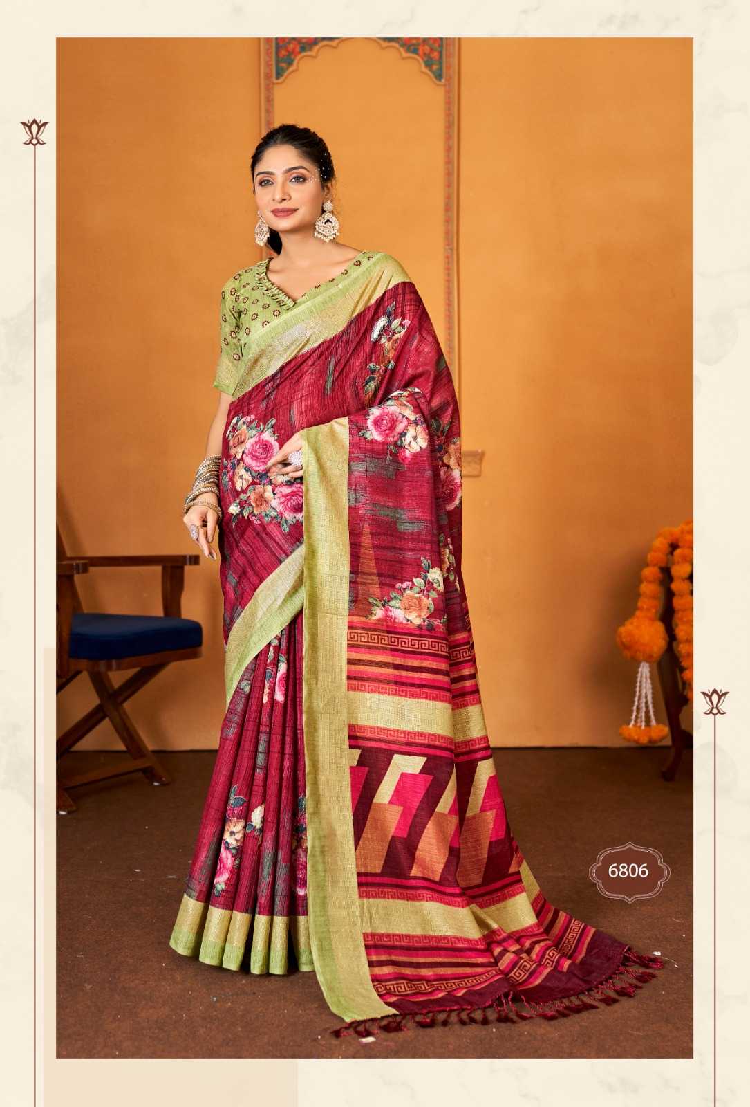 kontina flora vol 1 by vinamra stylish green silk foii prints saree exports