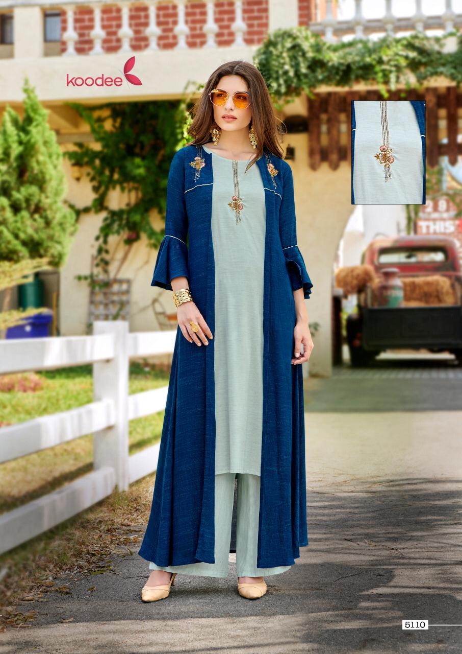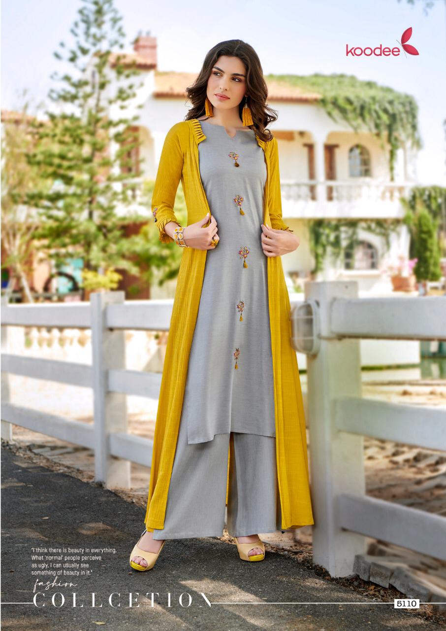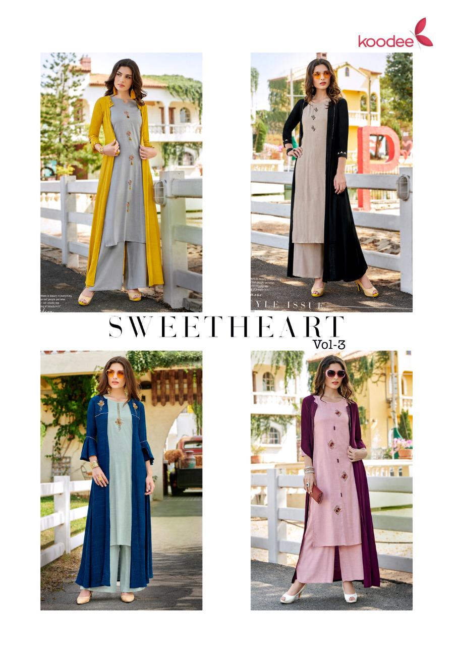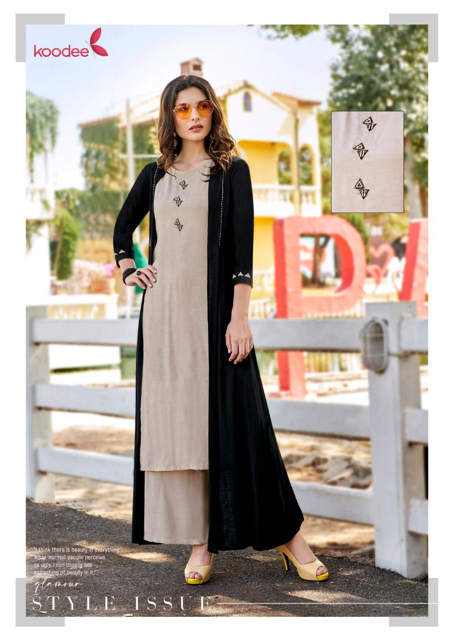 Koodee Presenting Sweetheart Vol 3 Milance Stylish Kurti With Plazzo And Shrug Pair