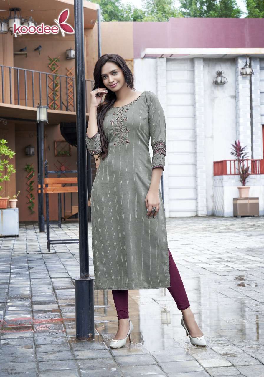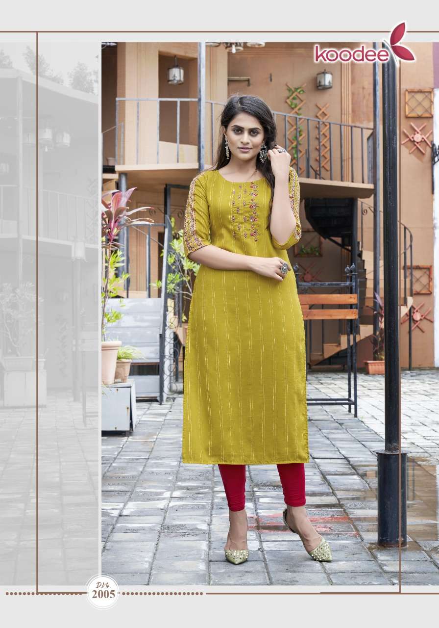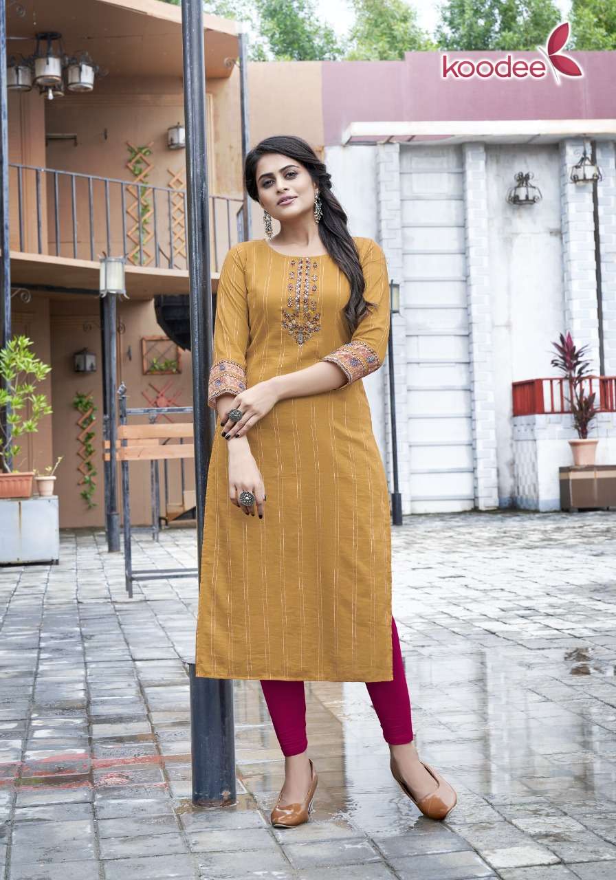 LAUNCHING CATALOGE Only Straight Kurti With Khatli Work & Heavy Sleeve Concept Brand Name : KOODEE Catalog : - Simran-1 Designs : 6 Fabric:- Work: Embroidery & Khatli Work Size : S(36),M(38), L(40), XL(42), 2XL(44), 3XL(46) |