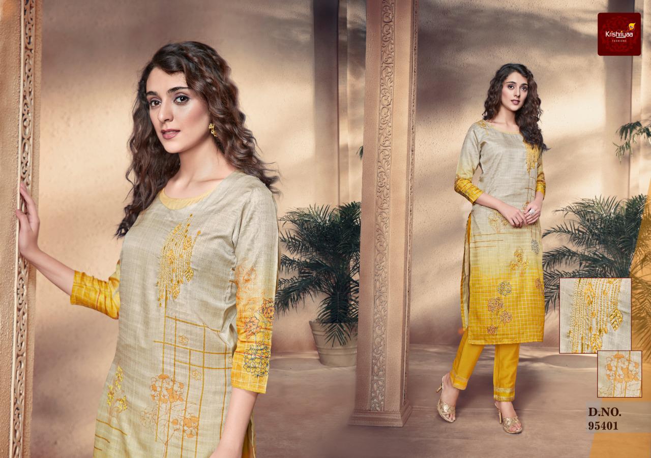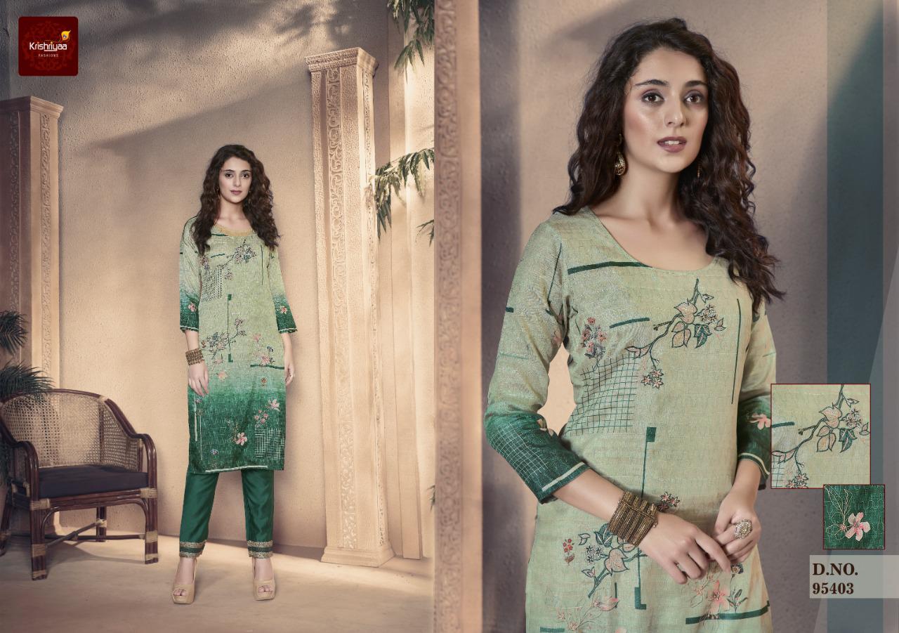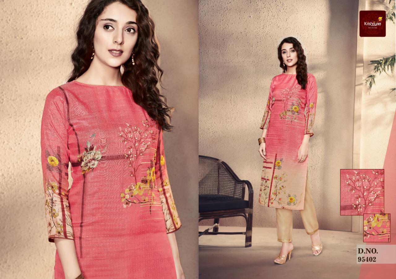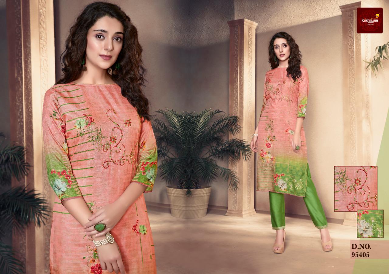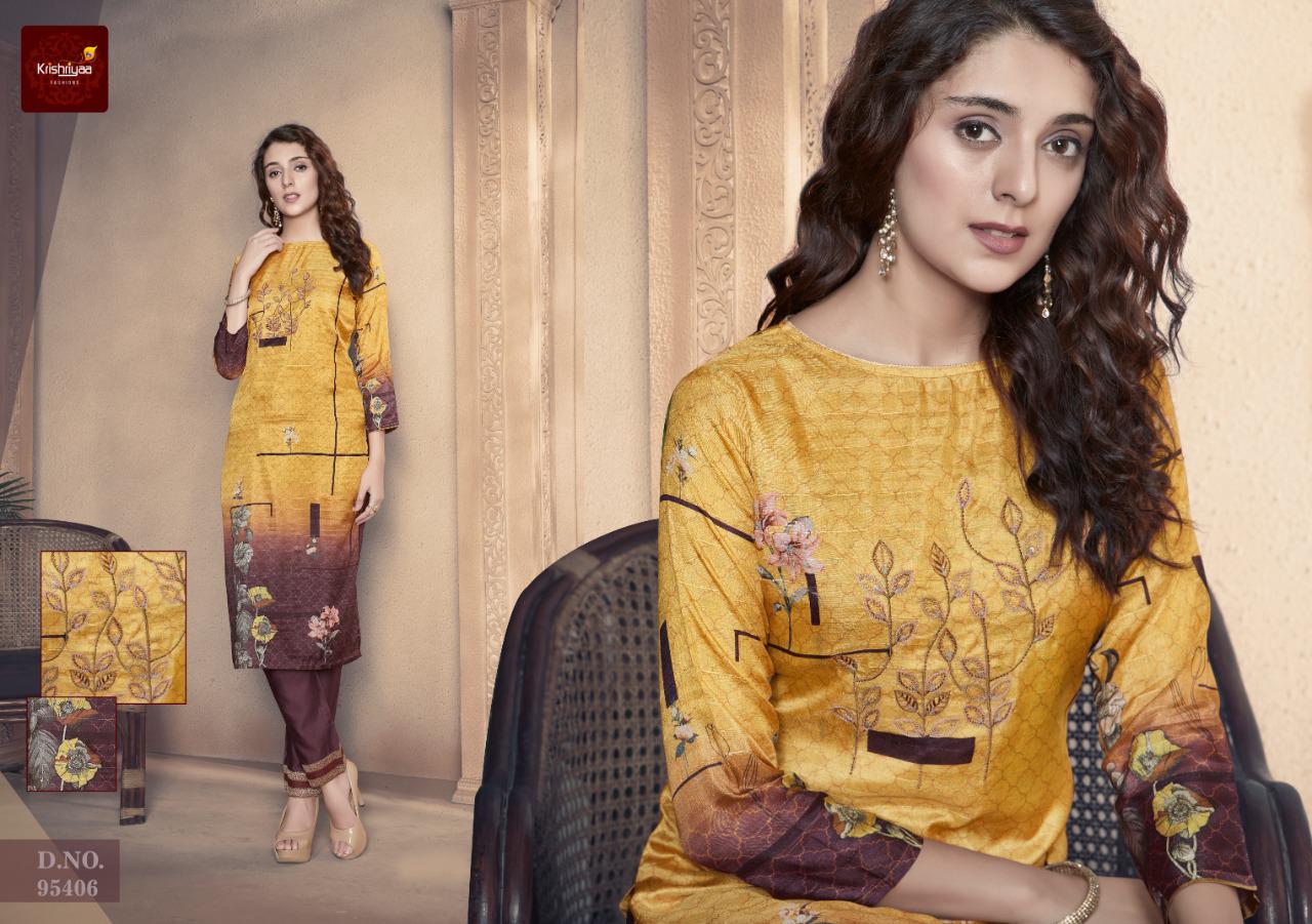 Krishriyaa Launch Elegance Silk Digital Printed Kurti With Pant Wholesaler