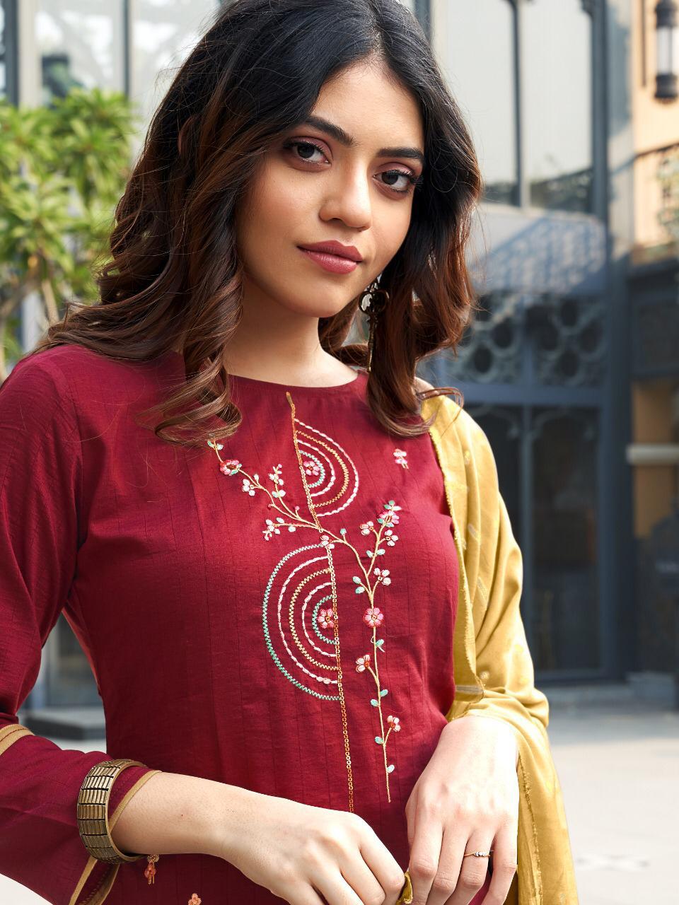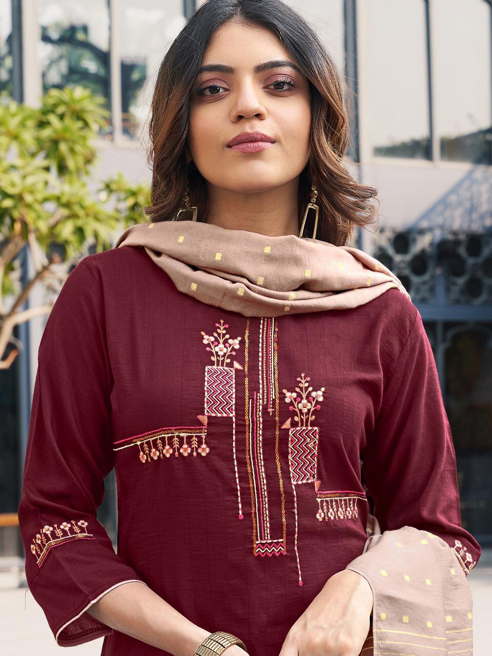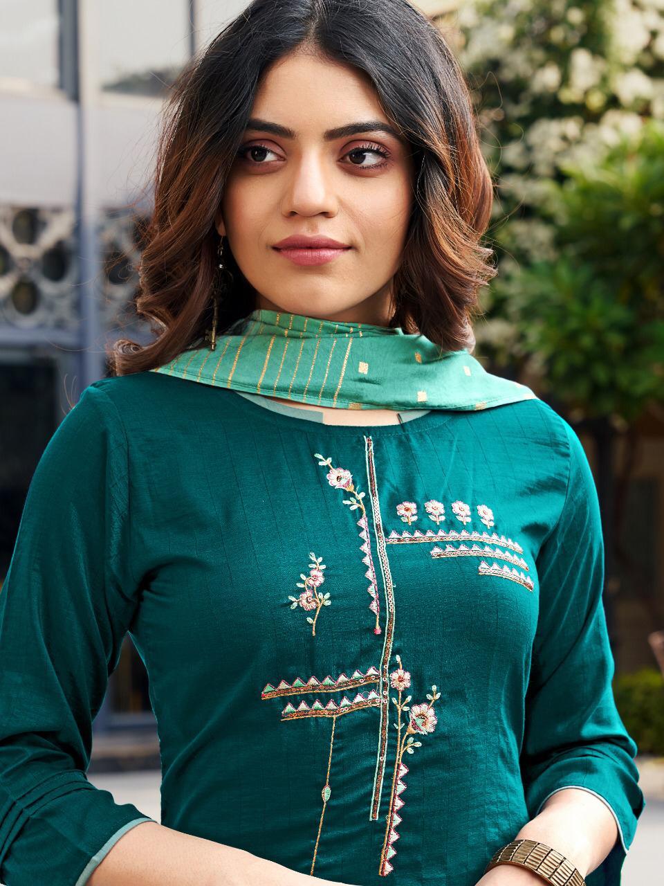 Catalog : Aarohi Vol 3 Designs : 6 Fabric:- Top :- Chinon lining with Embroidery Work Bottom :- Chinon Duppata :- Pure Fancy Viscose ( 2.20 mtr cut & 34 Panna) Size : M(38), L(40), XL(42), 2XL(44), 3XL(46) Rate :- 845/- Set to set Dispatch :- Within 2-3 Days |