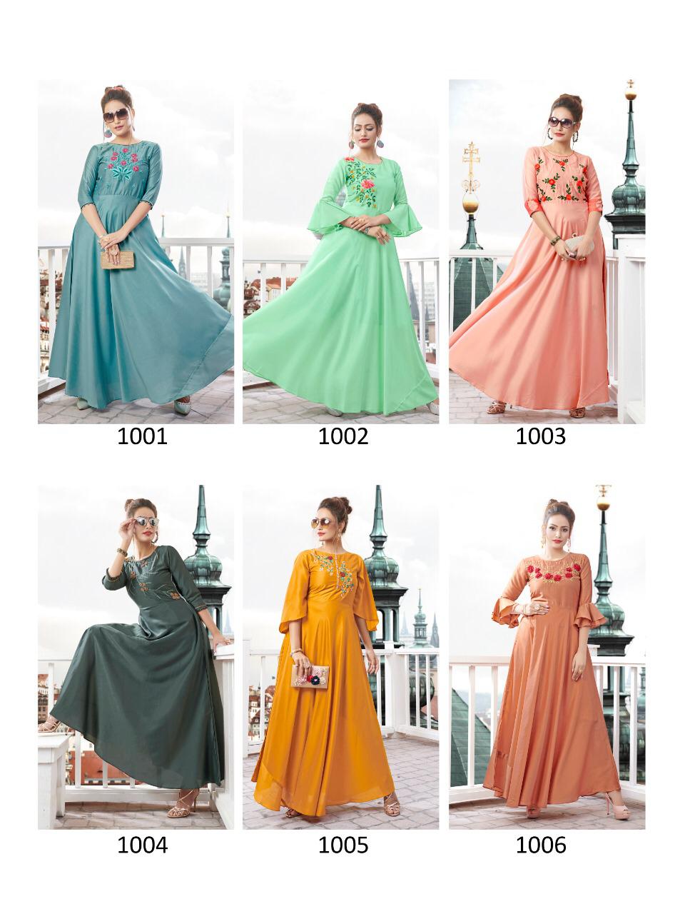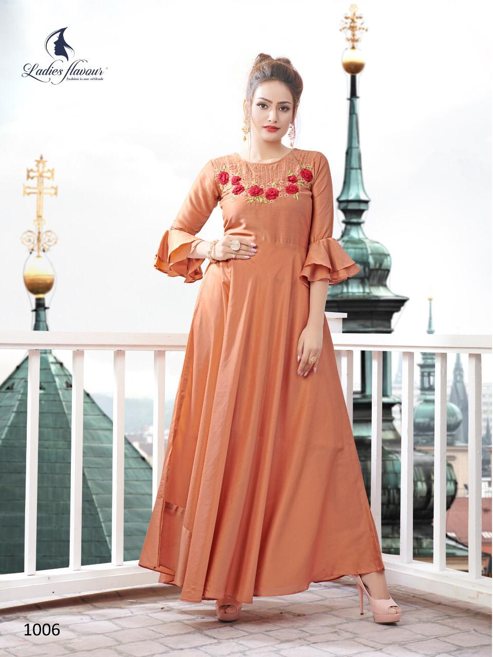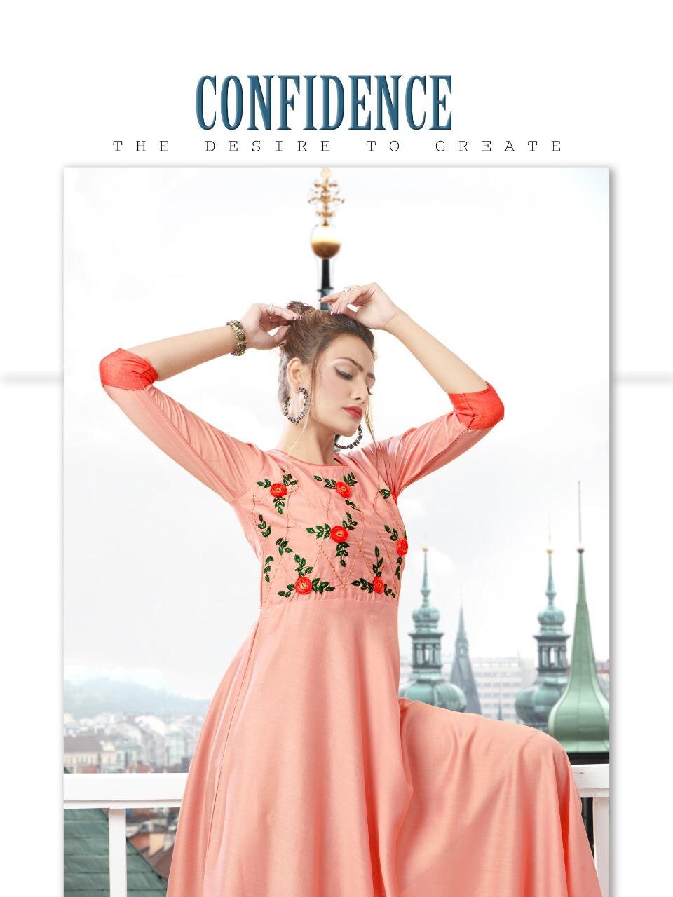 Ladies Flavour Diss Miss Maslin Embroidery Work Gown Style Kurti Online Shopping