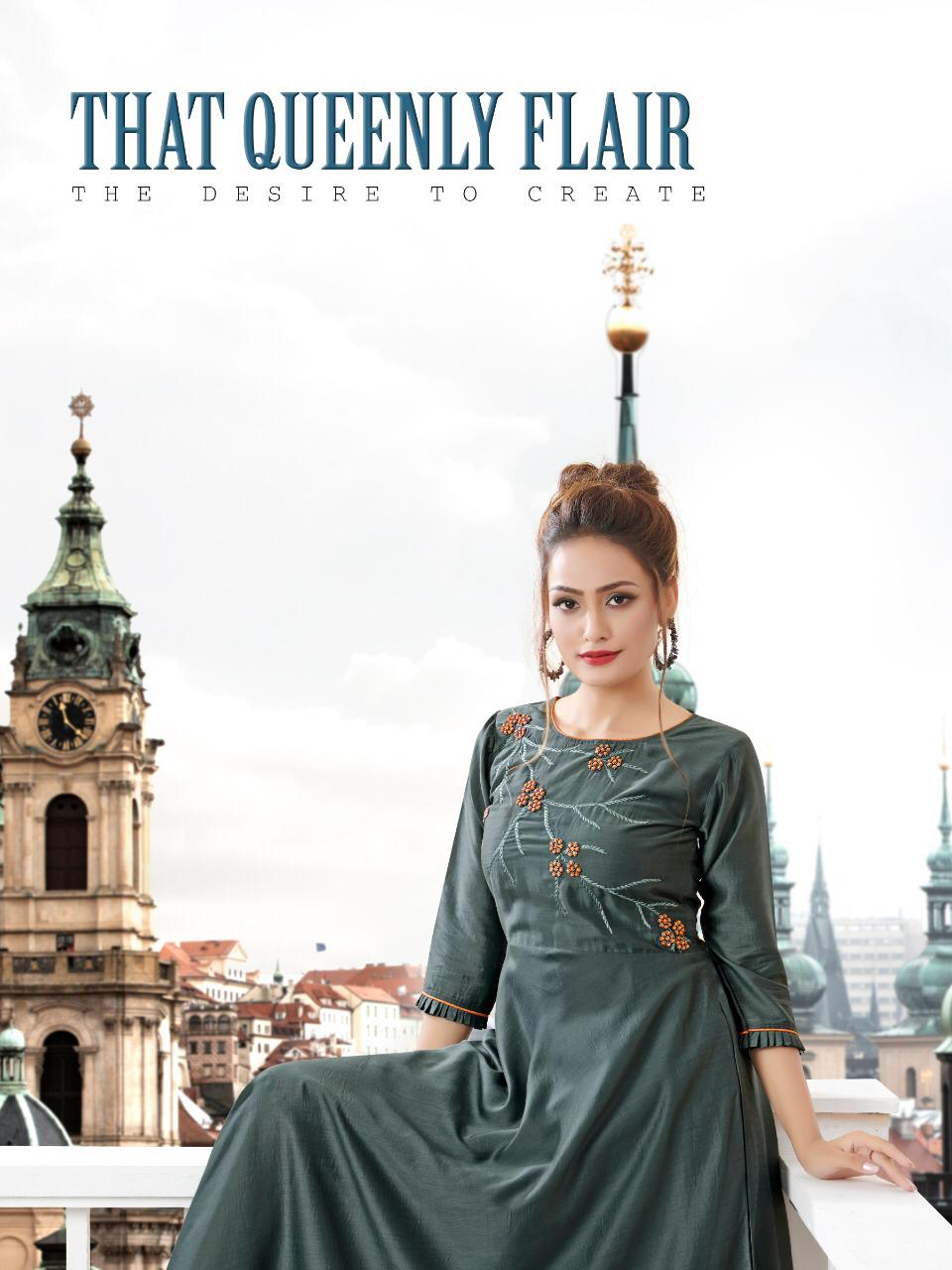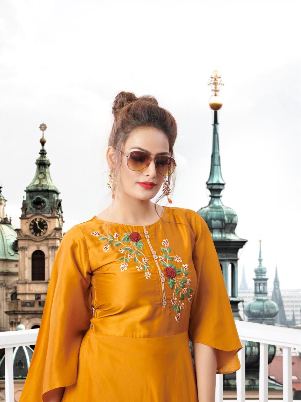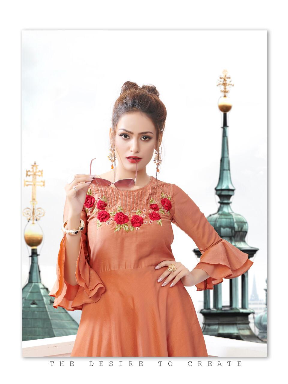 Ladies Flavour Diss Miss Maslin Embroidery Work Gown Style Kurti Online Shopping