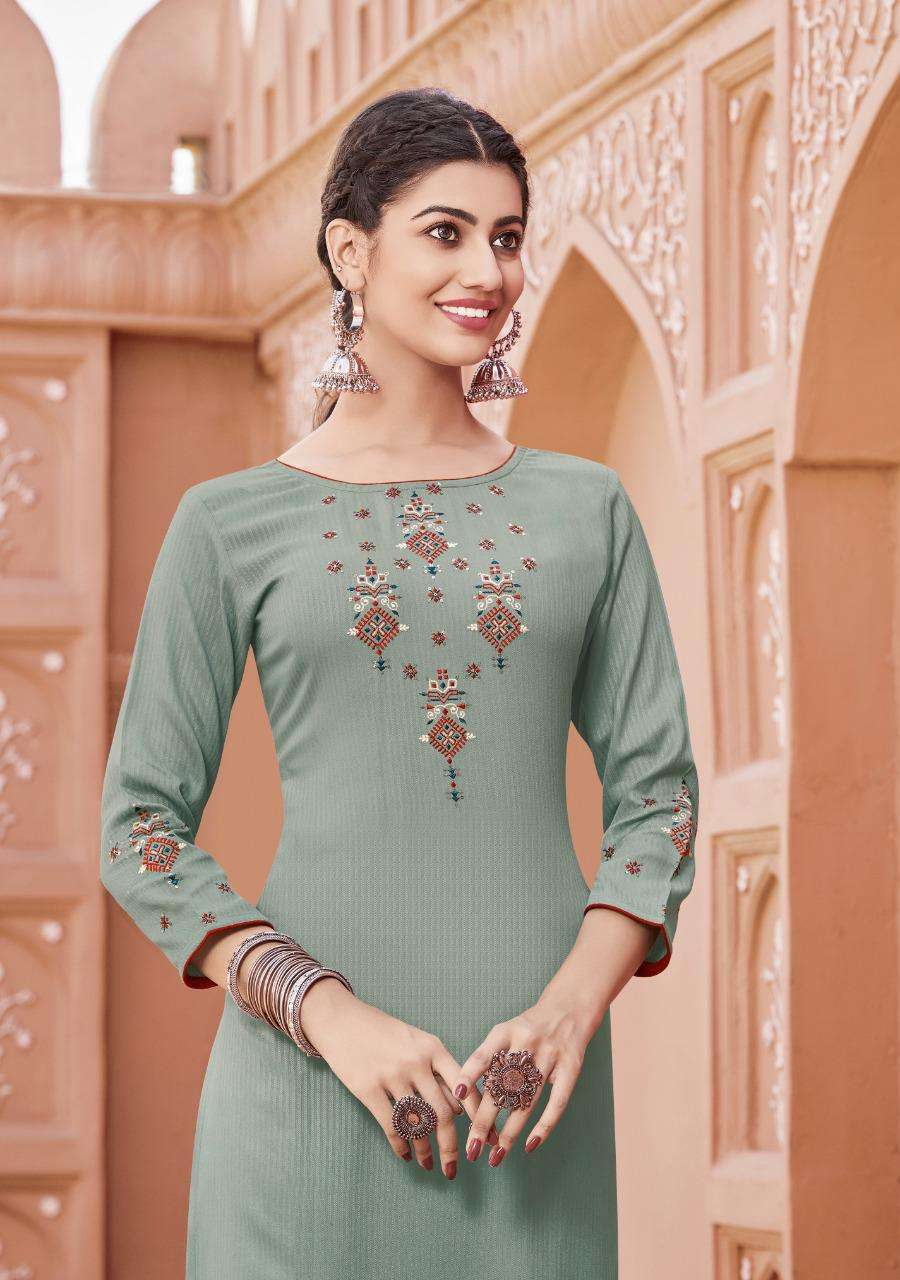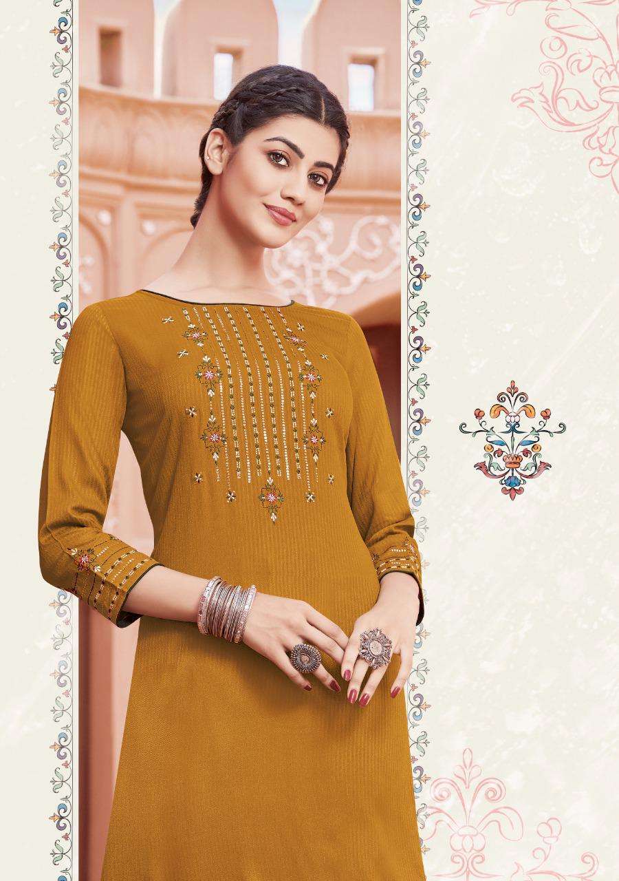 Brand Name : Ladies Flavour Catalog : Saanvi Vol 4 Design : 6 Fabric :- Bottom:- Rayon Slub Lycra With Embroidery Work Size : S(36)M(38), L(40), XL(42), 2XL(44), 3XL(46),4XL(48) Disptach :- Within 3-4 days |
