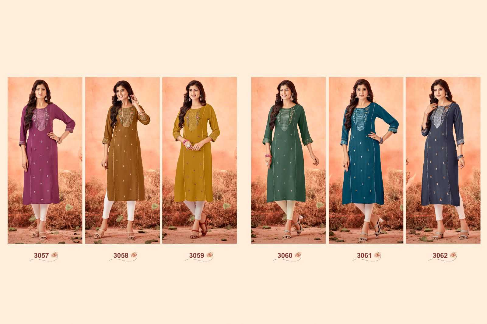 ladies flavour serena vol 10 rayon embroidery work full stitch long kurti