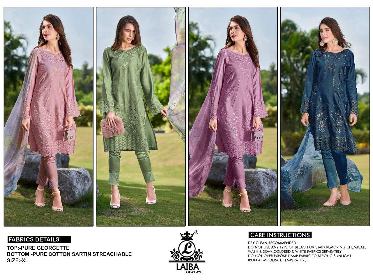 laiba am vol 124 georgette elegant look embroidery readymade pakistani suits