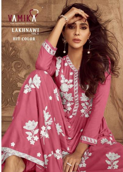 lakhnavi vol 4 hit color by vamika readymade rayon hit design plazzo 3pc dress
