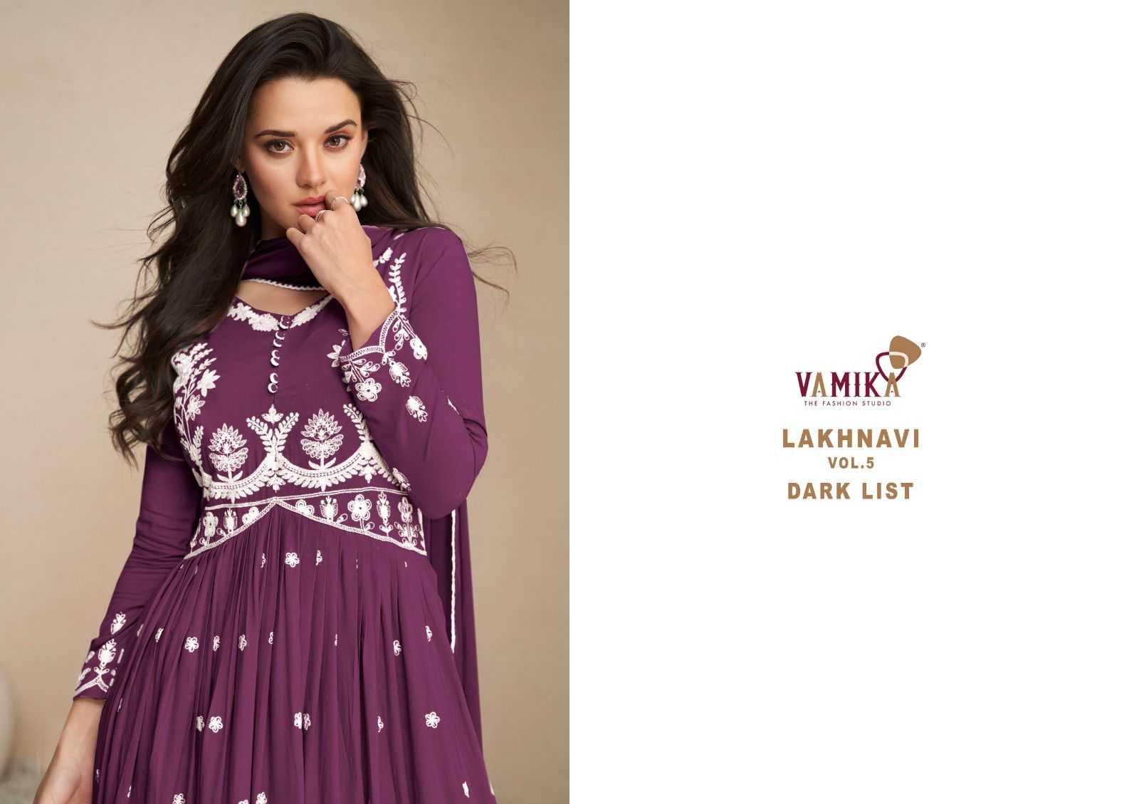 lakhnavi vol 5 dark list by vamika rayon palazzo style fashionable fullstitch 3pcs dress