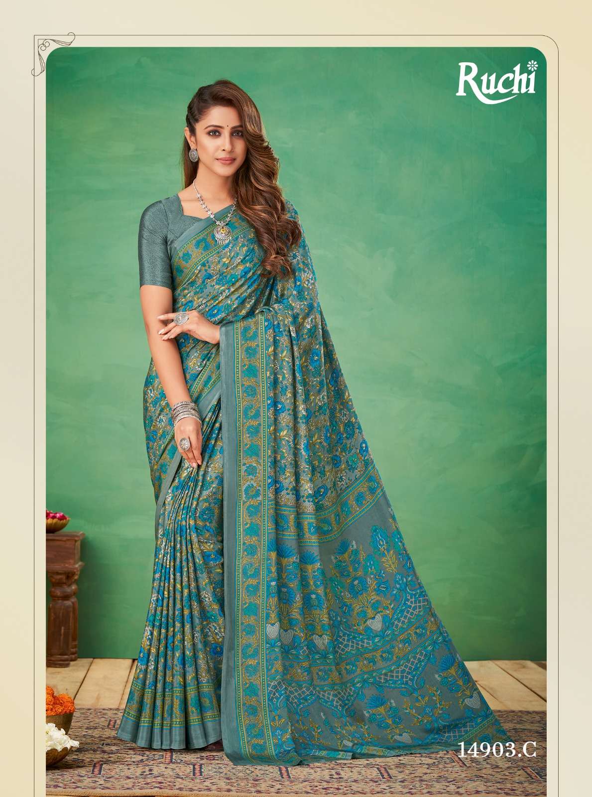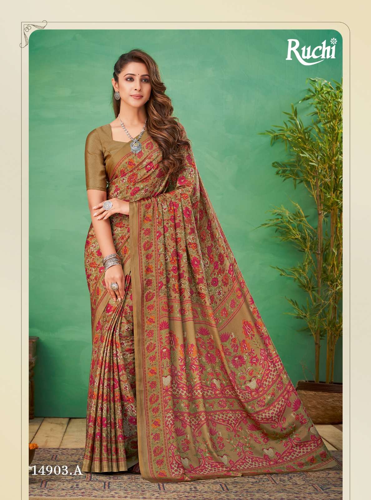 latest sarees vivanta silk hits 11 by ruchi sarees crape silk printed saree