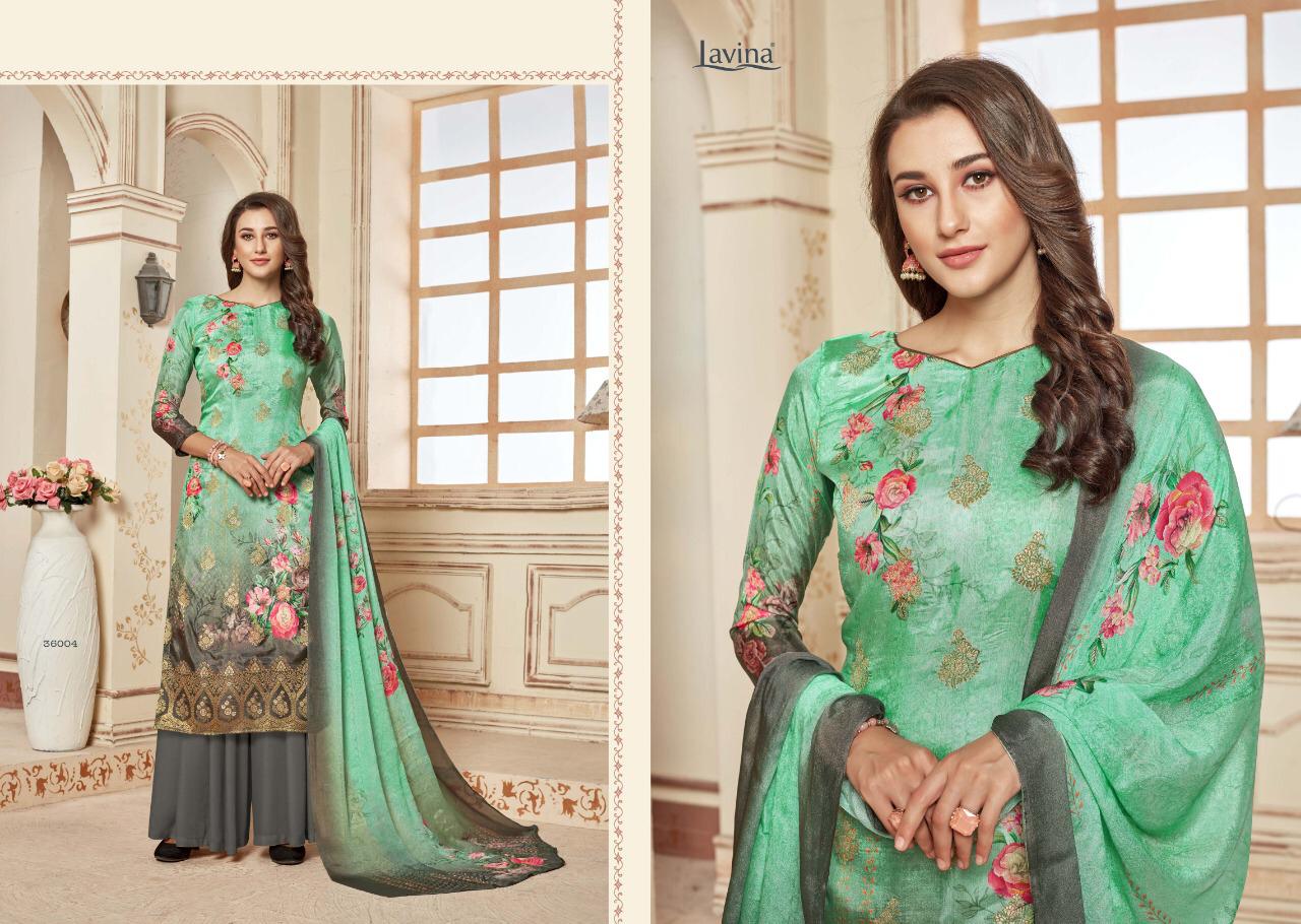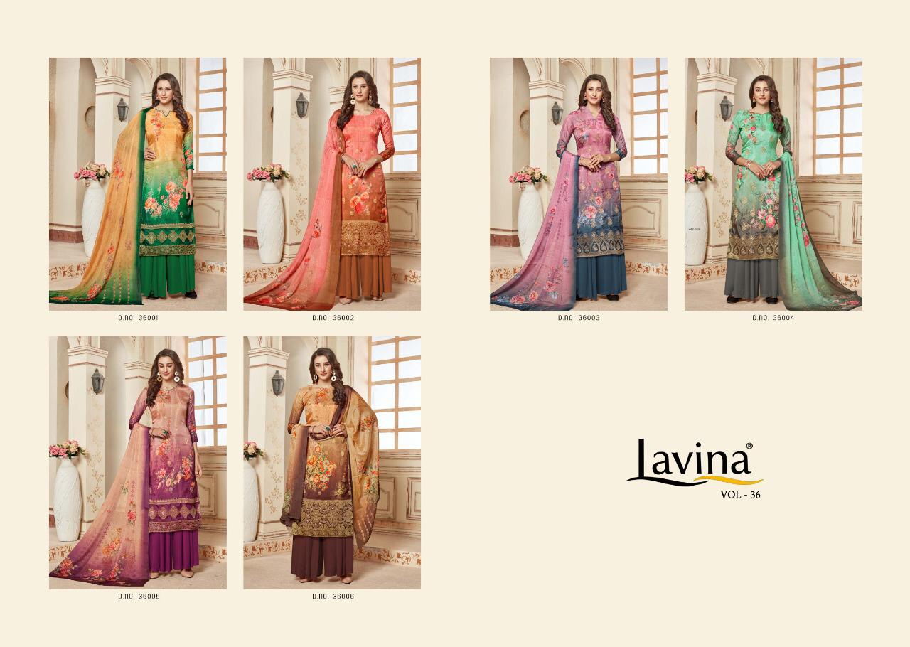 Lavina 36 Top pure dola silk with digital prints Bottom innar pure sentoon Duptta pure chinon digital prints Rate 2095 per Pcs : Set to set : GST 5 Percent Extra. Dispatch date 01/02/2020 |
