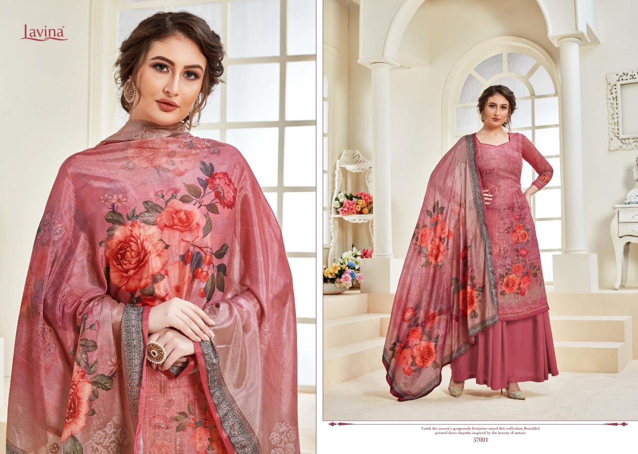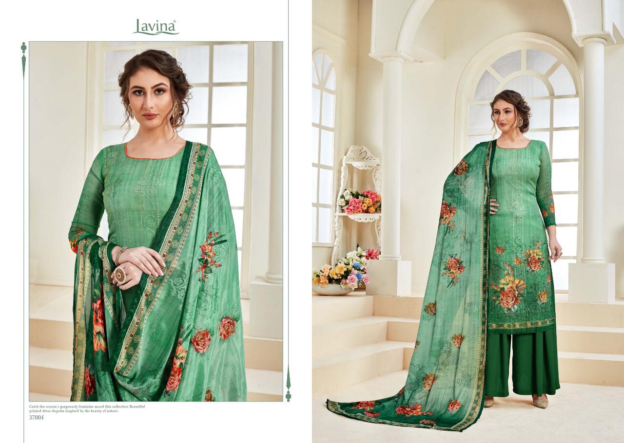 Lavina 37 by Lavina Top pure georgette Seqvance with Emboidery Bottom innar sentoon Duptta chinon Emboidery with digital prints Rate 1795 per Pcs . Set to set. GST 5 Percent Extra Dispatch date 06/02/2020 |
