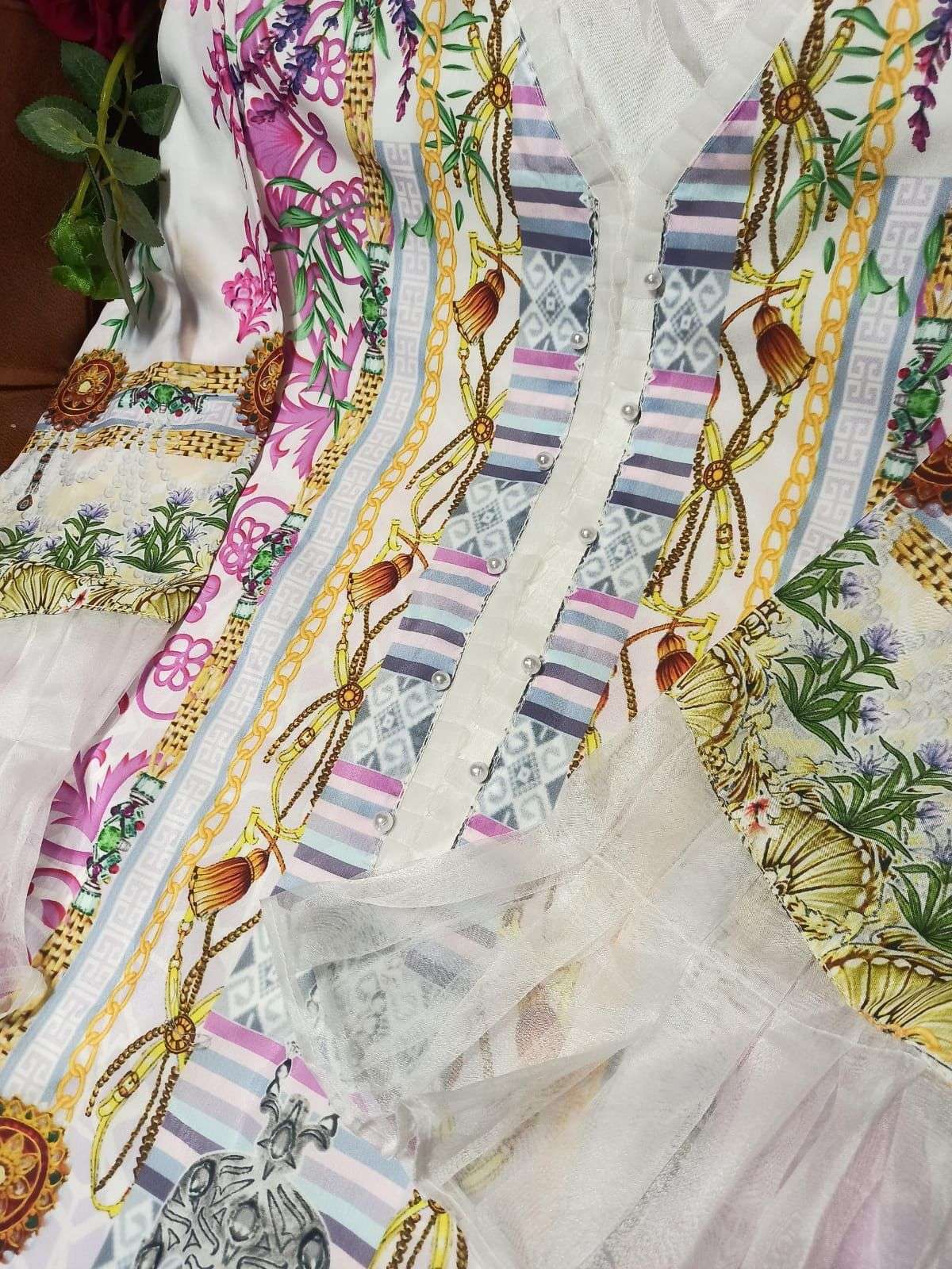 *NEW LAUNCH LUXURY PRET EDITION WITH DUPTTA BY LAXURIA TRENDZ *         ( D.NO-1152 ) We are Introducing our LUXURY PRET COLLECTION To Make You Unique and Classy..     *DESIGN BY Laxuria Trendz * Description Beautifully Maslin Kurti On Digital Print  Front & Back With Classy Lace & Organza Frill, Pearls &  Pattern In Sleeve With Paired With Designer Plazzo With Sheded Duptta.., Details Top :- Maslin Inner :- Santoon Bottom :-Reyon⦠Duptta :- Chinnon⦠Colour :- 1        Size Chart Top xl size chest (42) Bottom xl size (36-42) Rate:- 999/- Colour may slightly vary due to light effect Dry Clean Only Multiples Availableâ¦. *Delivery :-Ready * |