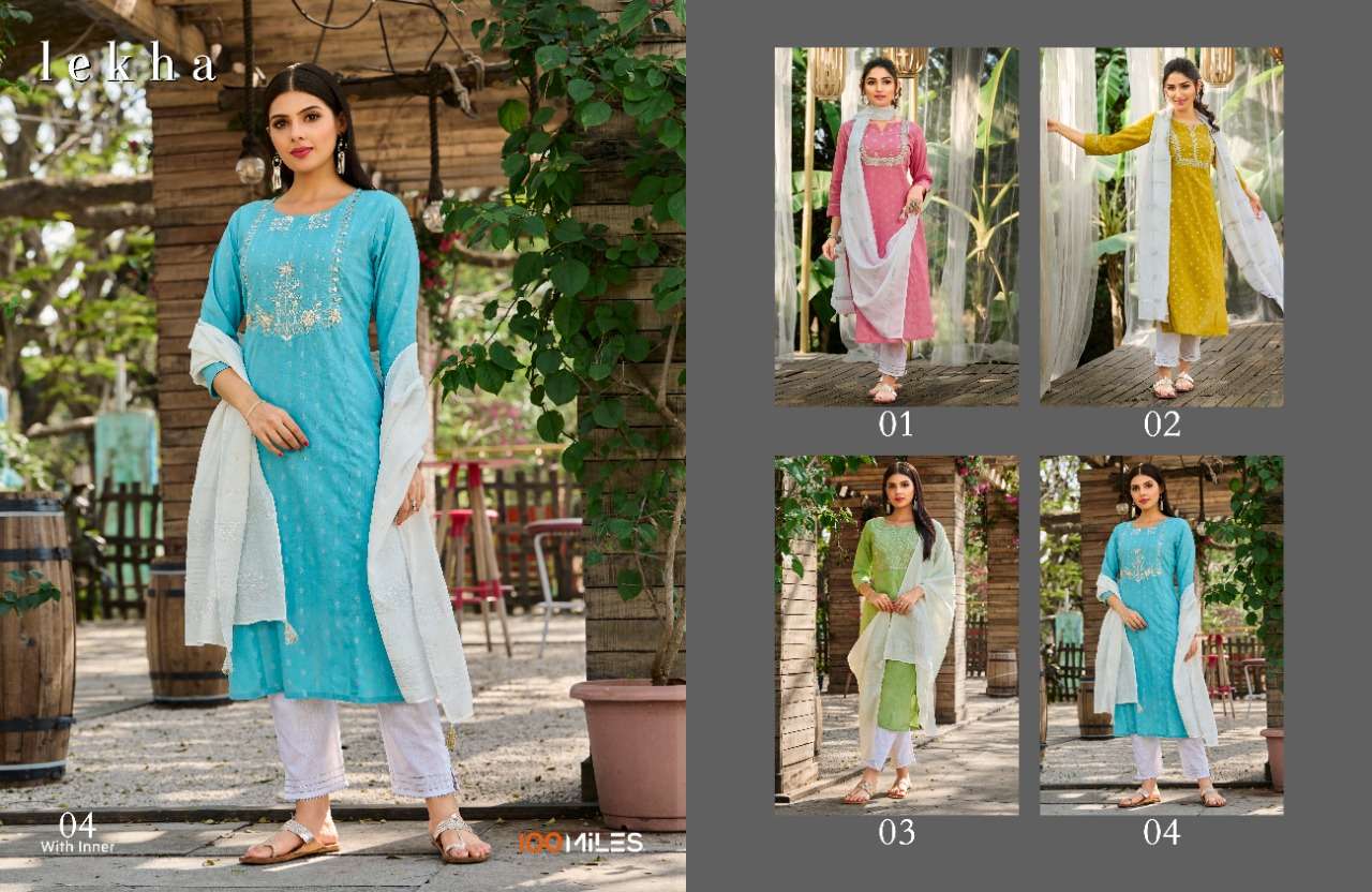 lekha by 100 miles cotton readymade kurti with bottom & dupatta